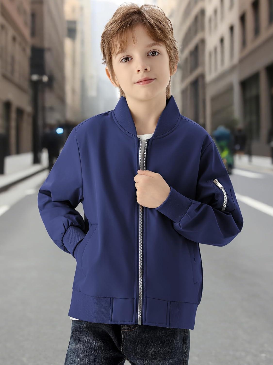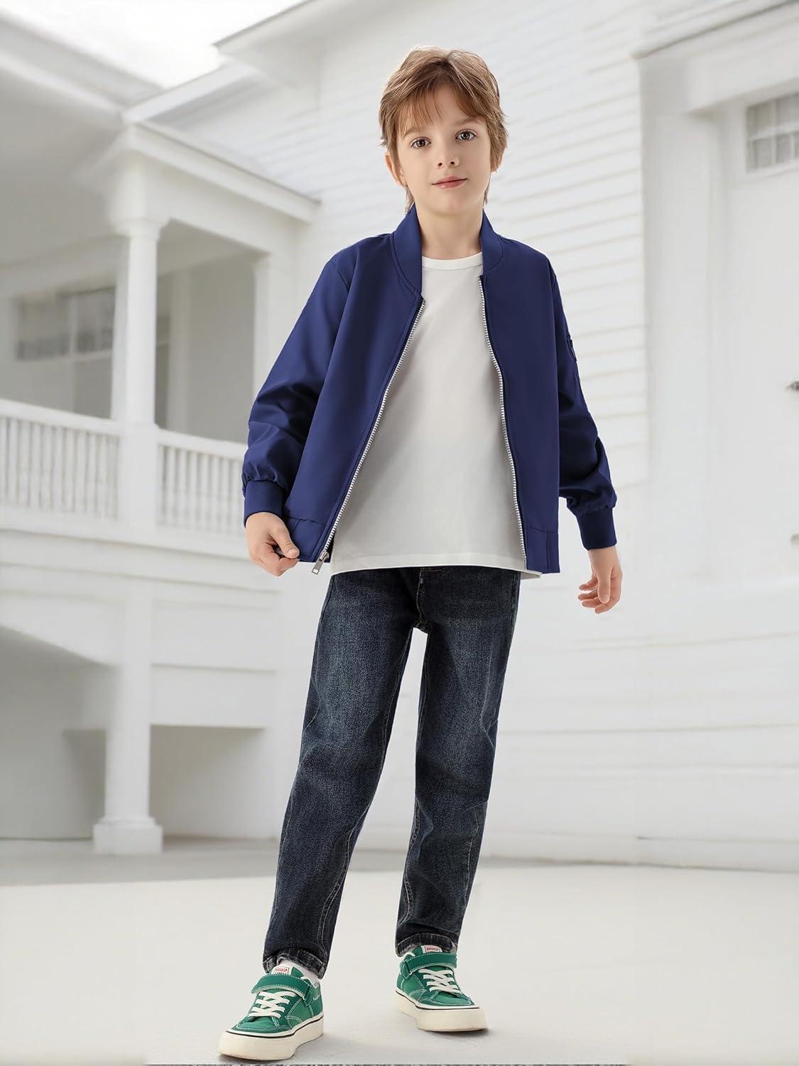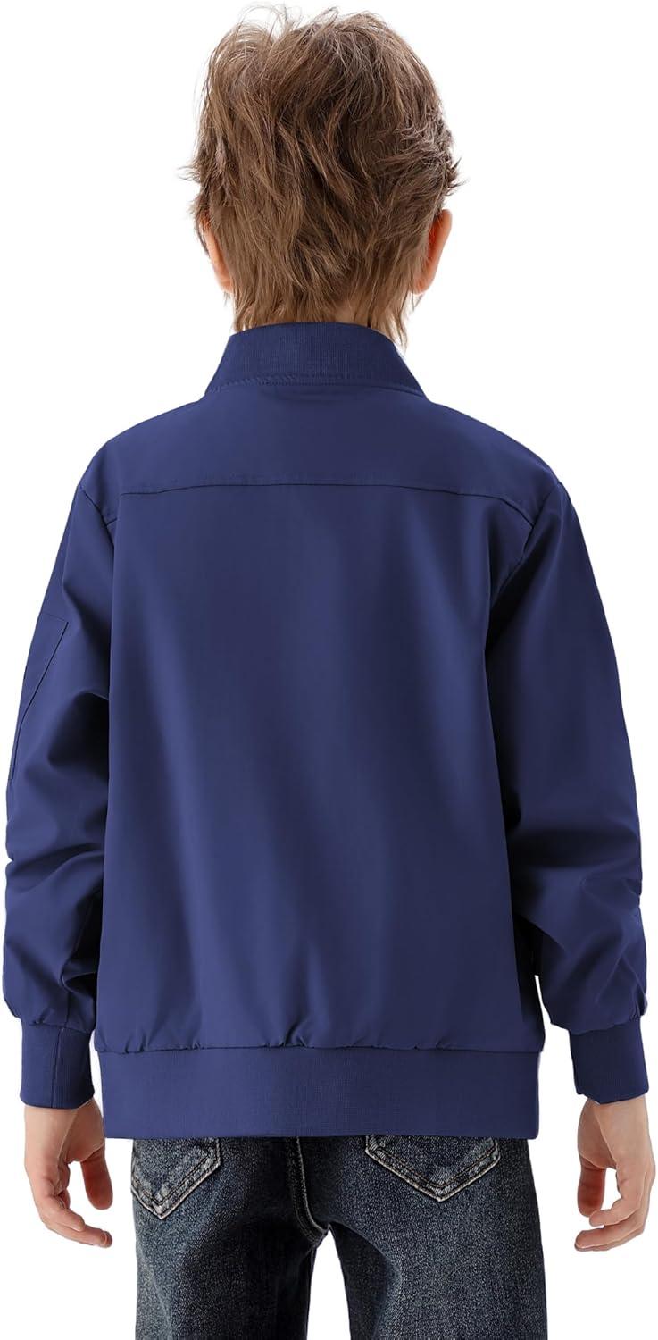WULFUL Boy's Bomber Jackets Kids Spring Fall Zip Up Varsity Windbreak Jackets(Navy)