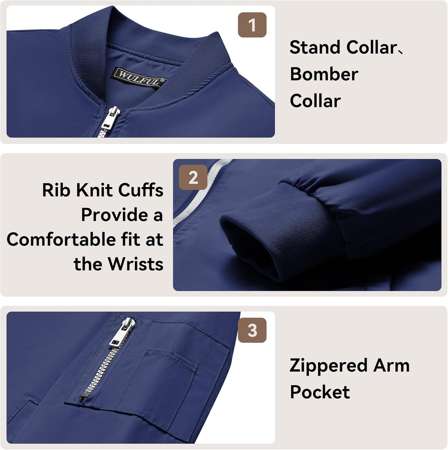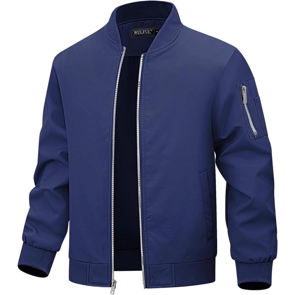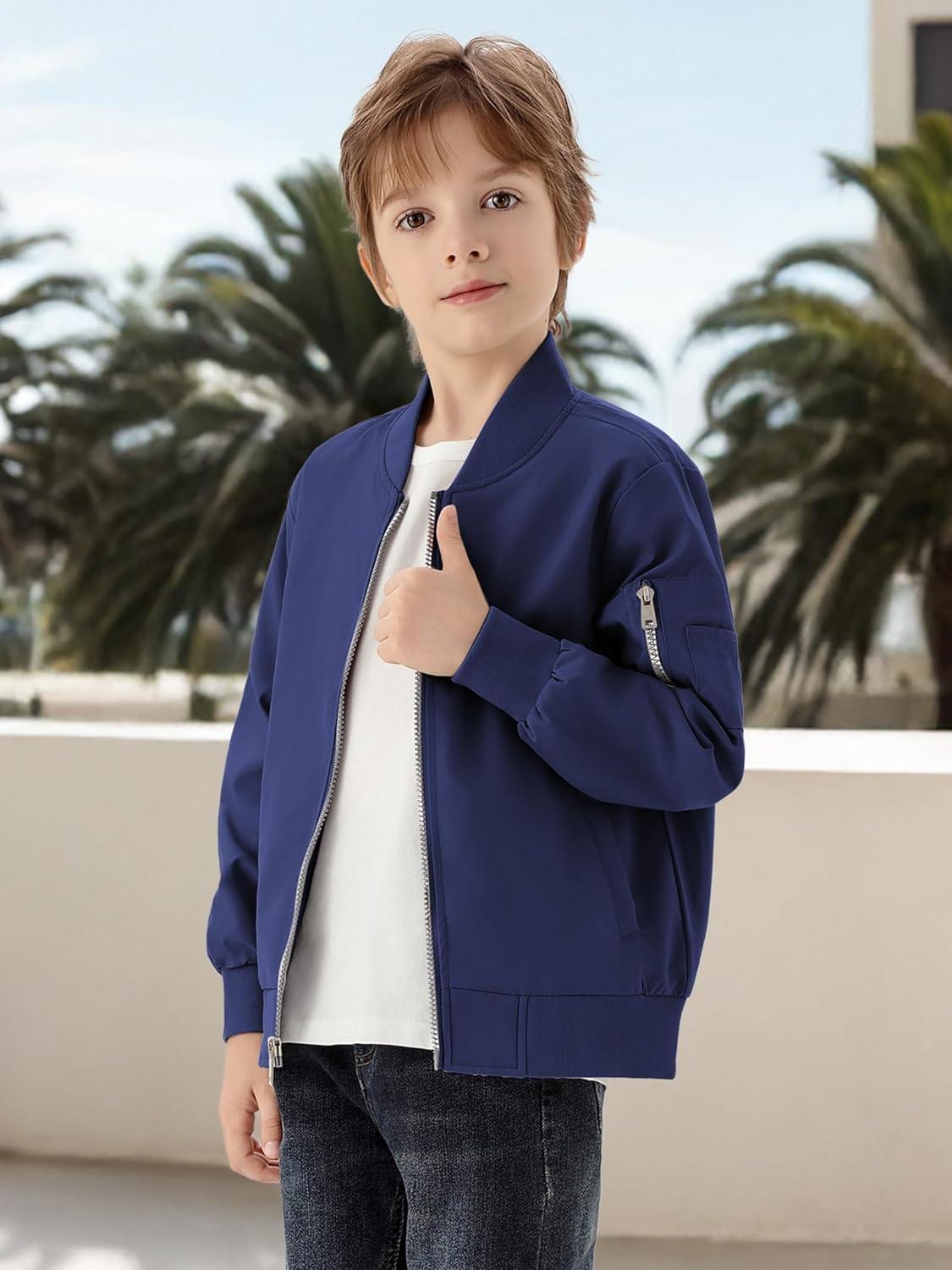WULFUL Boy's Bomber Jackets Kids Spring Fall Zip Up Varsity Windbreak Jackets(Navy)