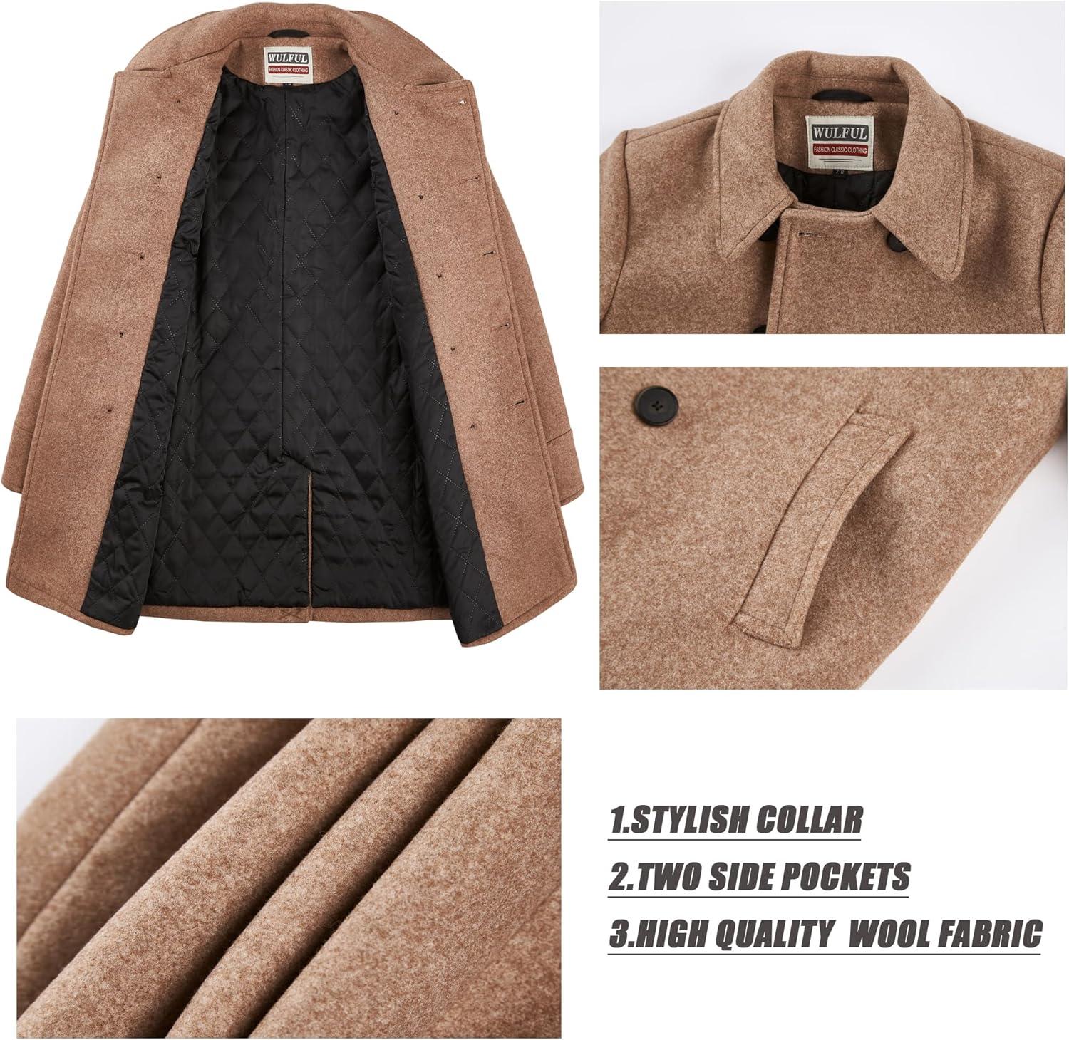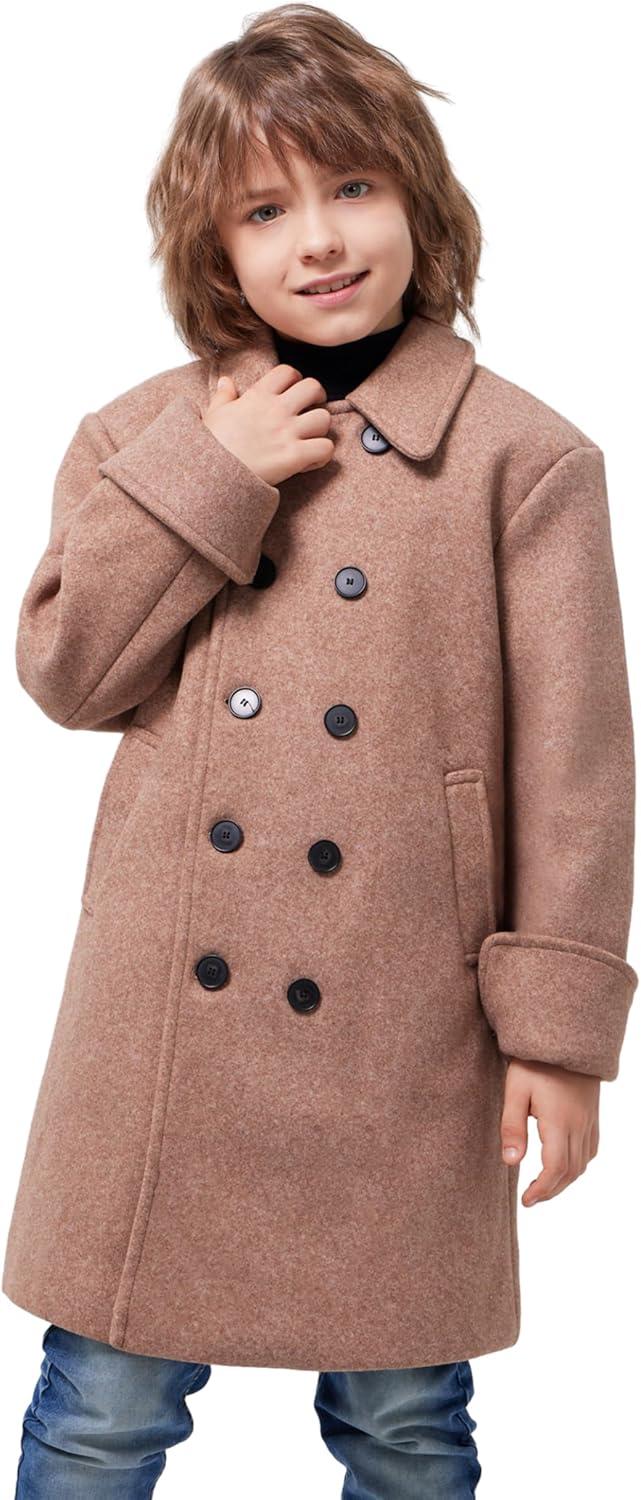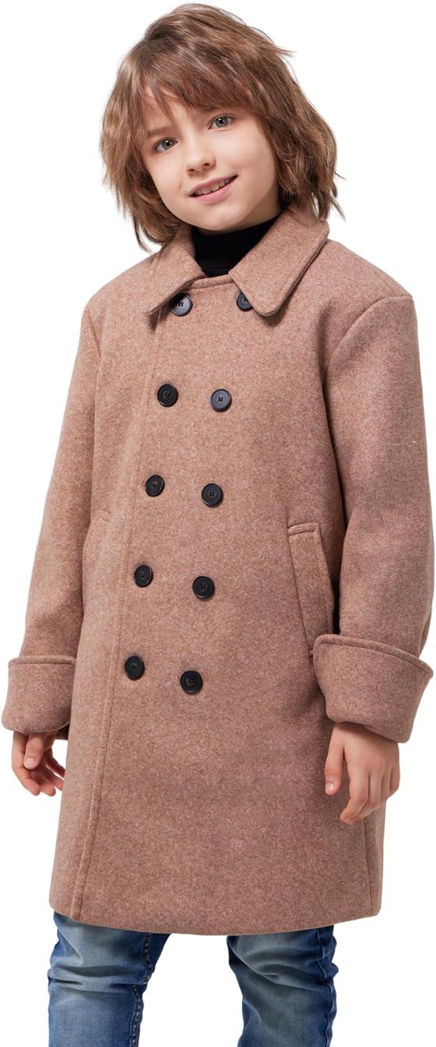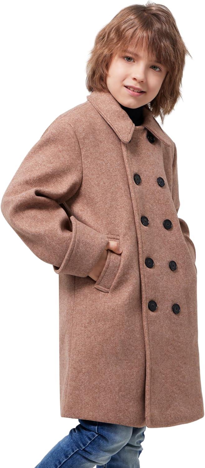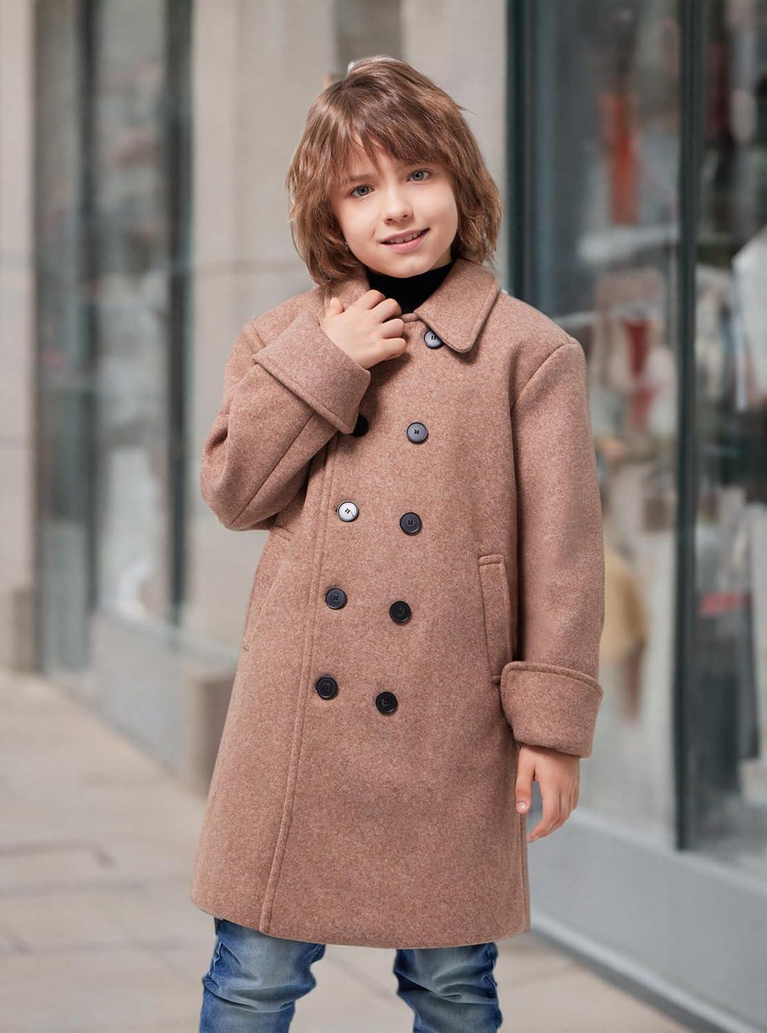 WULFUL Boys Double Breasted Wool Trench Coat Winter Pea Coat(Brown)
