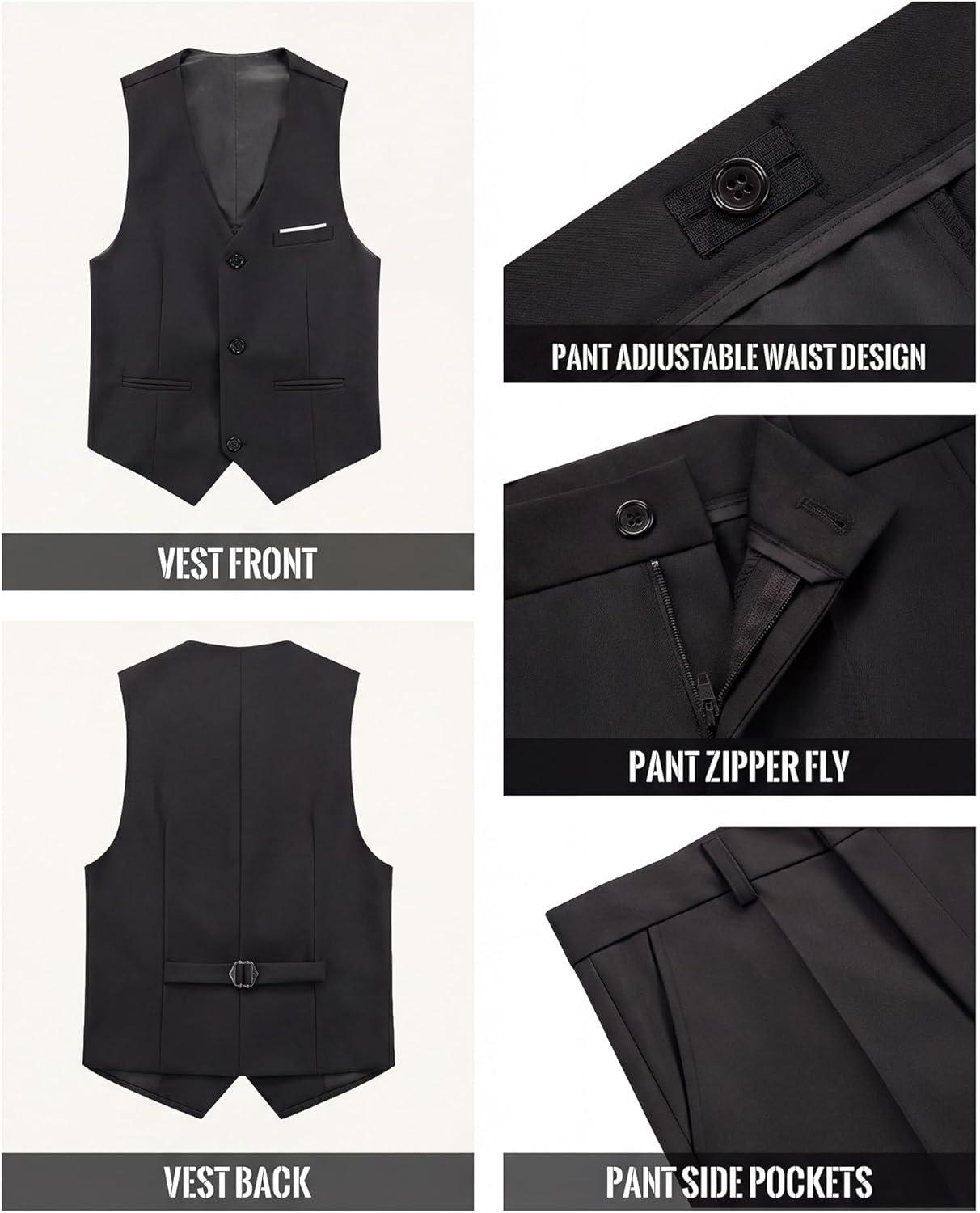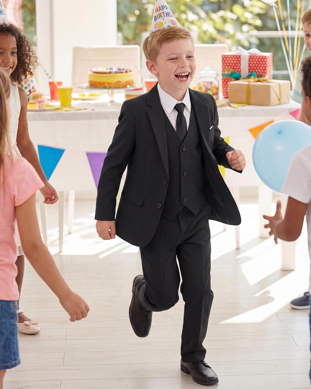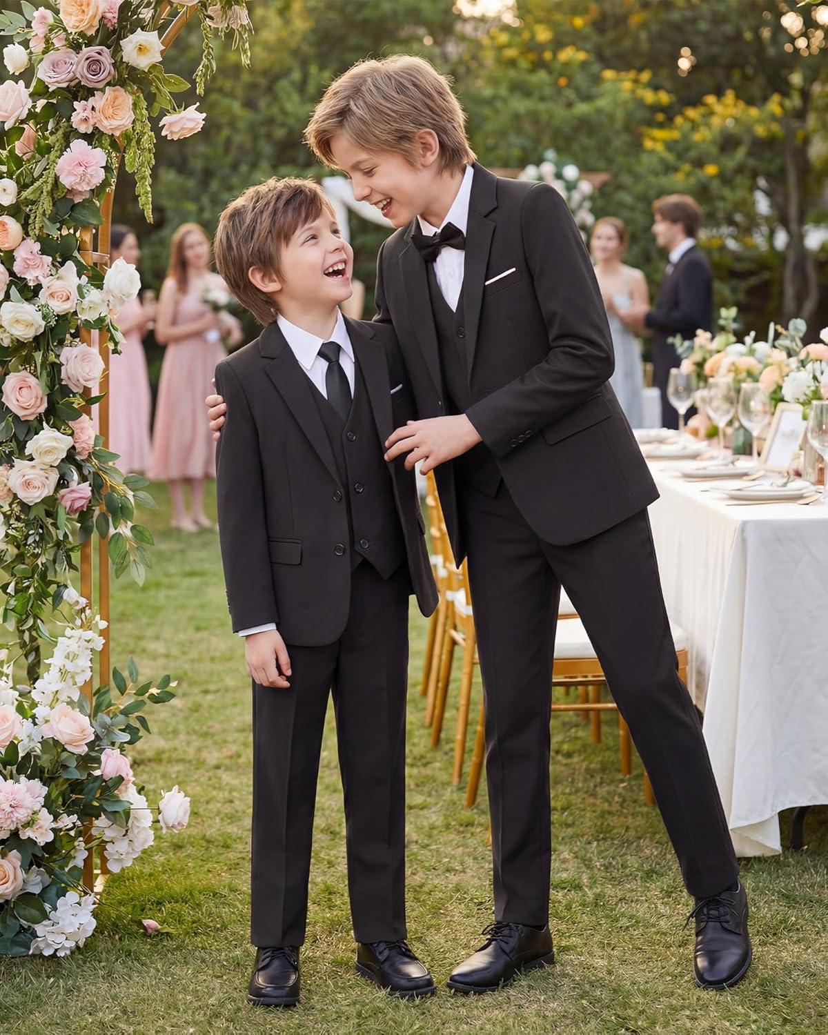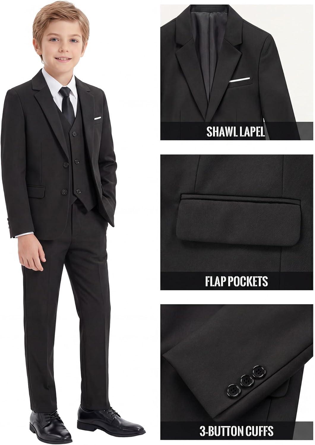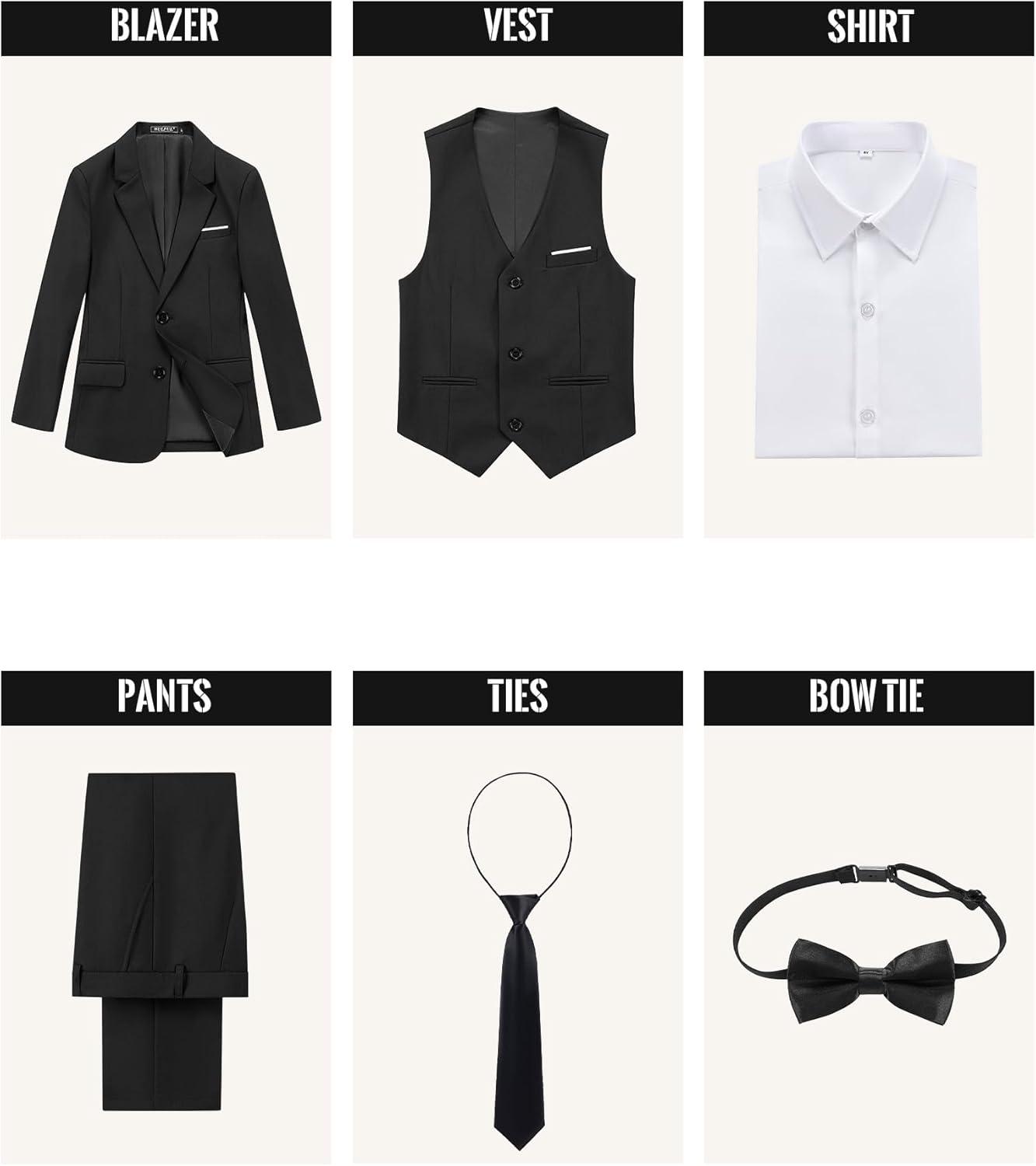 WULFUL Boys’ Formal Suit Set,Slim Fit Blazer Dress Shirt Pants with Bow Tie 6-16 Years(Black)