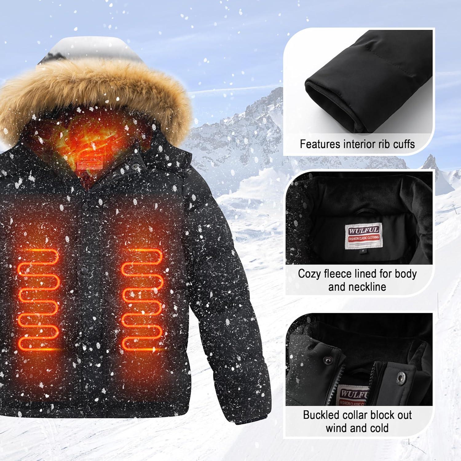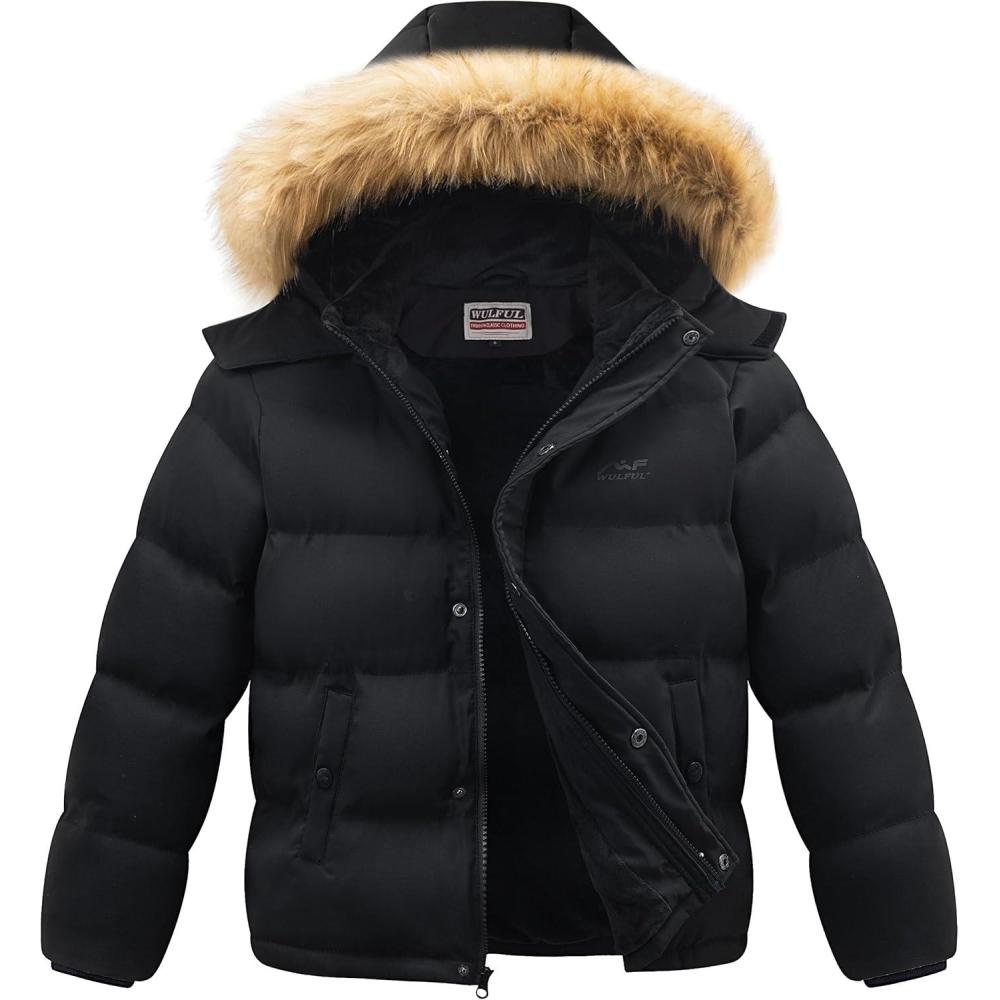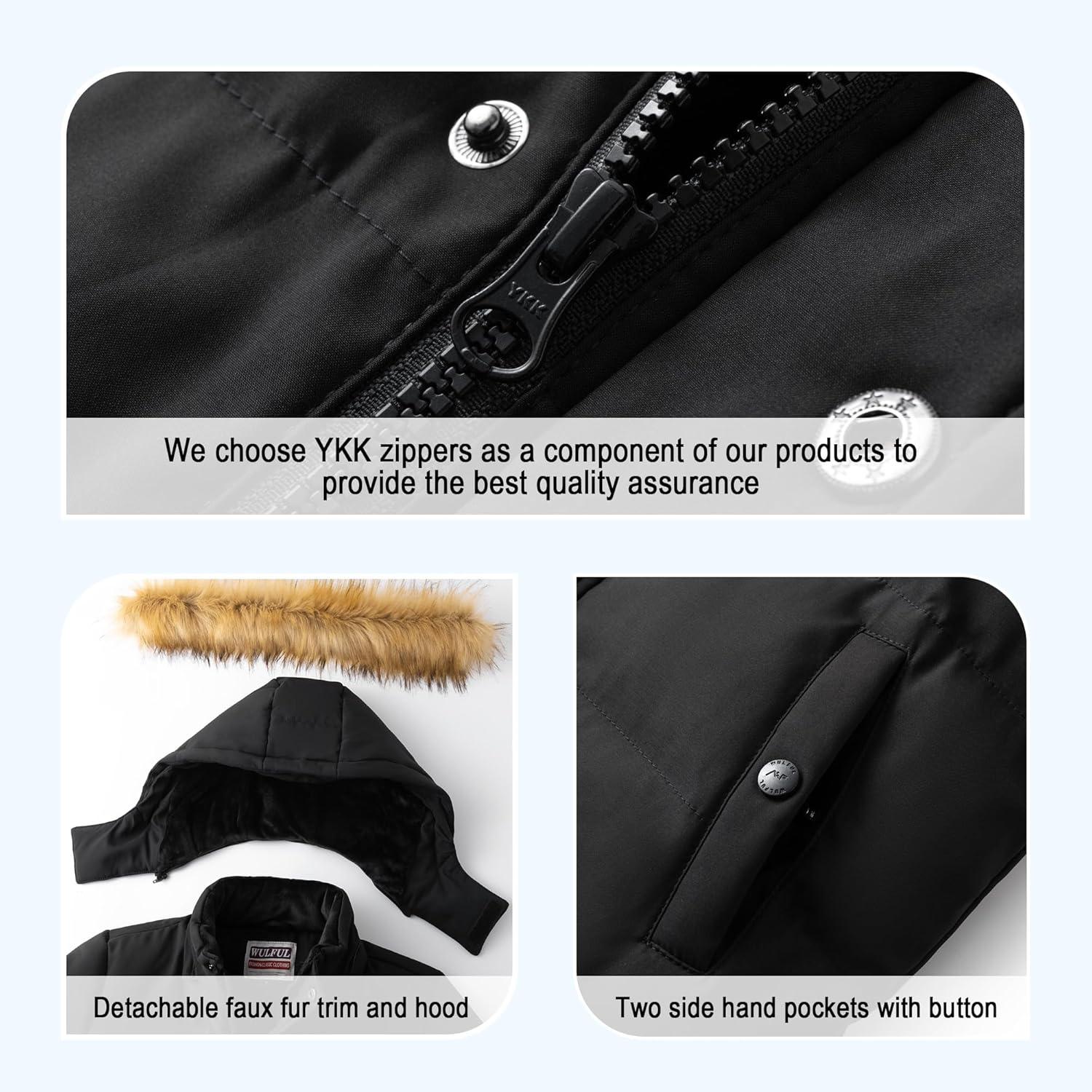 WULFUL Boy's Winter Coats Waterproof Fleece Lined Puffer Jackets Kids Thicken Outerwear With Detachable Hood