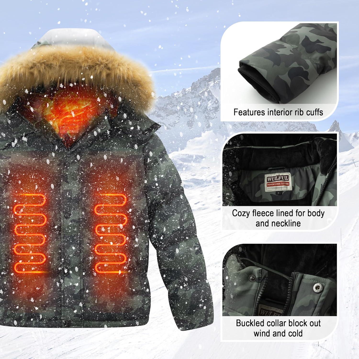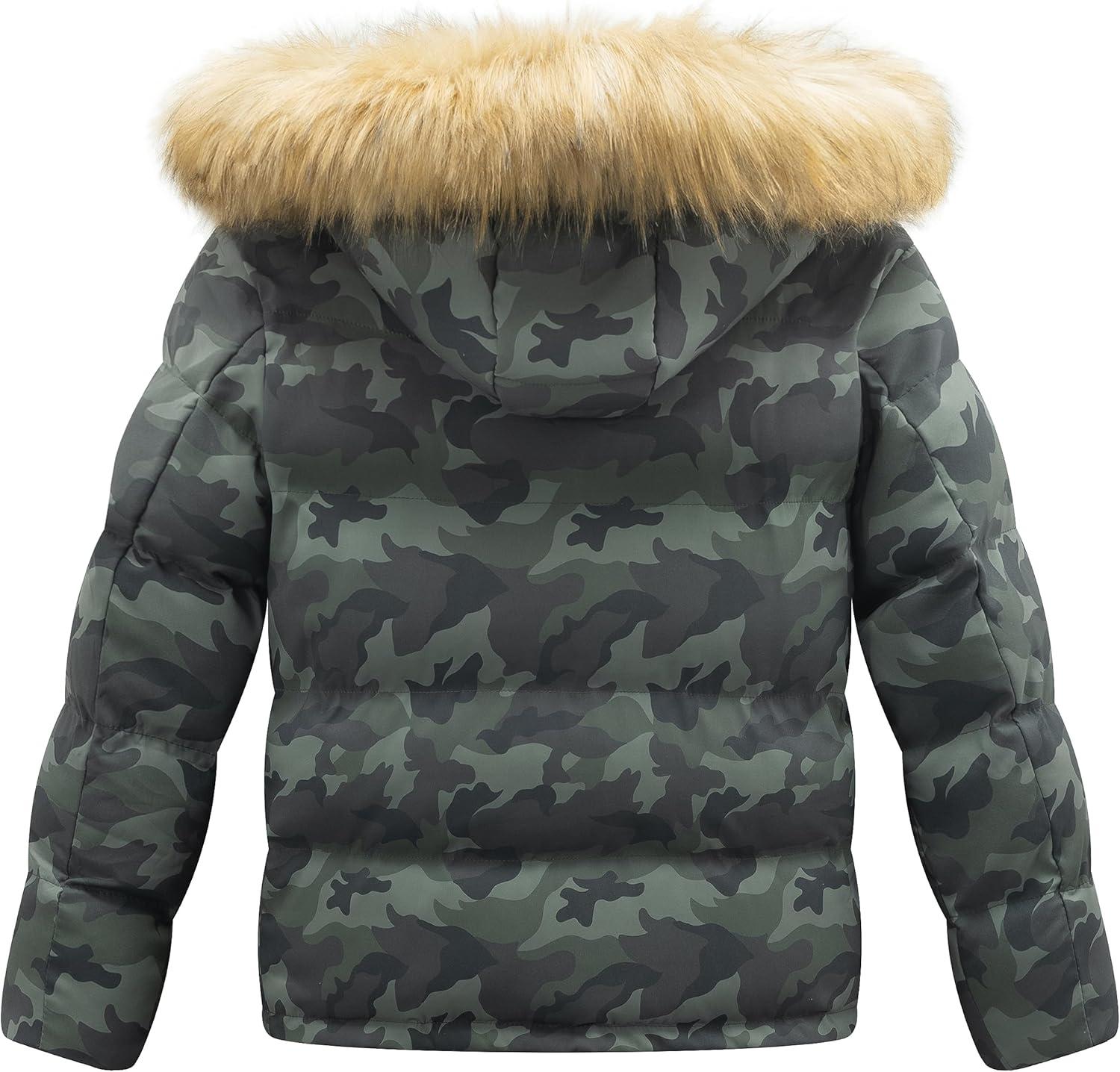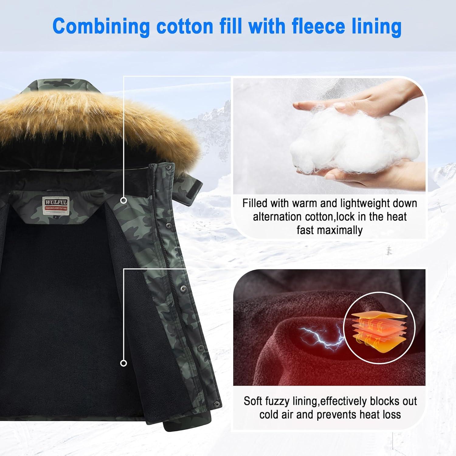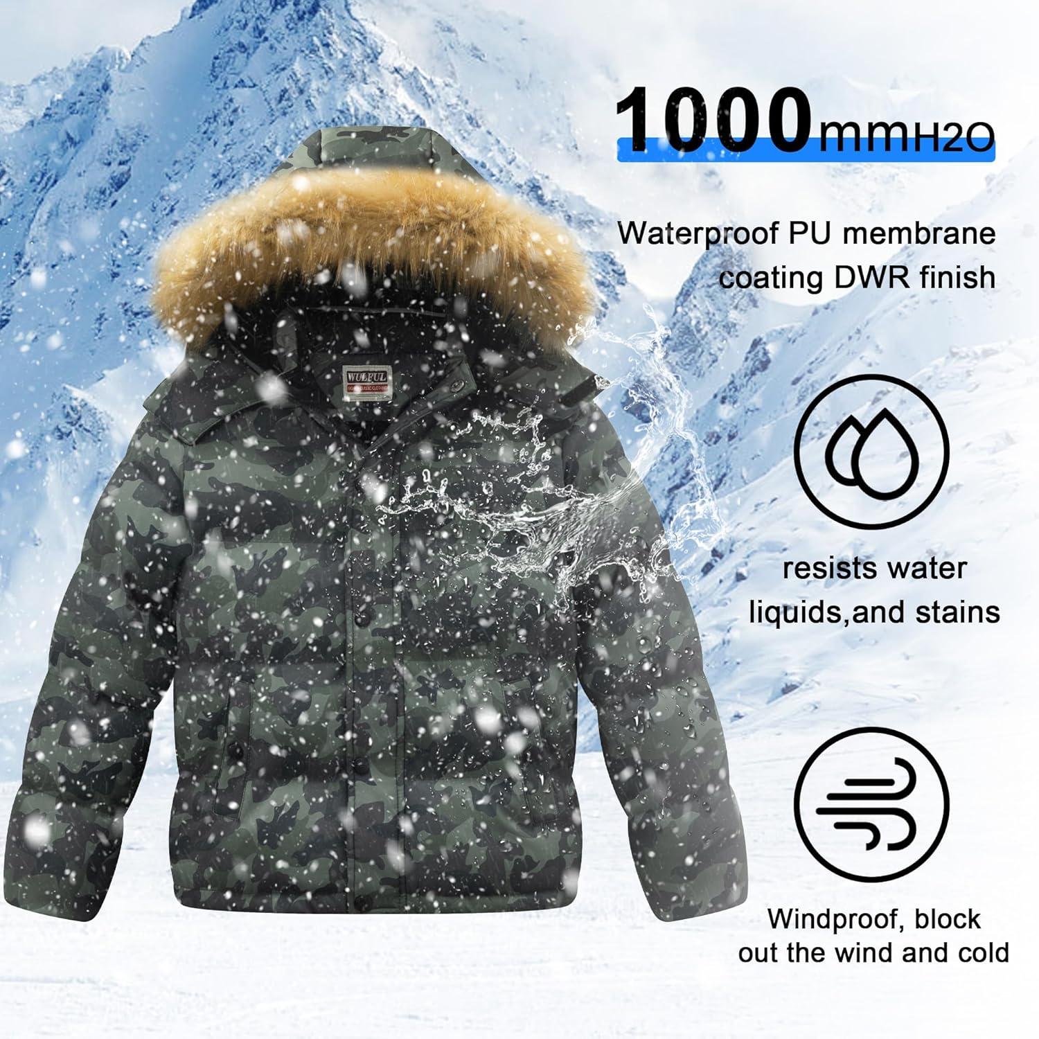WULFUL Boy's Girls Winter Coats Waterproof Fleece Lined Puffer Jackets Kids Thicken Outerwear With Detachable Hood(Camouflage)