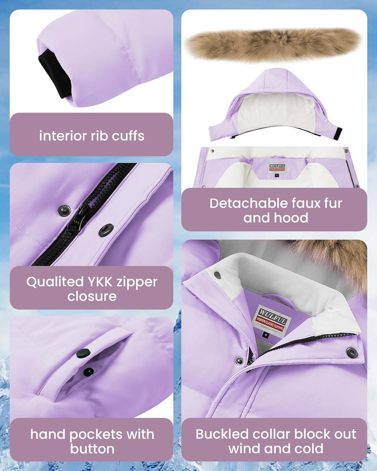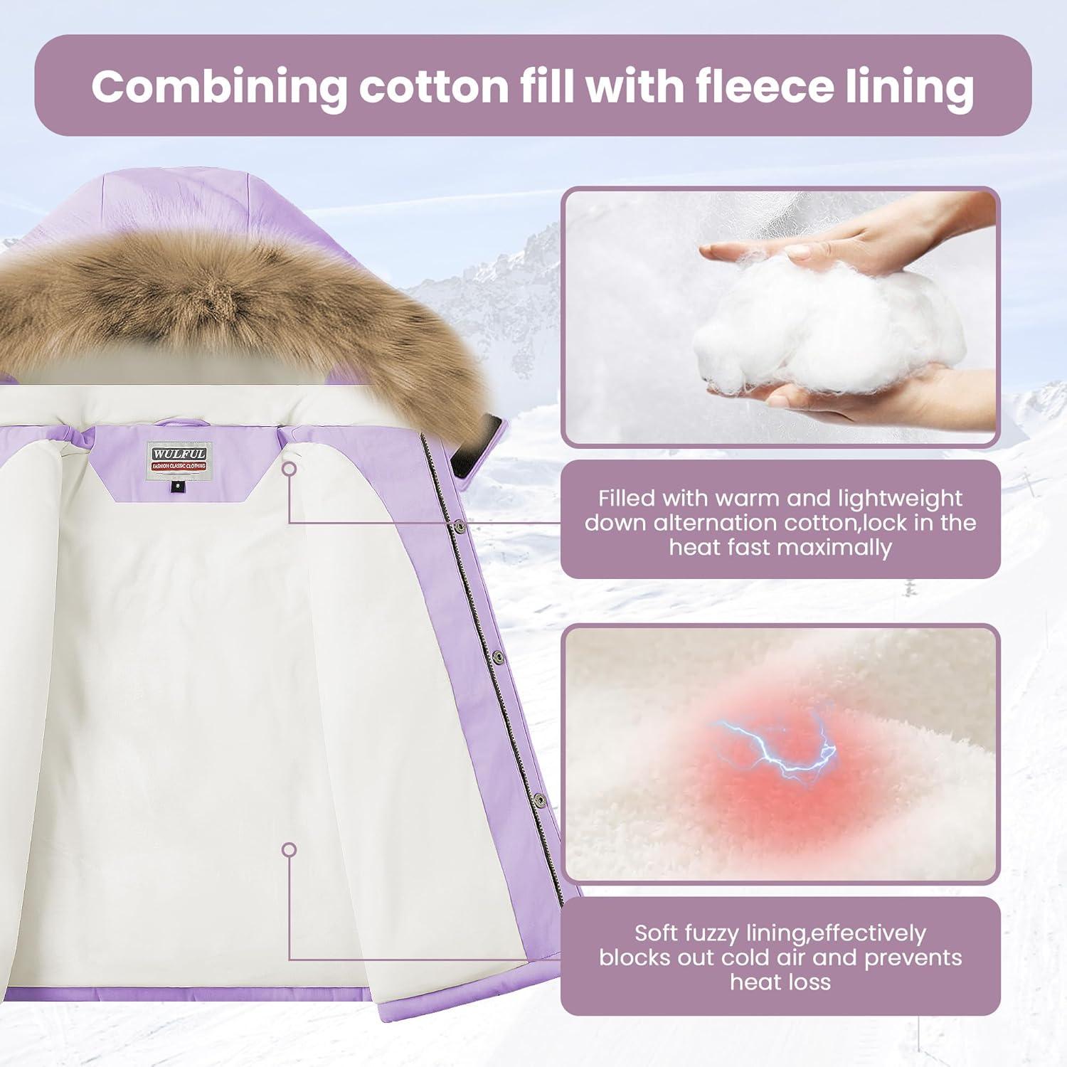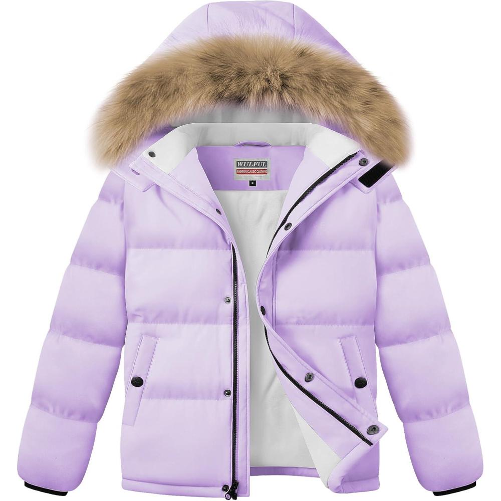 WULFUL Boy's Girls Winter Coats Waterproof Fleece Lined Puffer Jackets Kids Thicken Outerwear With Detachable Hood(Light Purple)