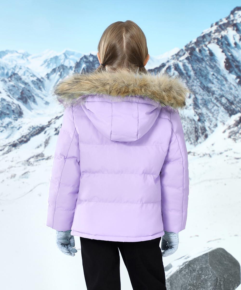 WULFUL Boy’s Girls Winter Coats Waterproof Fleece Lined Puffer Jackets Kids Thicken Outerwear With Detachable Hood(Light Purple)