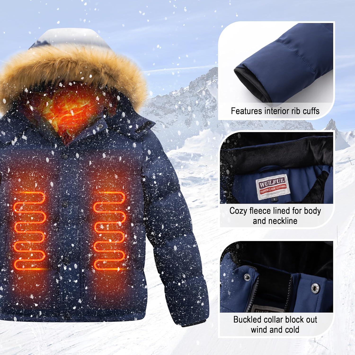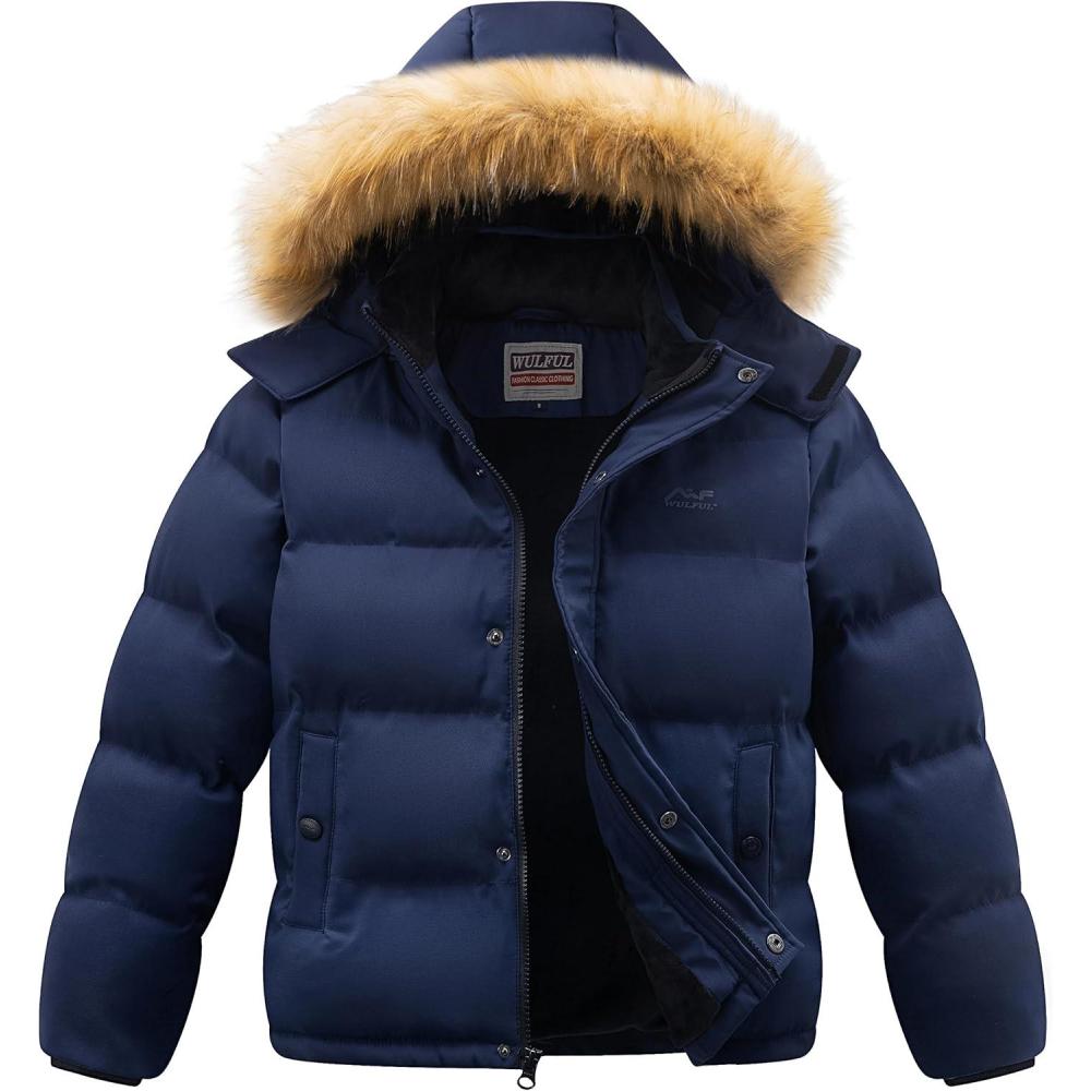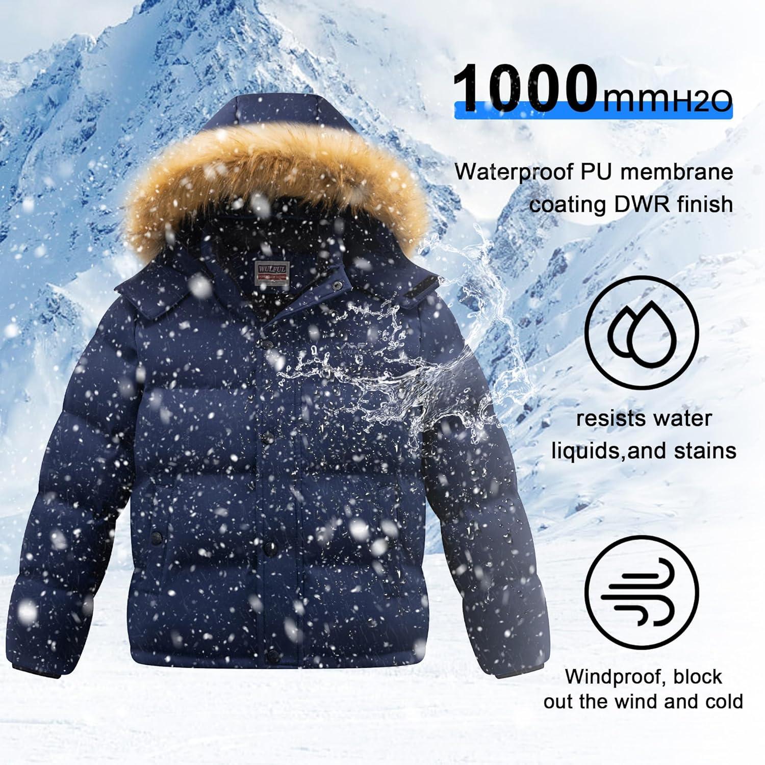 WULFUL Boy's Winter Coats Waterproof Fleece Lined Puffer Jackets Kids Thicken Outerwear With Detachable Hood