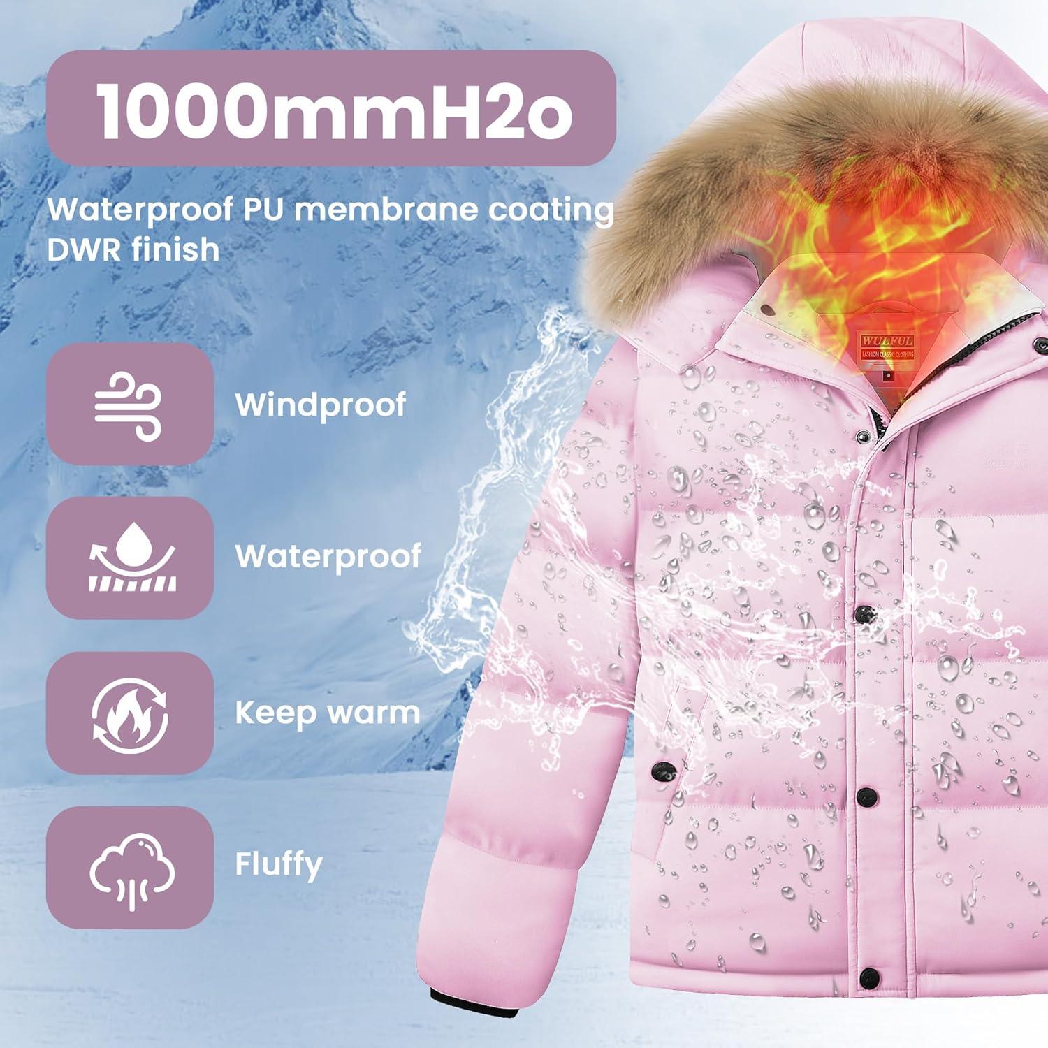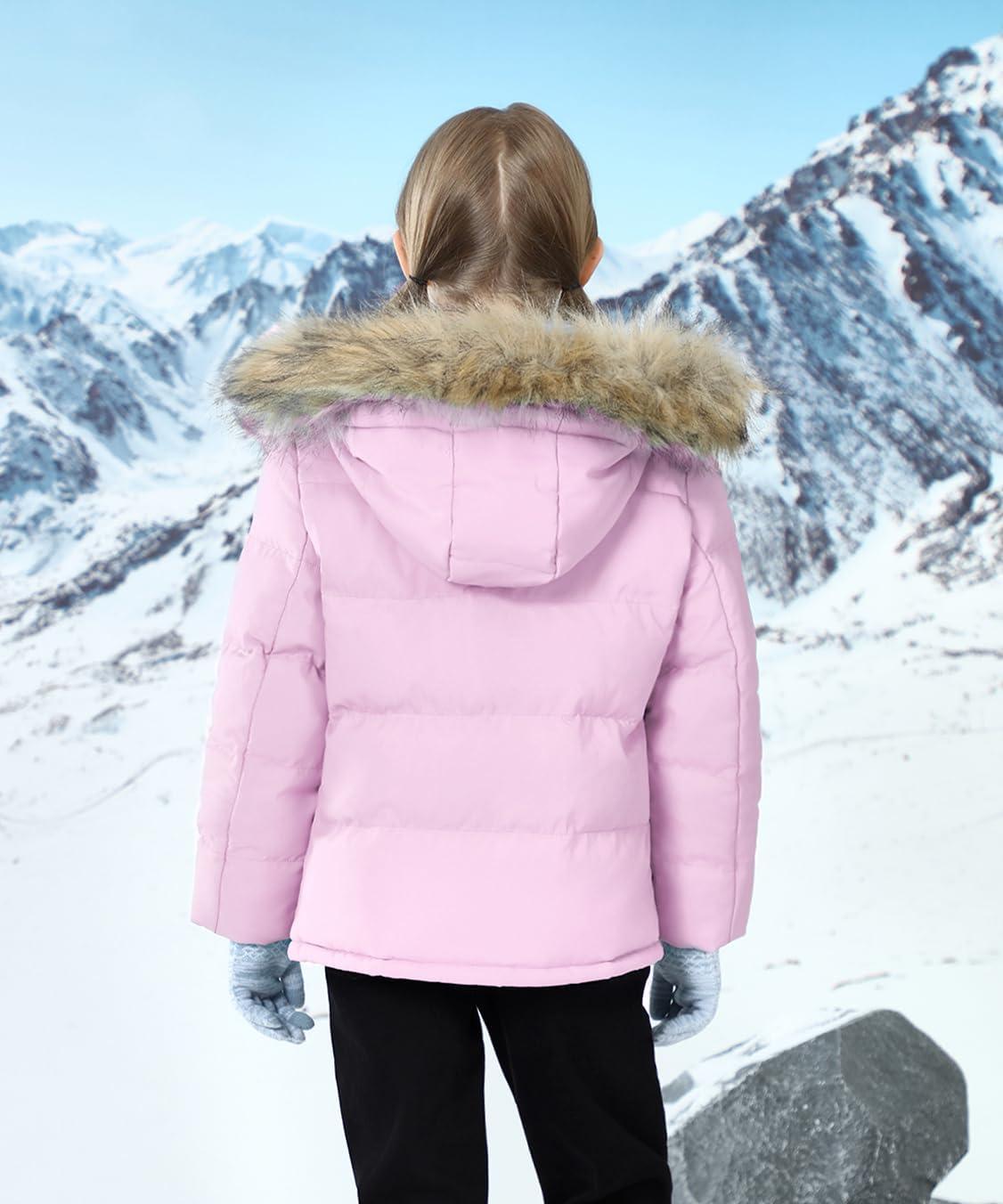 WULFUL Boy’s Girls Winter Coats Waterproof Fleece Lined Puffer Jackets Kids Thicken Outerwear With Detachable Hood(Pink)