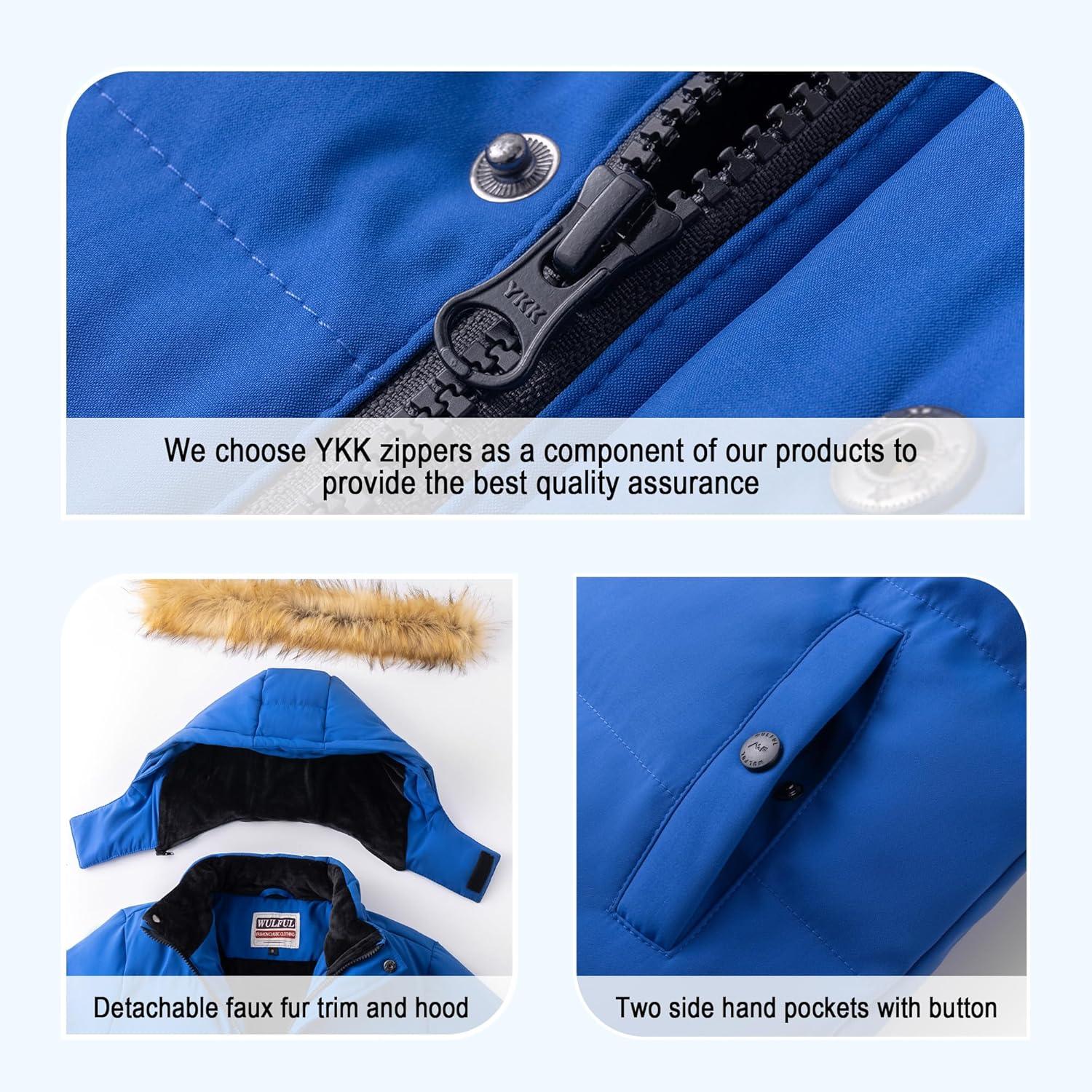 WULFUL Boy’s Girls Winter Coats Waterproof Fleece Lined Puffer Jackets Kids Thicken Outerwear With Detachable Hood(Royal Blue)