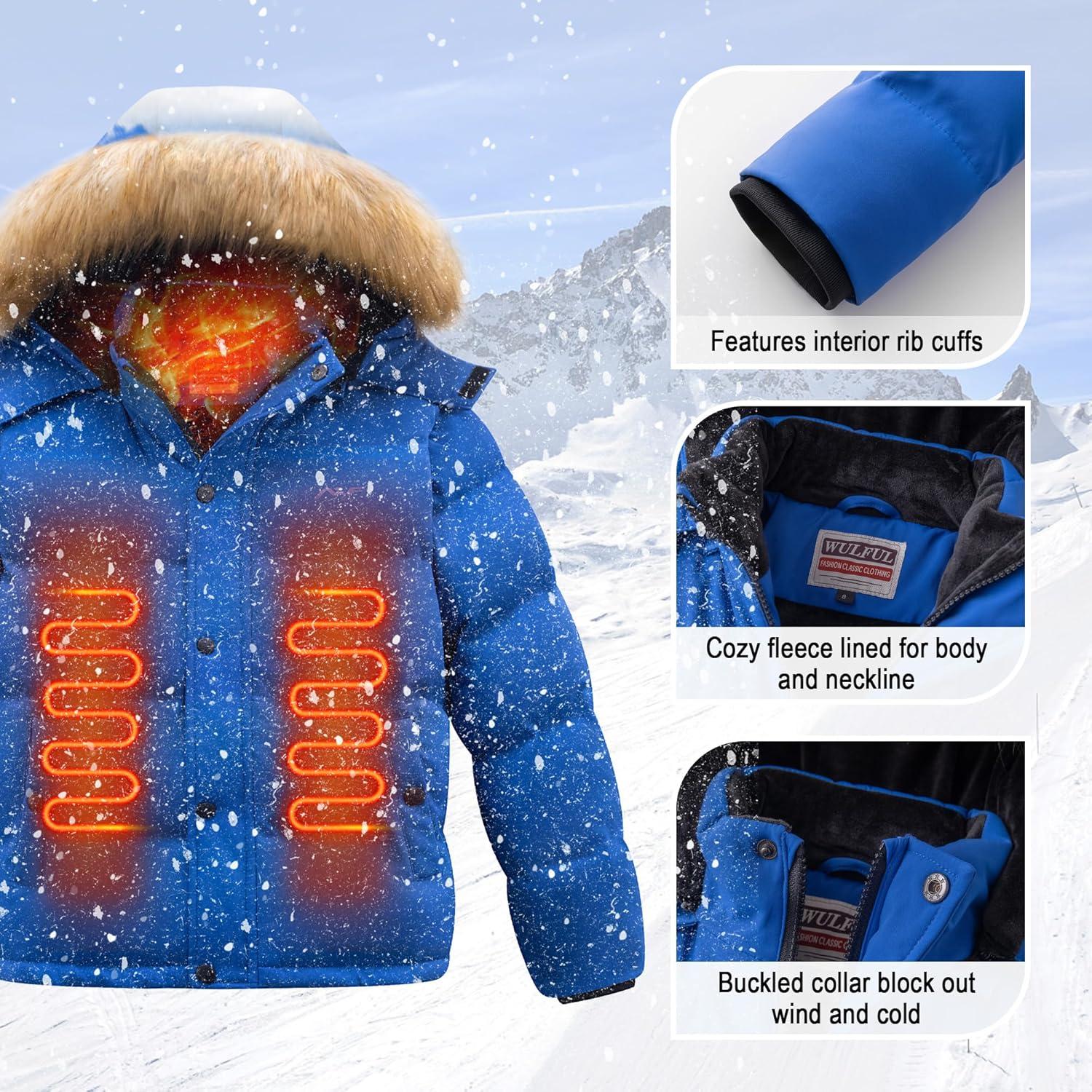 WULFUL Boy's Winter Coats Waterproof Fleece Lined Puffer Jackets Kids Thicken Outerwear With Detachable Hood