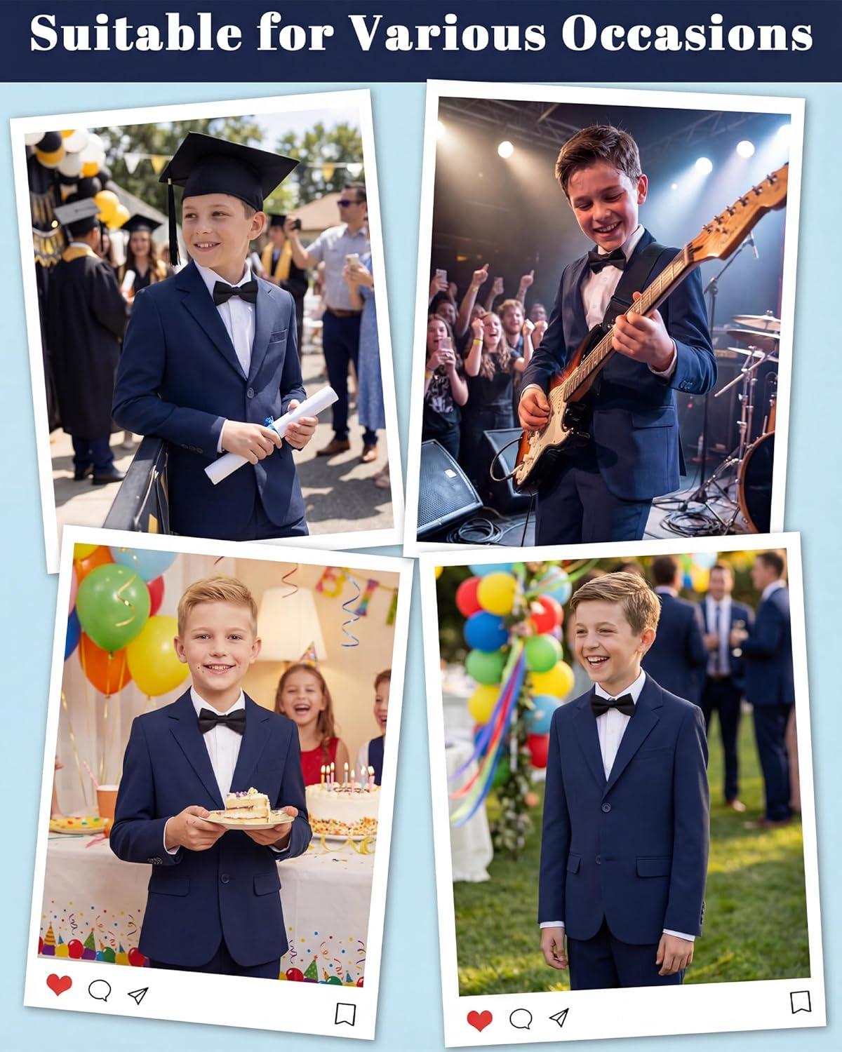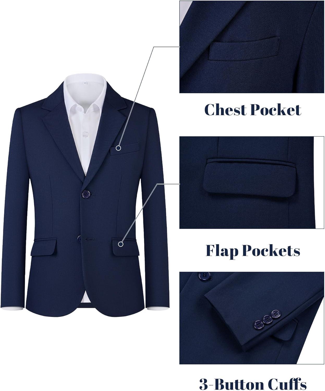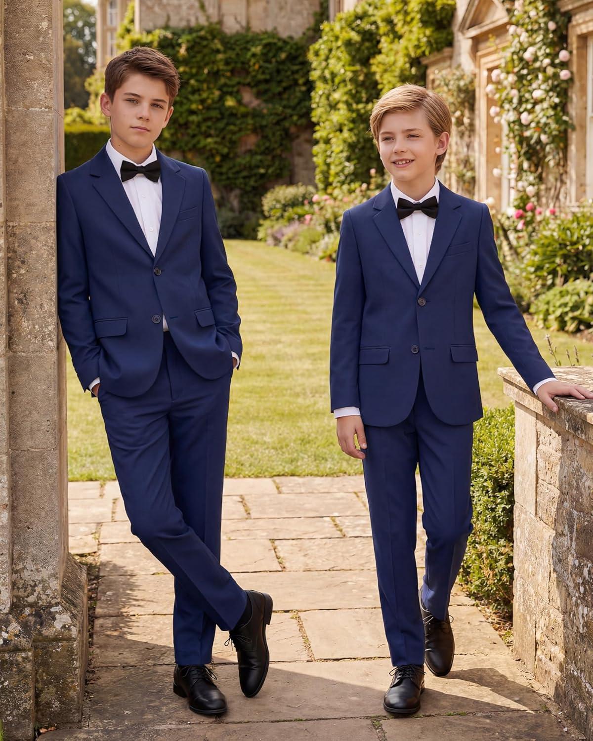 WULFUL Boys' Slim Fit Formal Suit Set,2 Piece Suit for Boys Teens Wedding Casual Summer Outfit(Navy)
