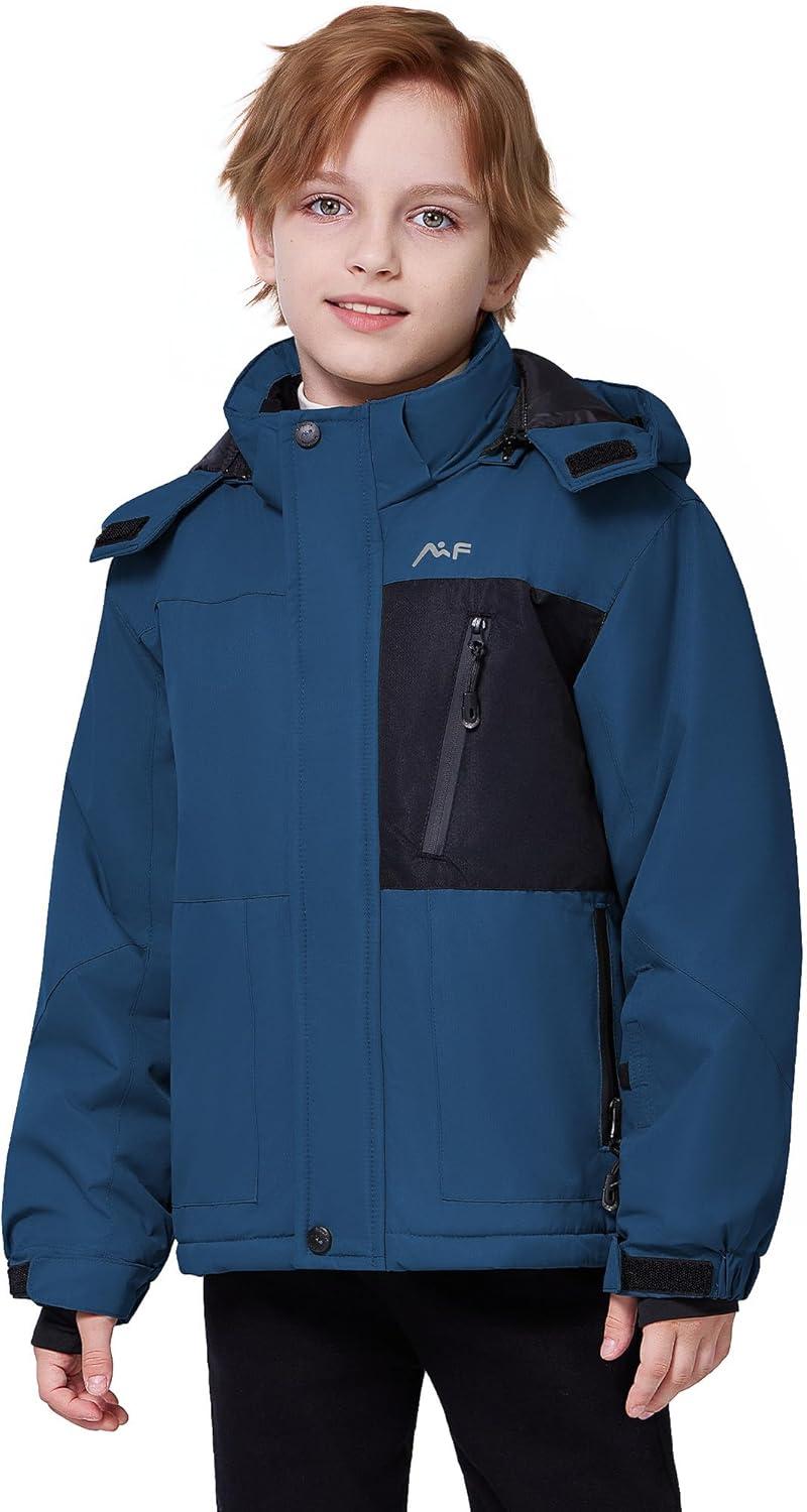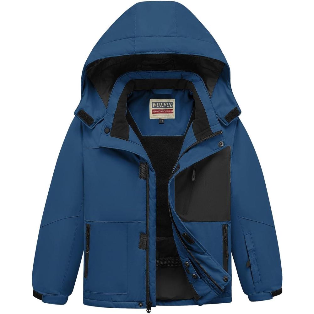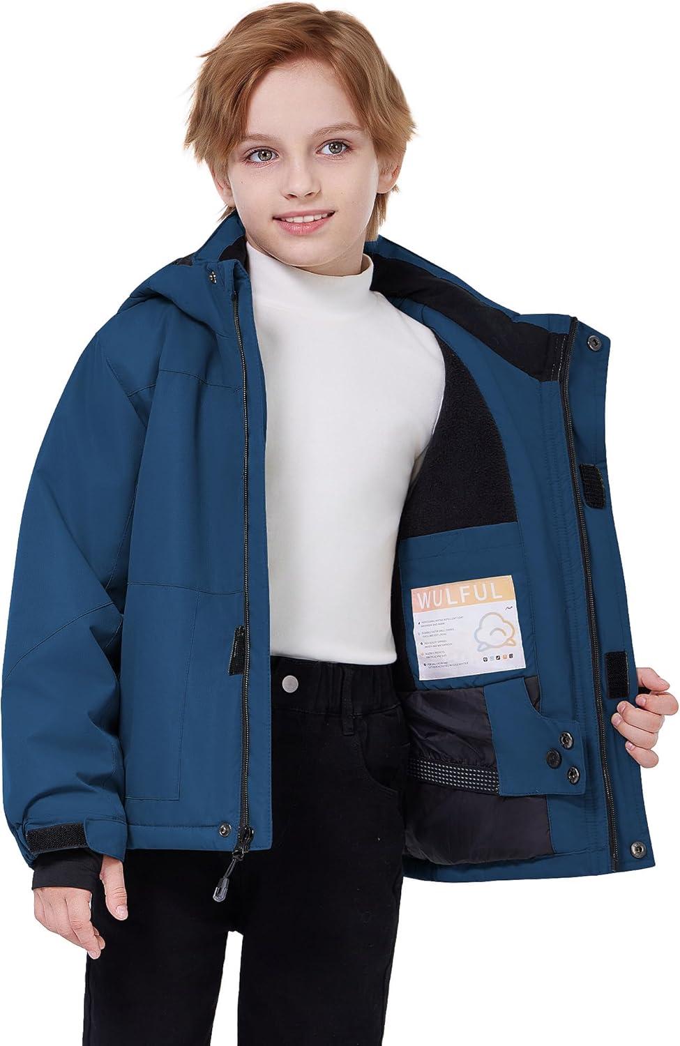 imageWULFUL Boys Waterproof Ski Jacket Kids Winter Snow Coat OutdoorAqua