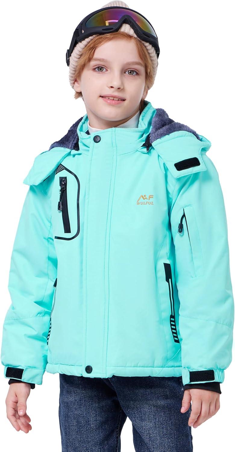 WULFUL Boy’s Waterproof Ski Jacket Warm Fleece Hooded Winter Snow Coat(Aqua)