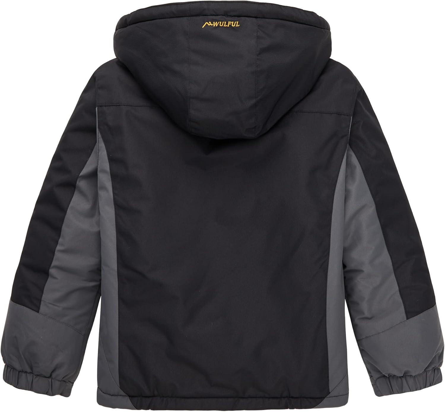 WULFUL Boy’s Waterproof Ski Jacket Warm Fleece Hooded Winter Snow Coat(Black)
