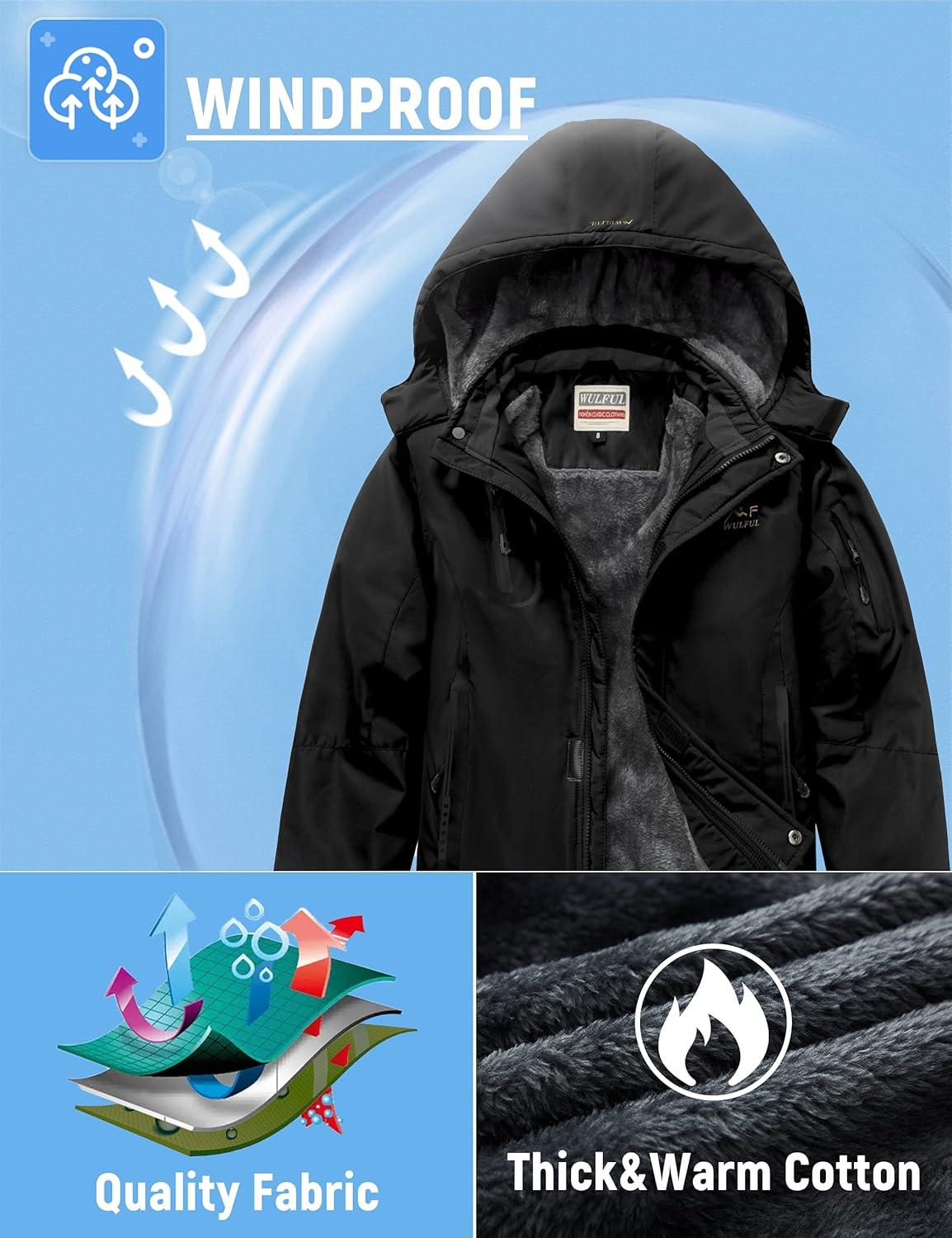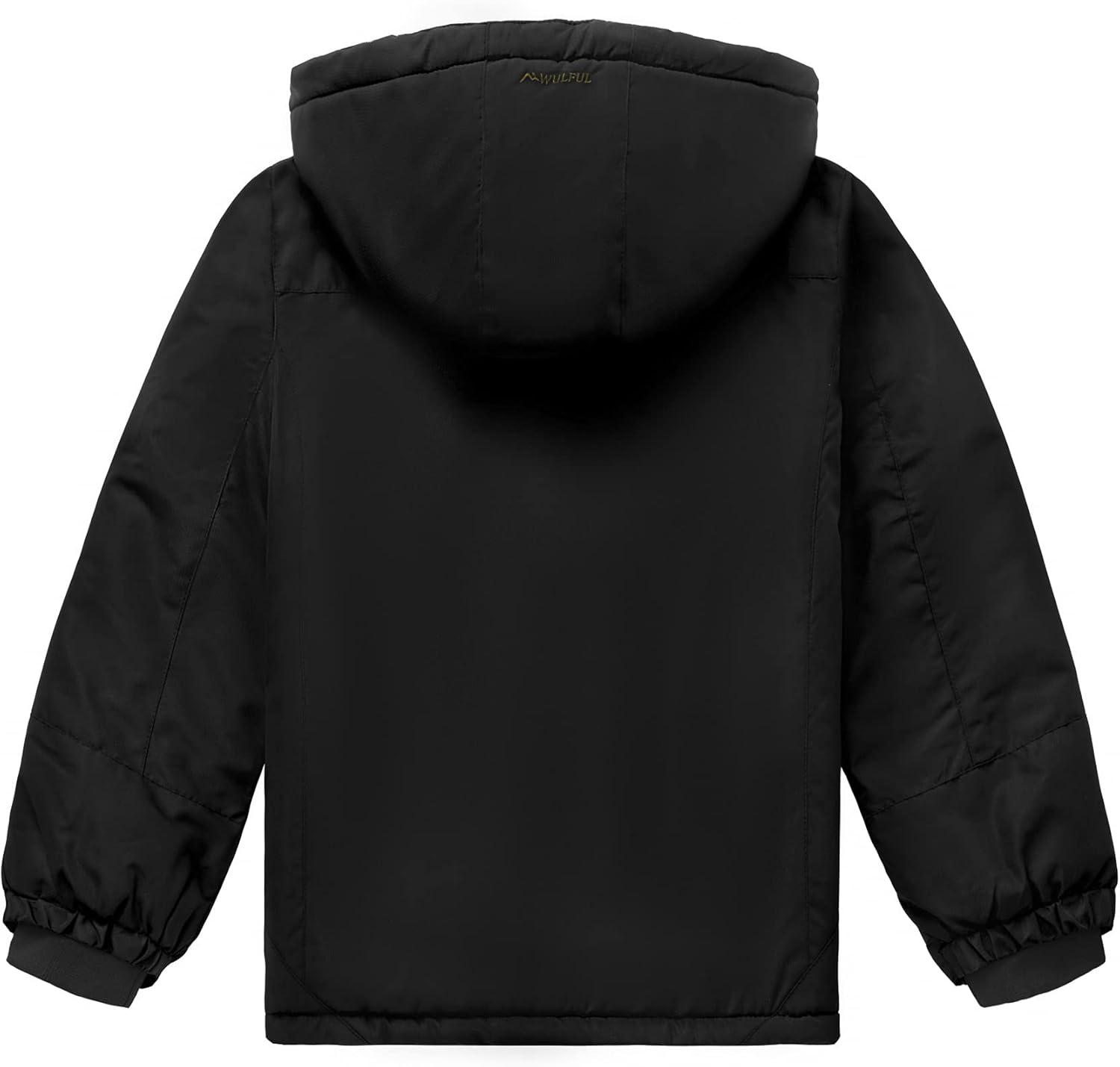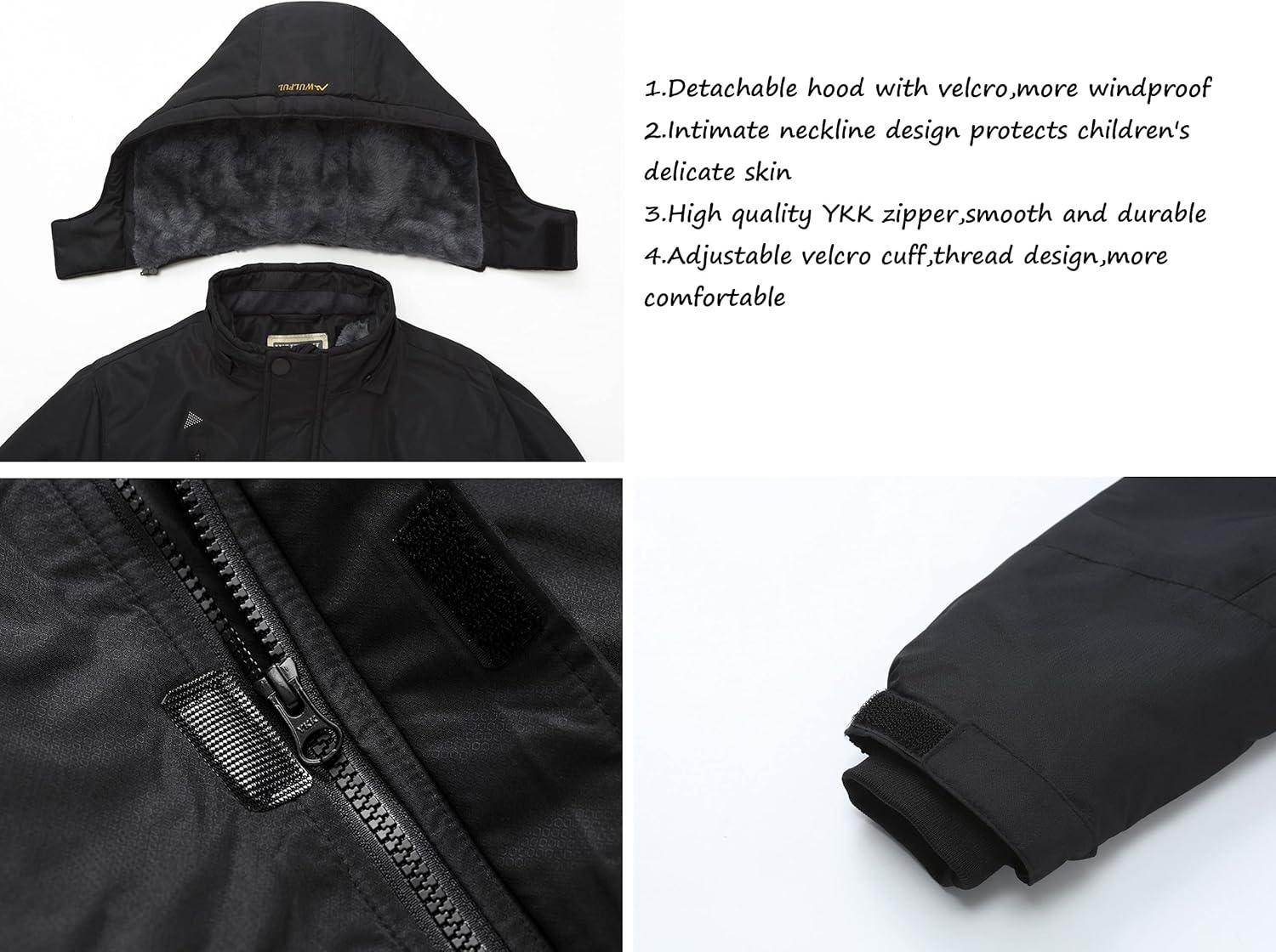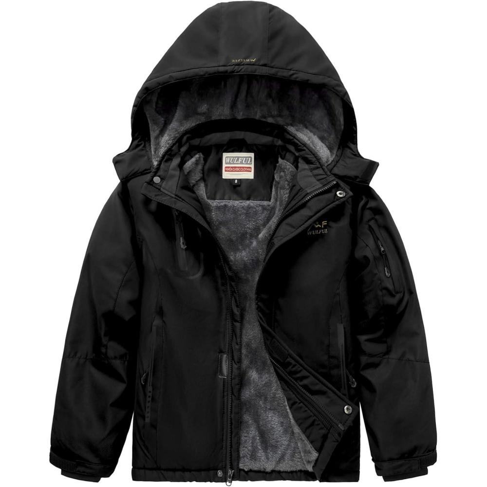 WULFUL Boy’s Waterproof Ski Jacket Warm Fleece Hooded Winter Snow Coat(Black)
