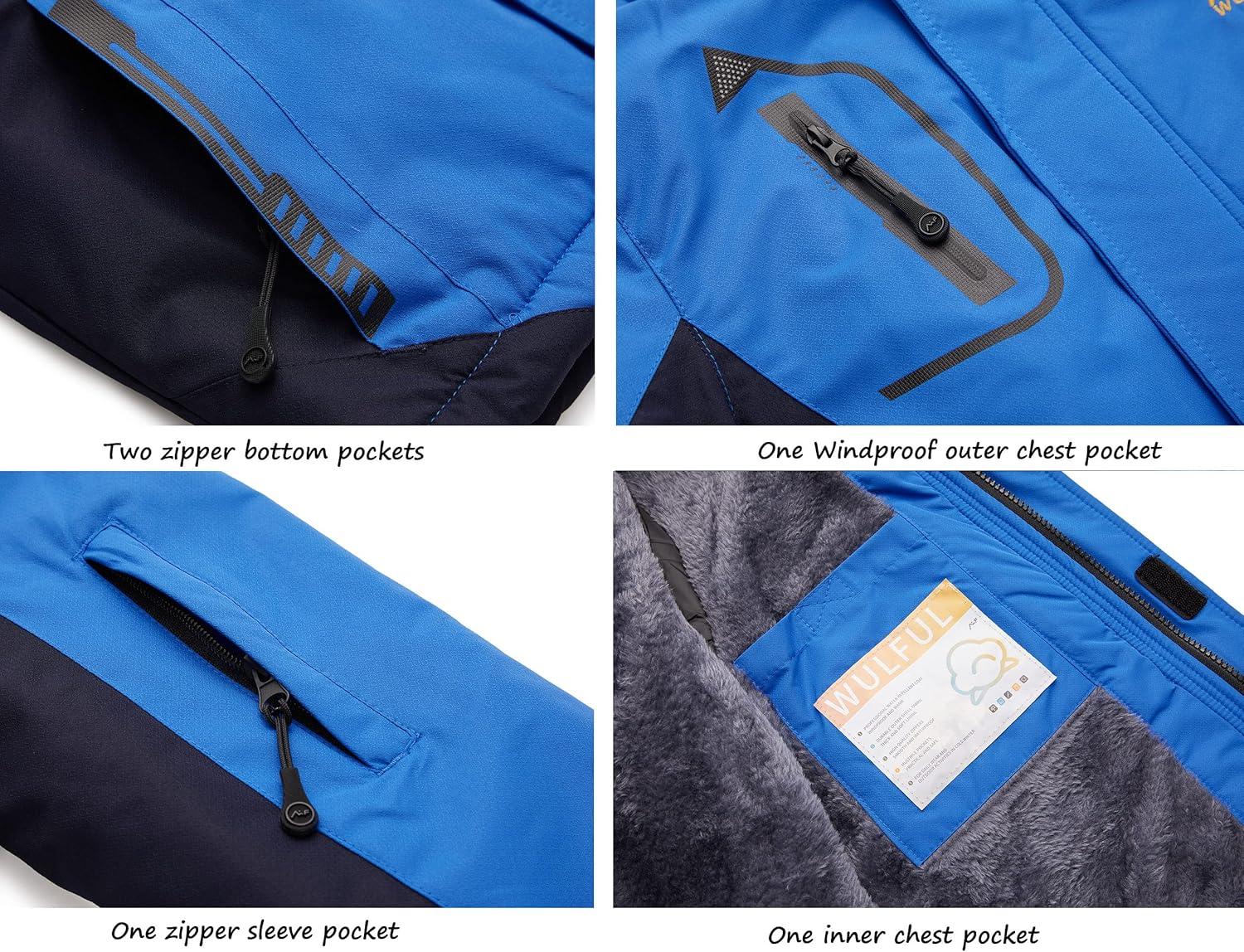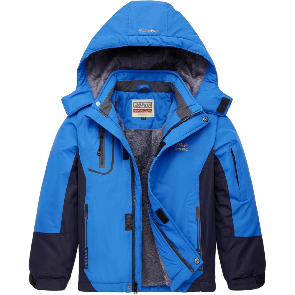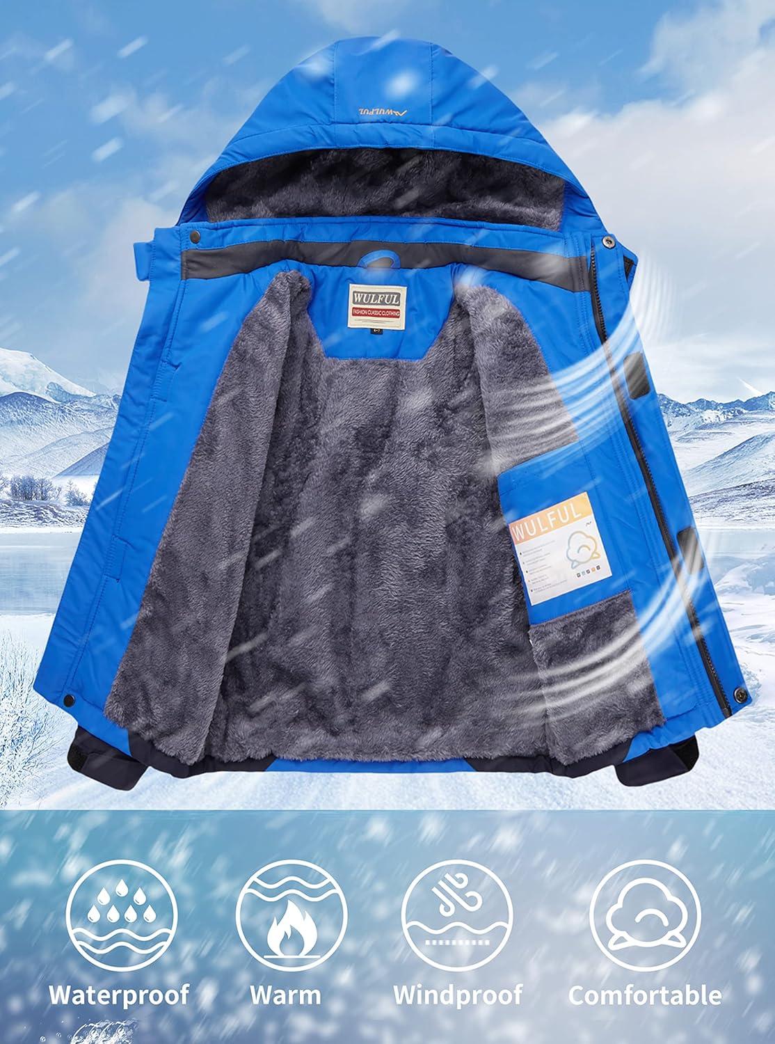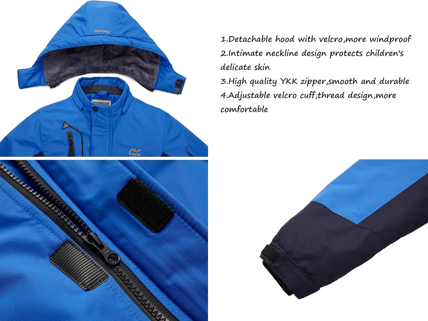 WULFUL Boy’s Waterproof Ski Jacket Warm Fleece Hooded Winter Snow Coat(Blue(0006))