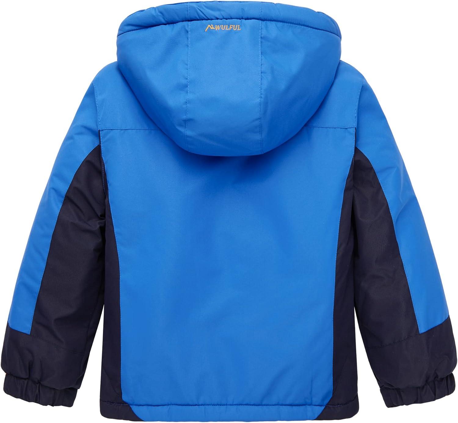 WULFUL Boy’s Waterproof Ski Jacket Warm Fleece Hooded Winter Snow Coat(Blue-navy)