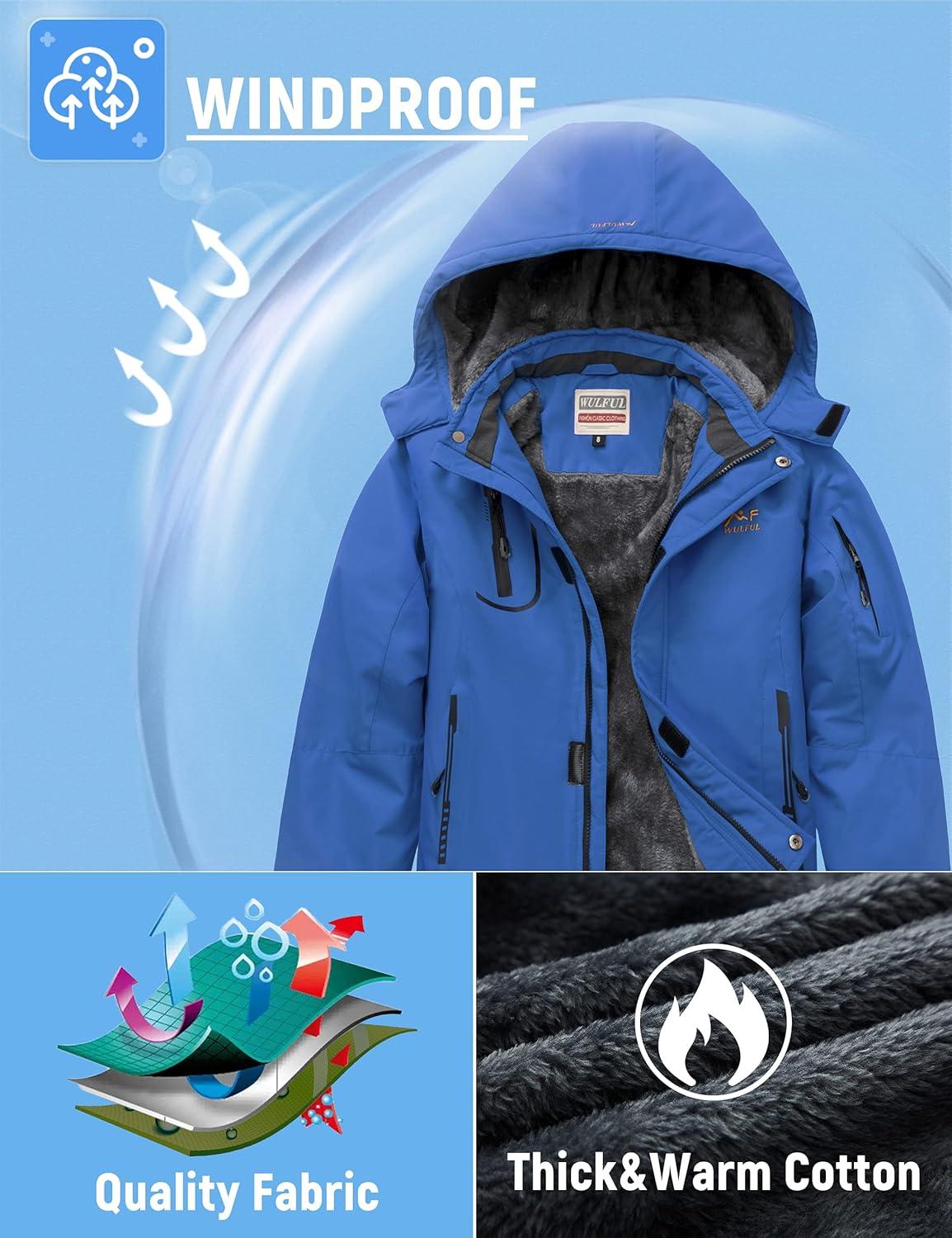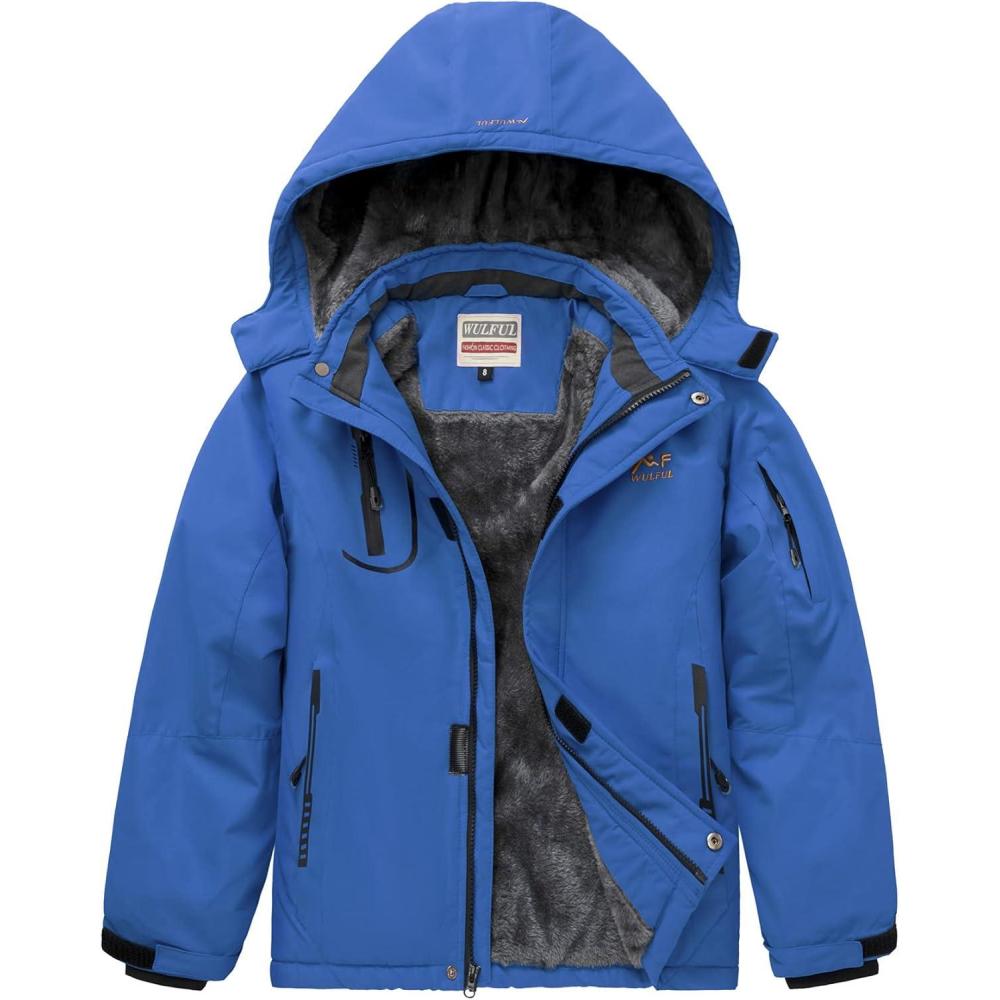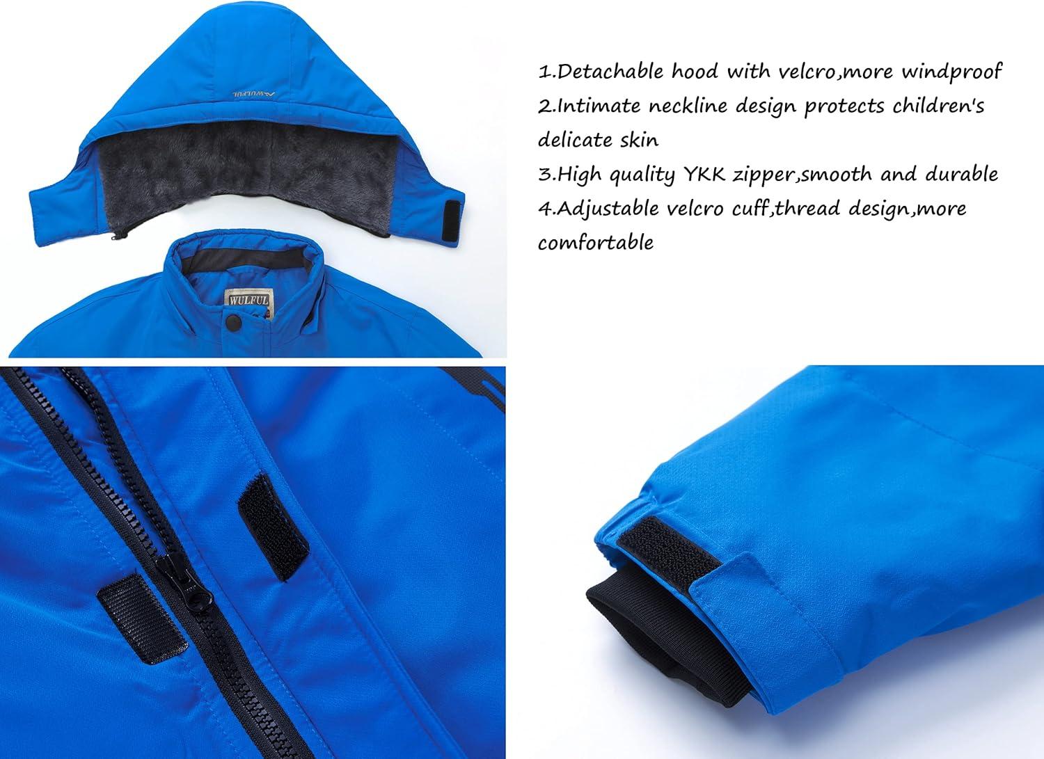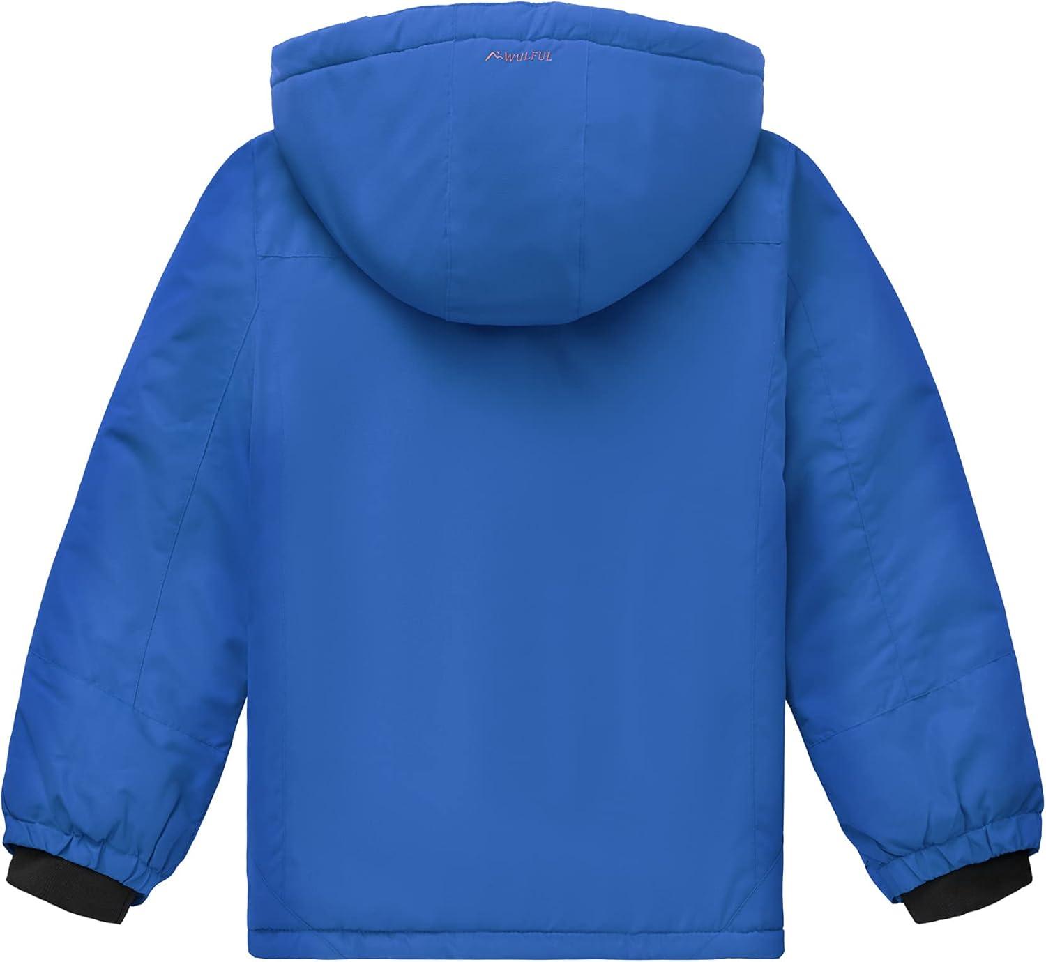 WULFUL Boy’s Waterproof Ski Jacket Warm Fleece Hooded Winter Snow Coat(Blue)