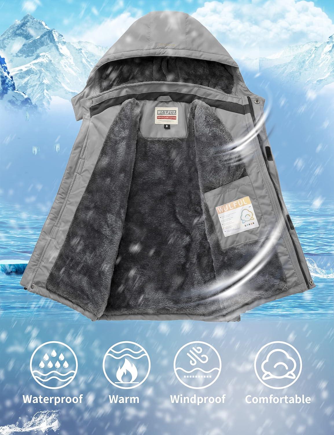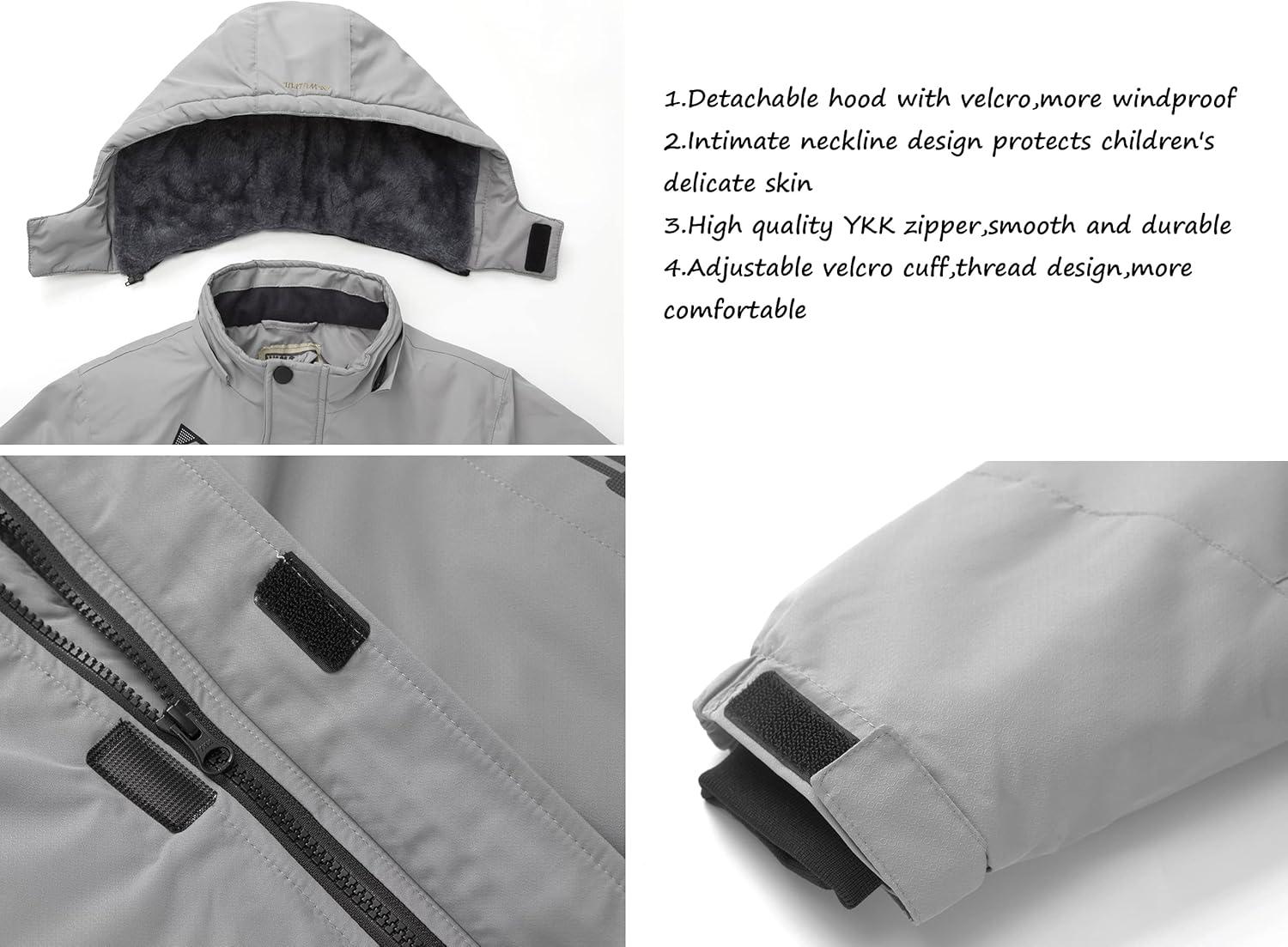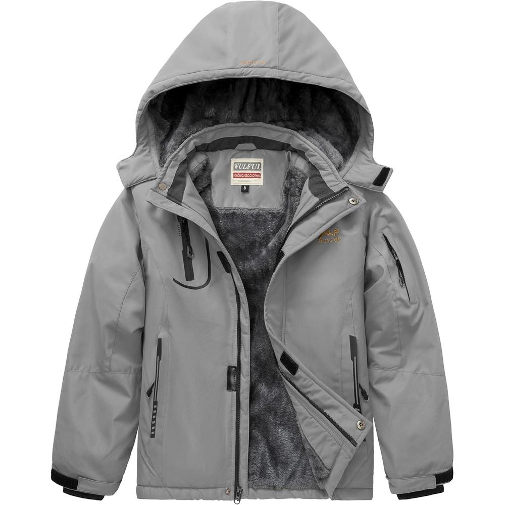 WULFUL Boy’s Waterproof Ski Jacket Warm Fleece Hooded Winter Snow Coat(Dark Grey)