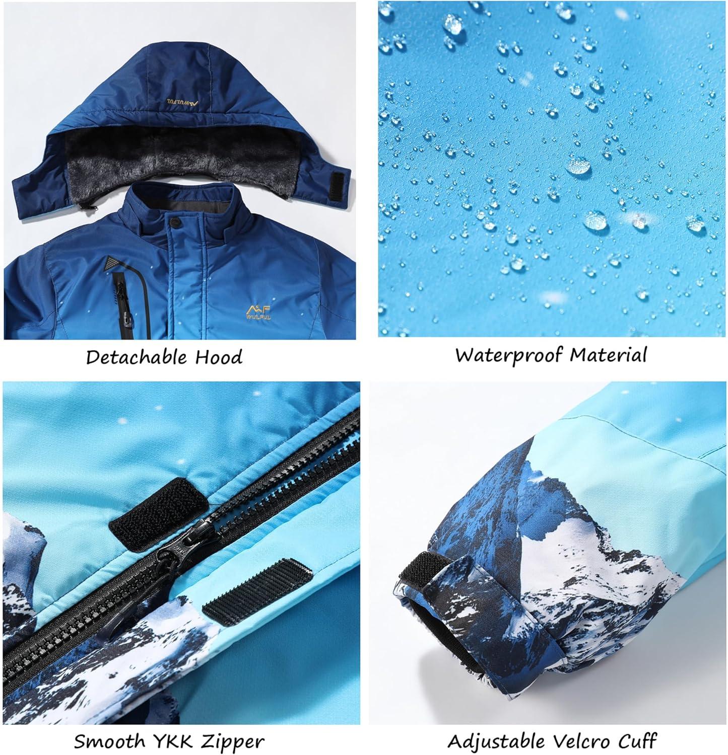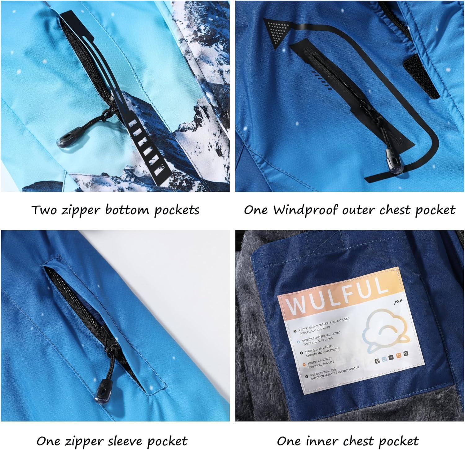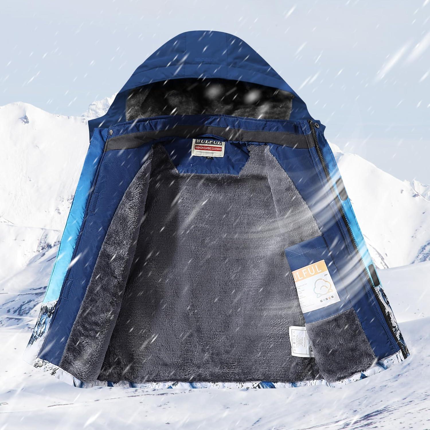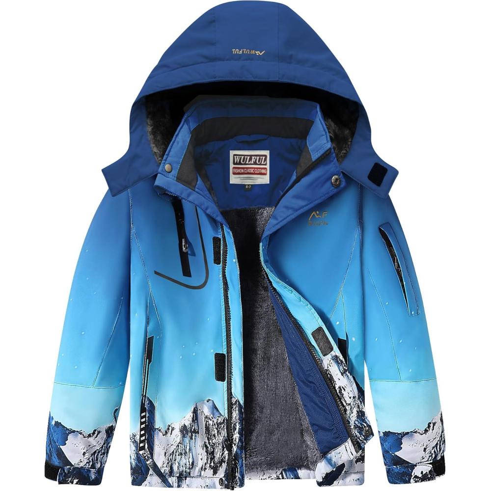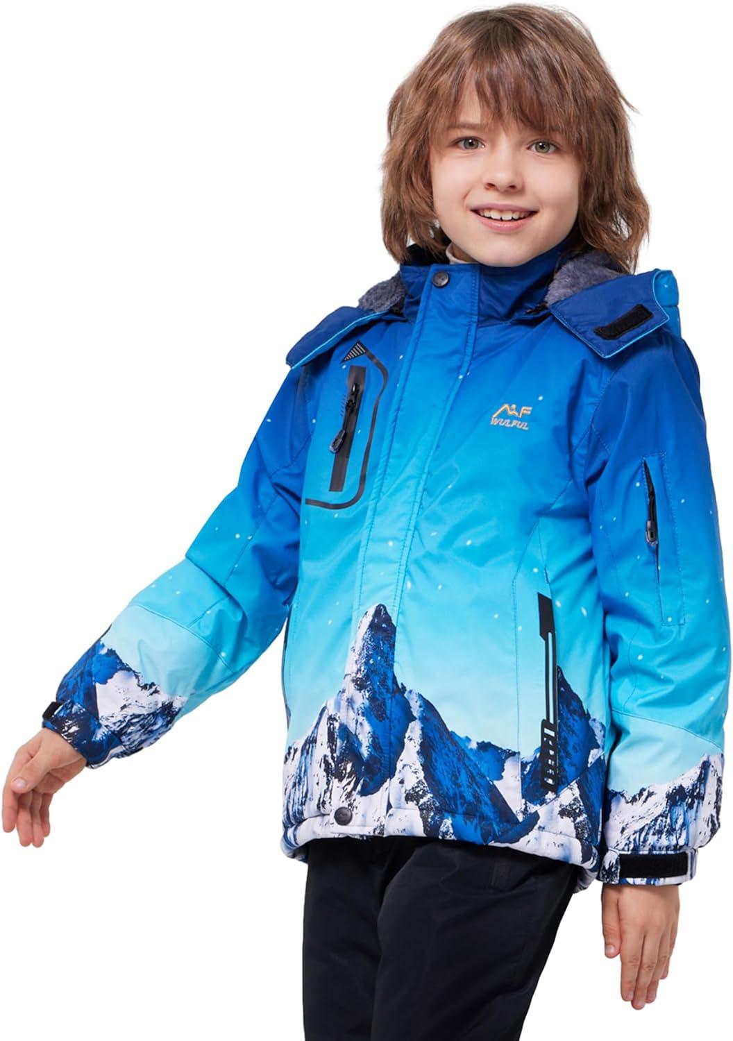 WULFUL Boy’s Waterproof Ski Jacket Warm Fleece Hooded Winter Snow Coat(Graffiti(0006))