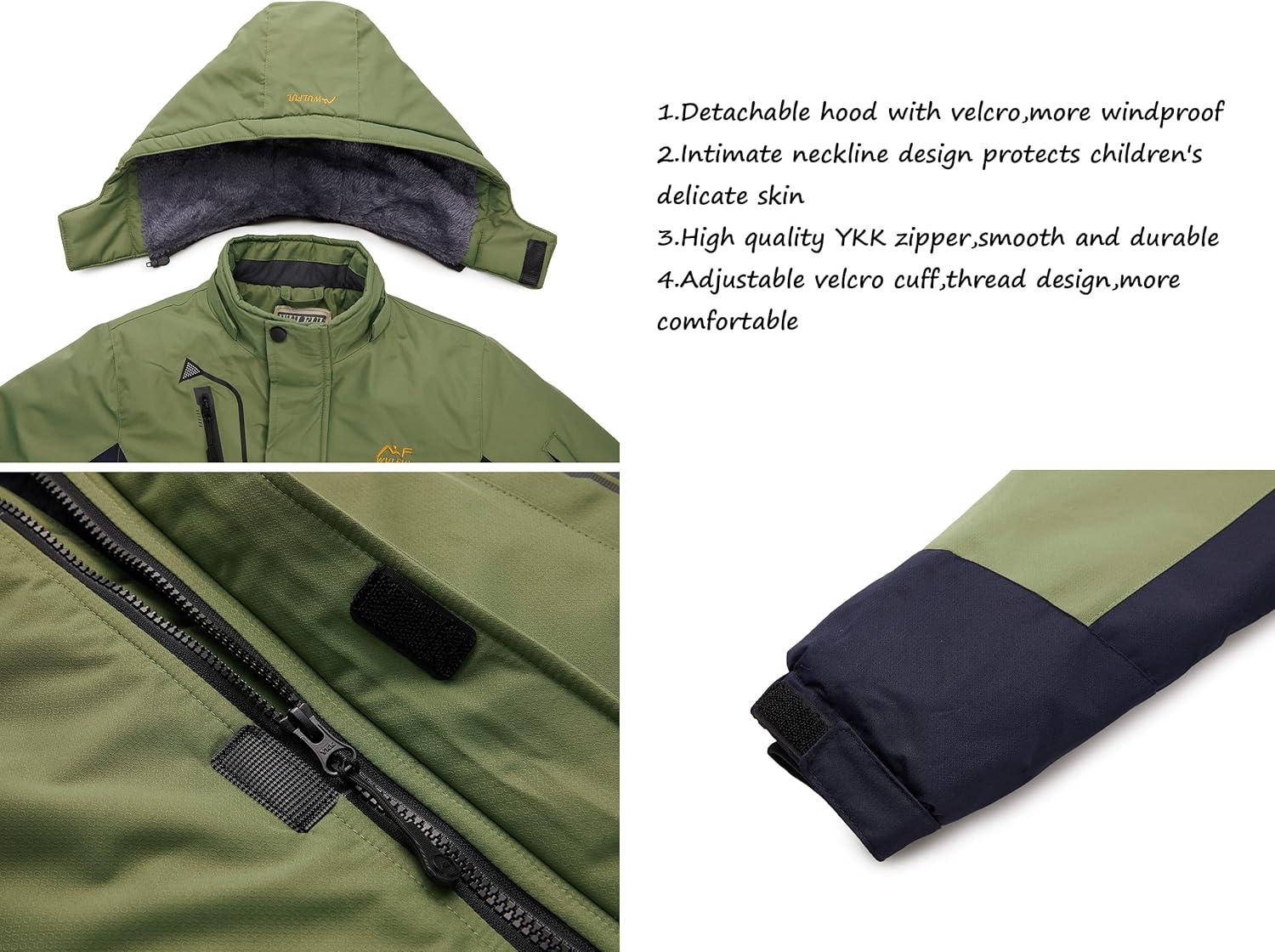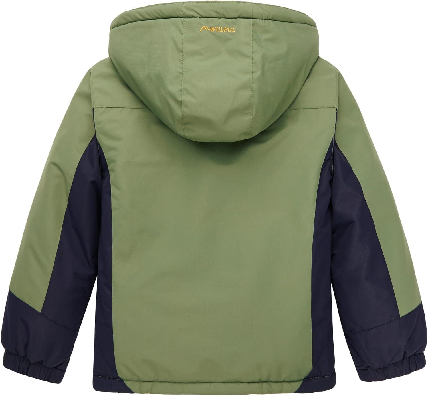 WULFUL Boy’s Waterproof Ski Jacket Warm Fleece Hooded Winter Snow Coat(Green)