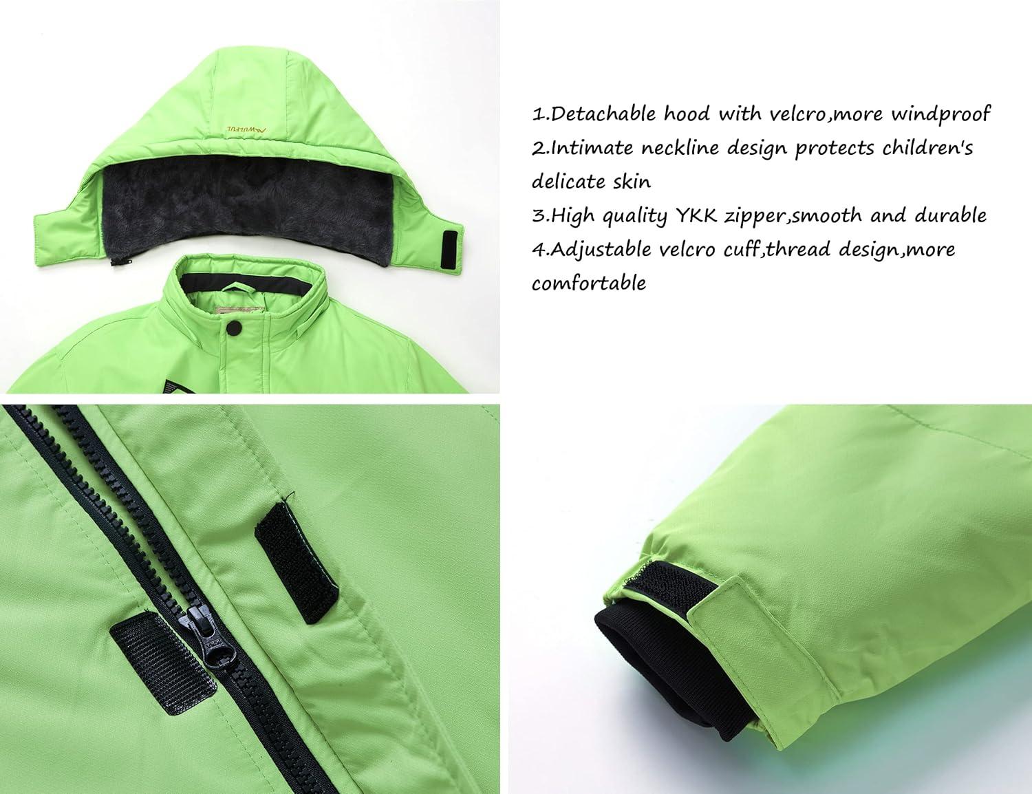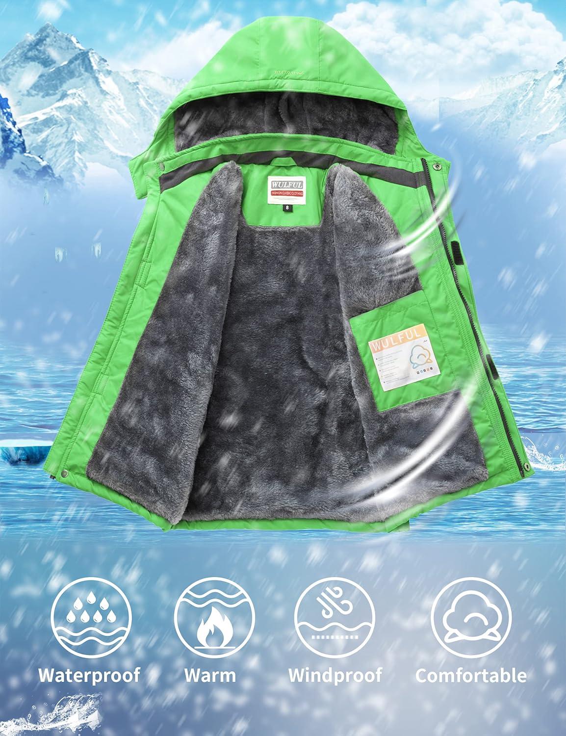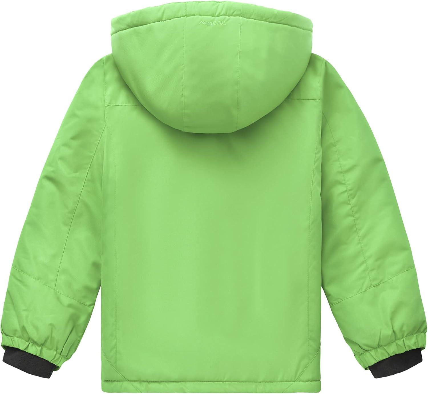 WULFUL Boy’s Waterproof Ski Jacket Warm Fleece Hooded Winter Snow Coat(Green)