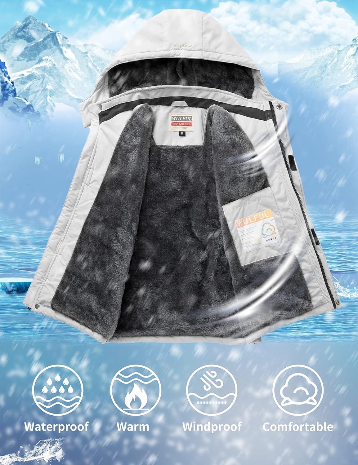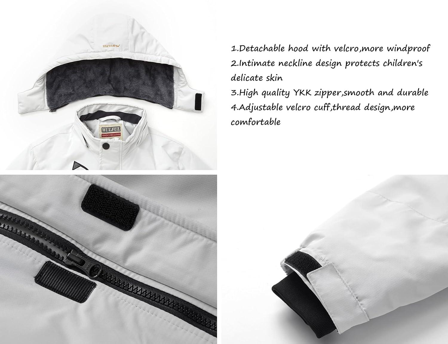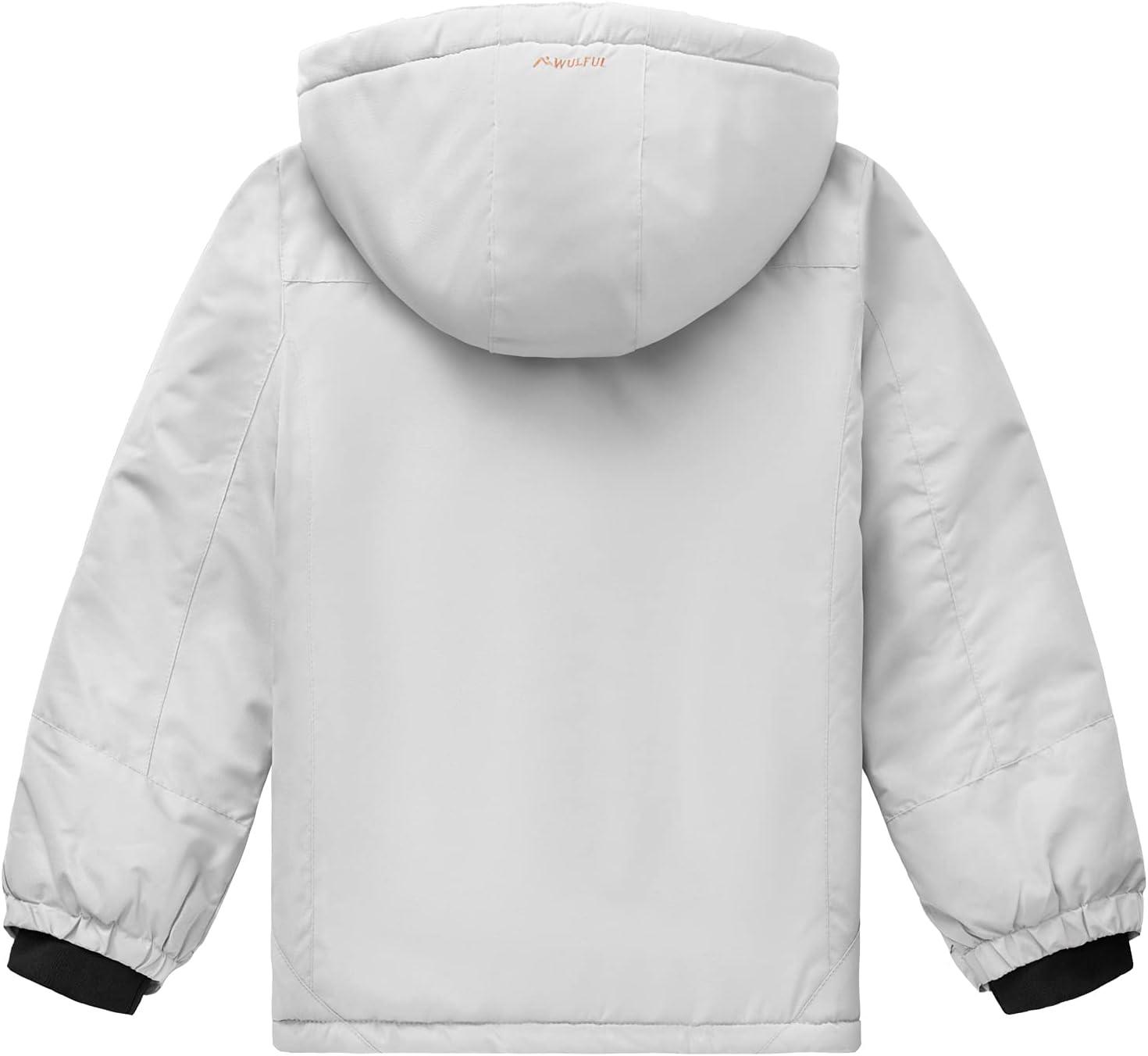 WULFUL Boy’s Waterproof Ski Jacket Warm Fleece Hooded Winter Snow Coat(Light Grey)