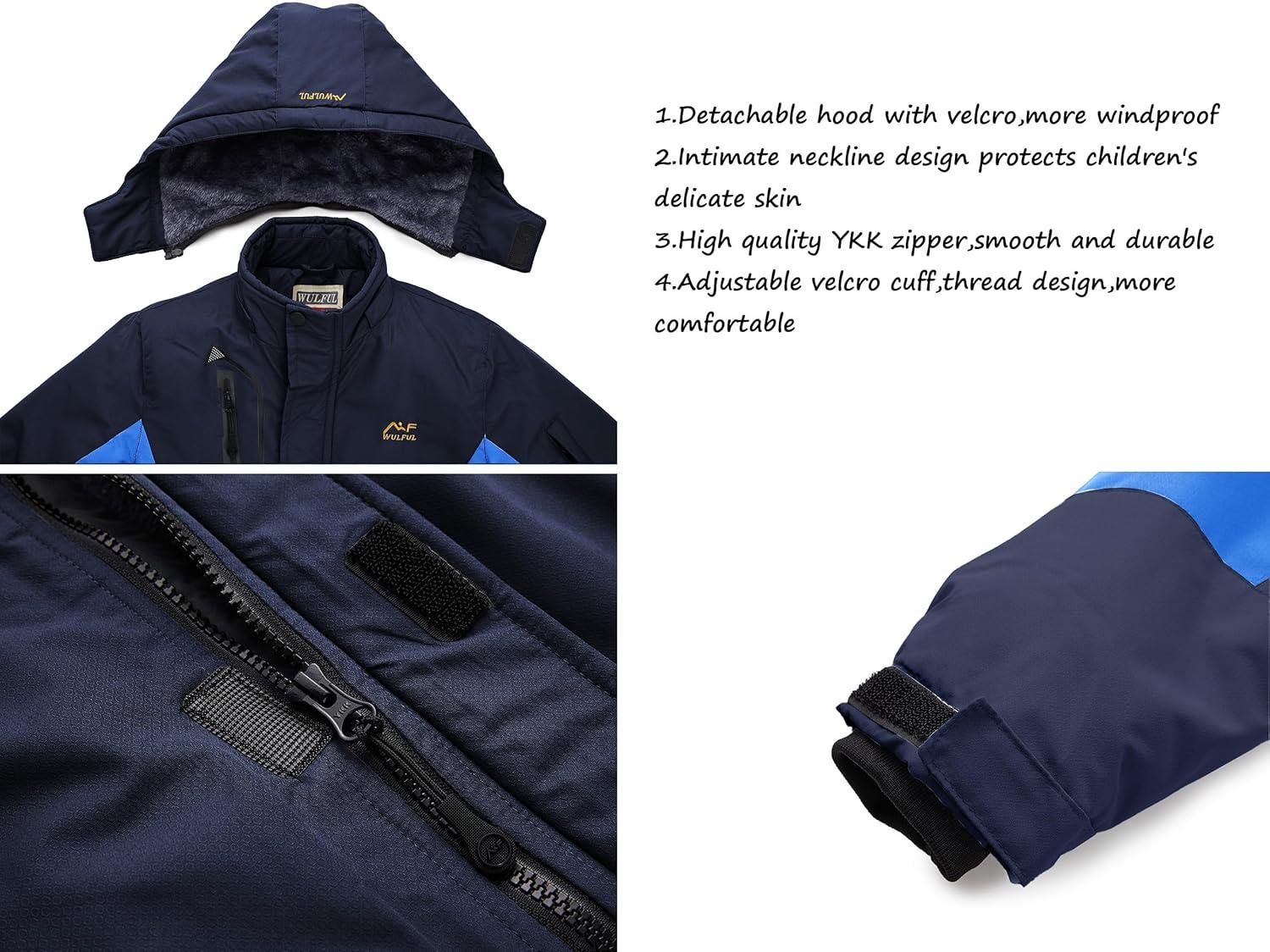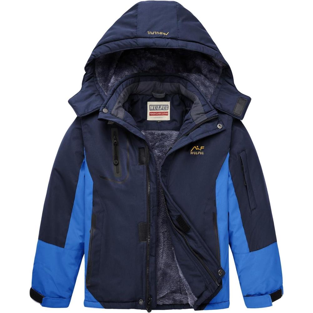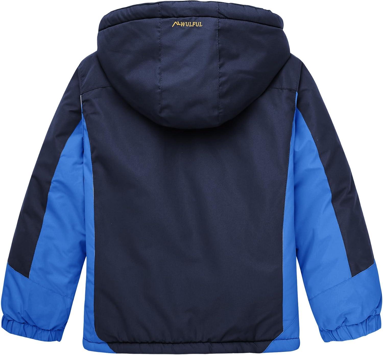 WULFUL Boy’s Waterproof Ski Jacket Warm Fleece Hooded Winter Snow Coat(Navy-blue)