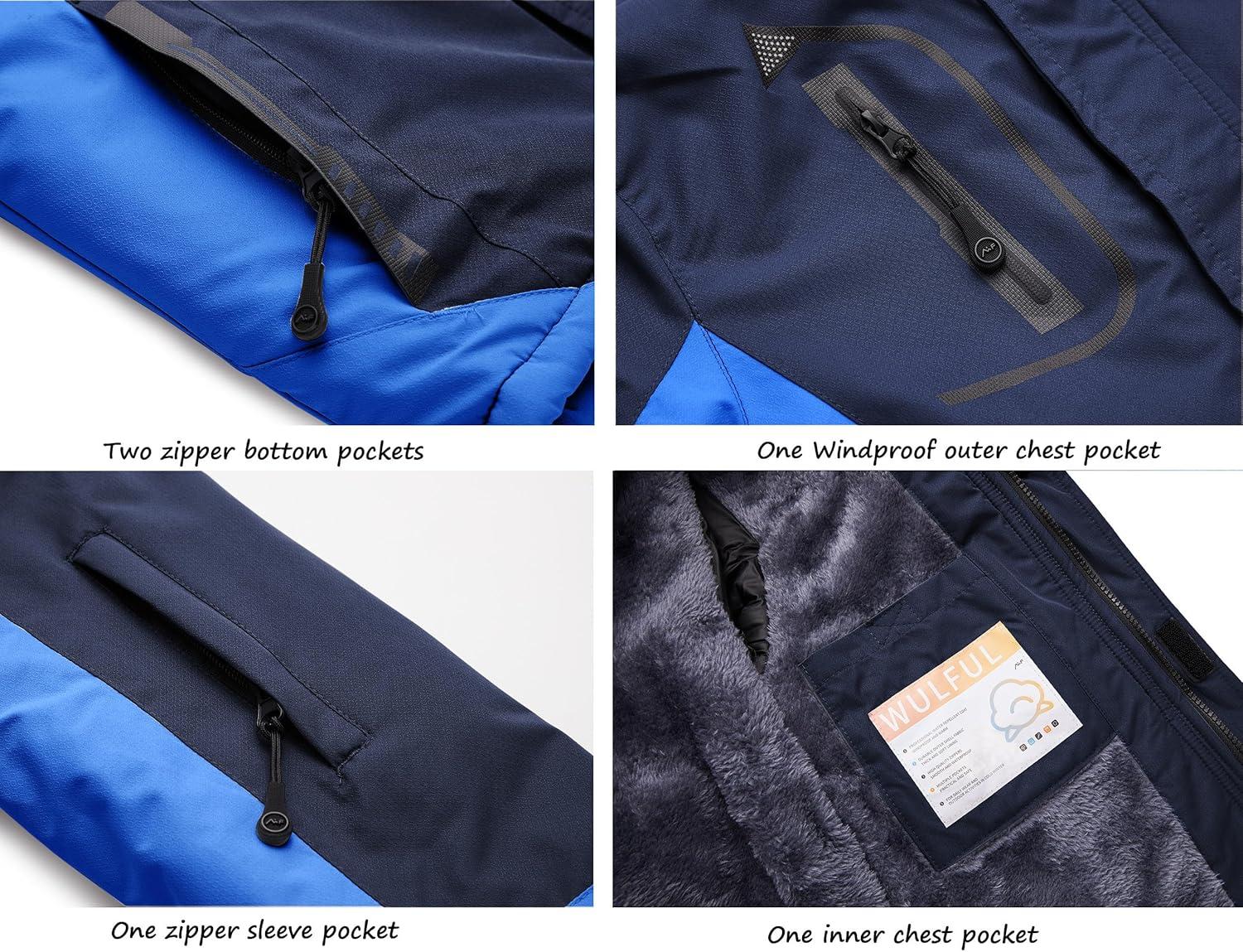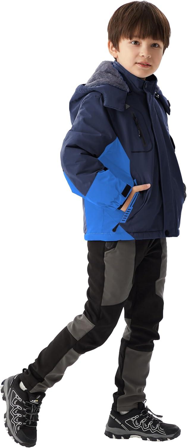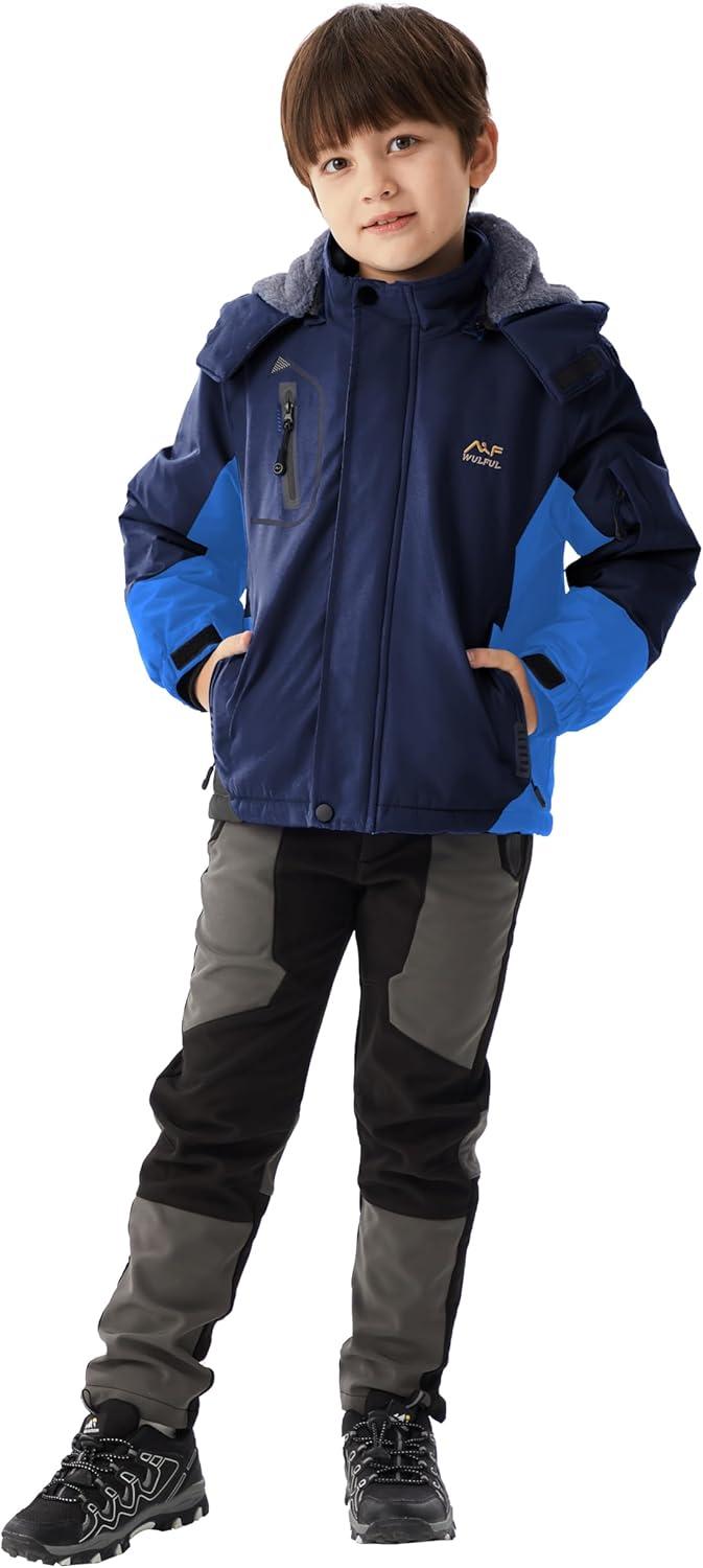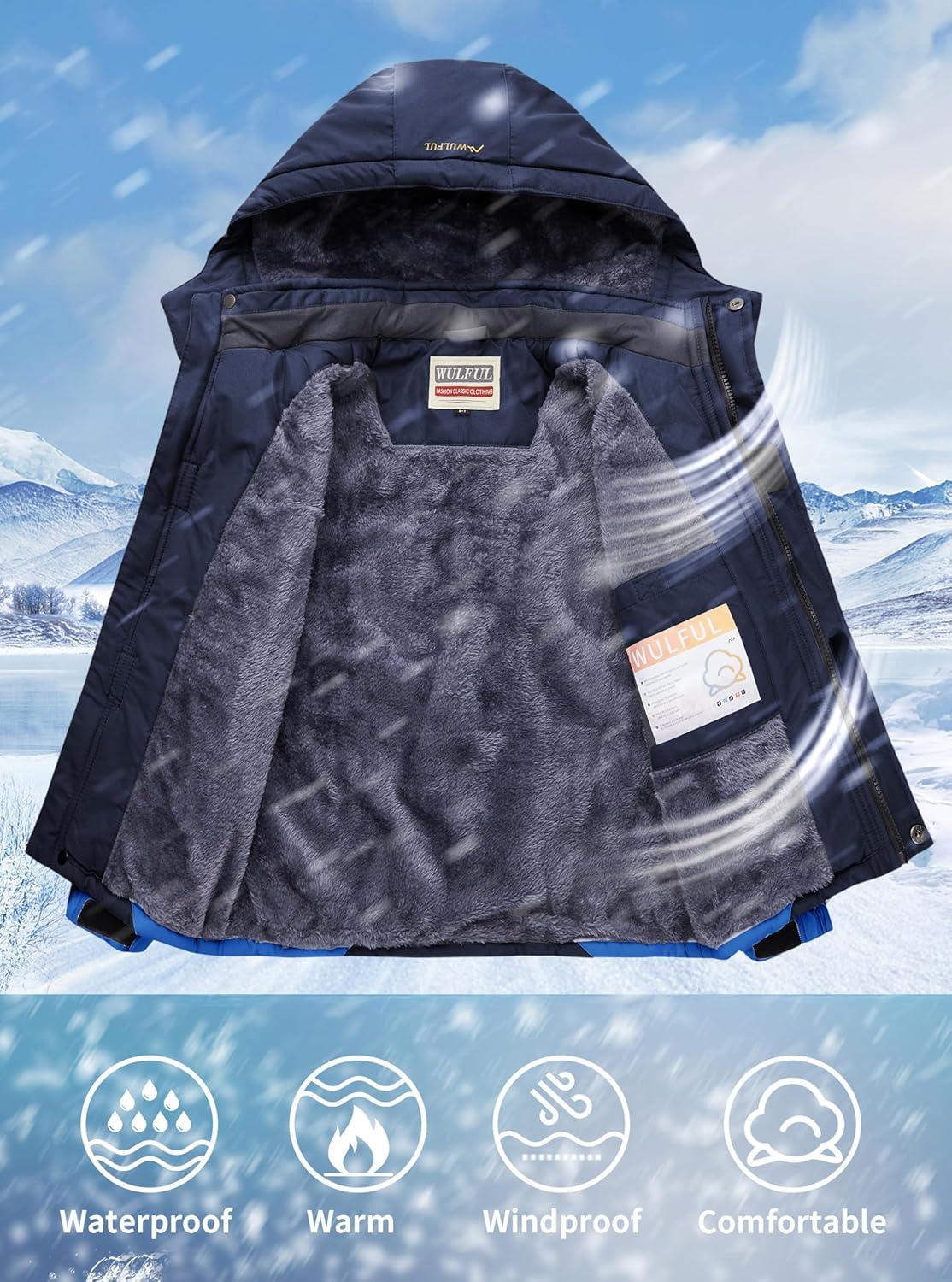 WULFUL Boy’s Waterproof Ski Jacket Warm Fleece Hooded Winter Snow Coat(Navy-blue)