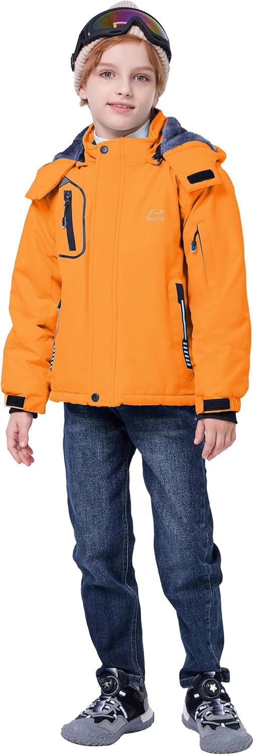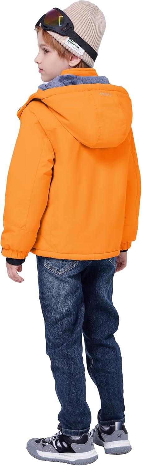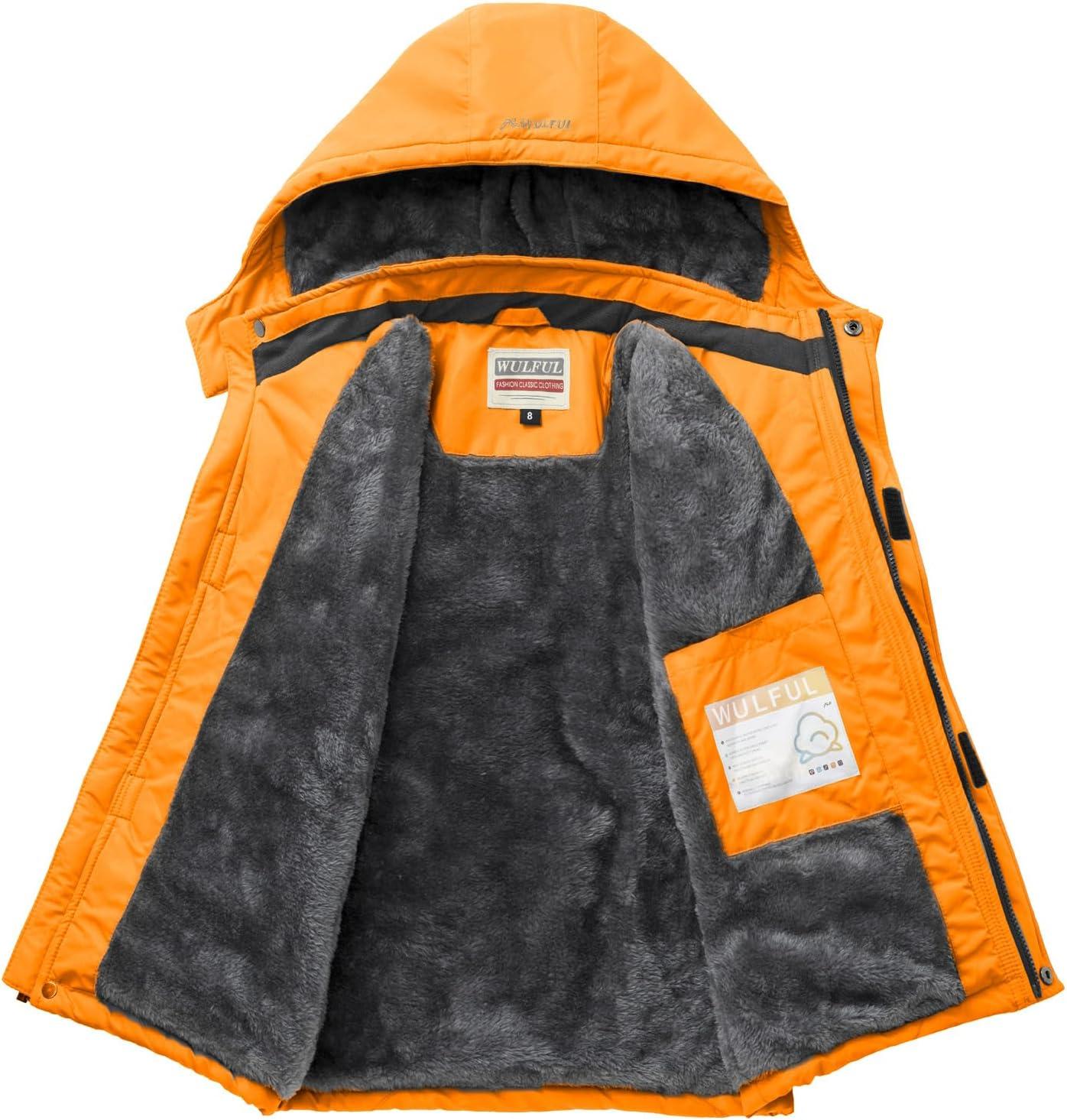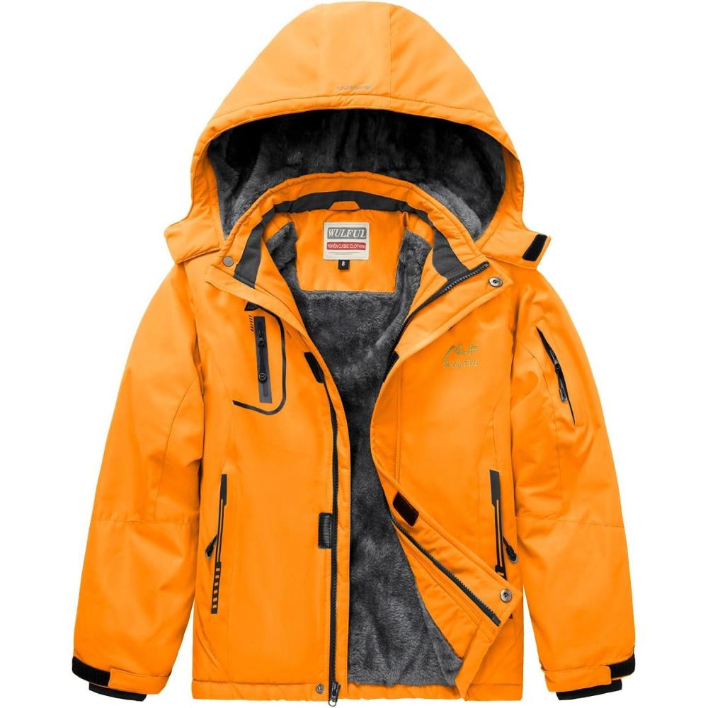 WULFUL Boy’s Waterproof Ski Jacket Warm Fleece Hooded Winter Snow Coat(Orange)