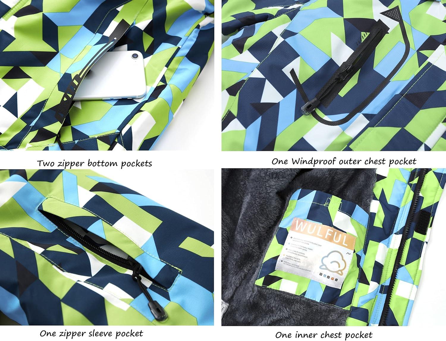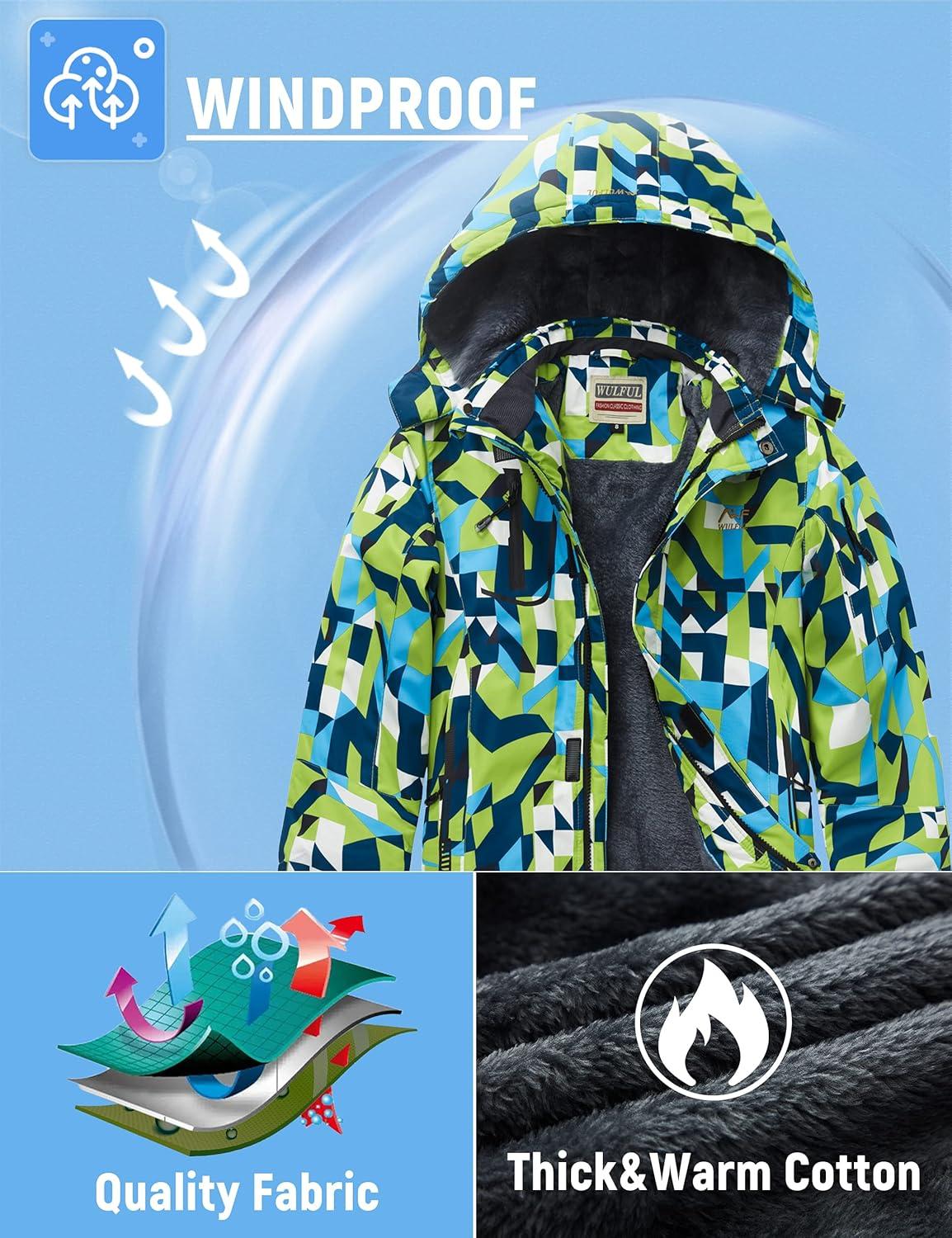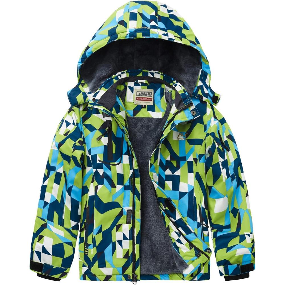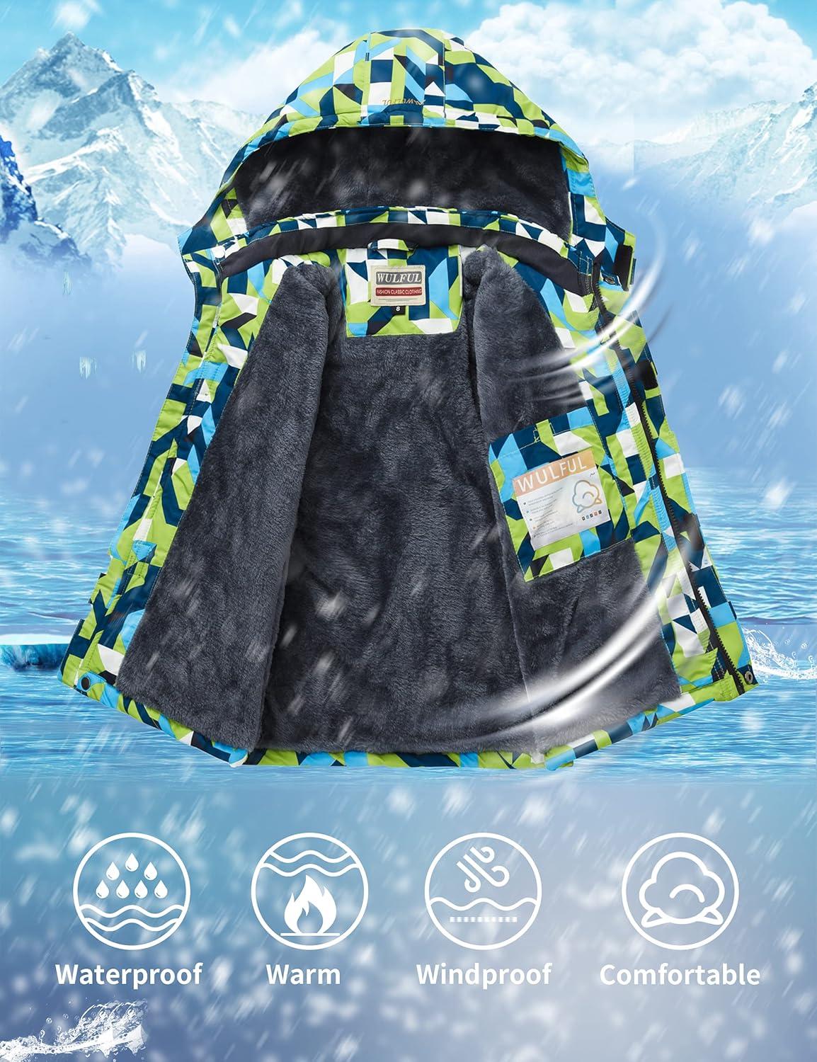 WULFUL Boy’s Waterproof Ski Jacket Warm Fleece Hooded Winter Snow Coat(Pattern 2)