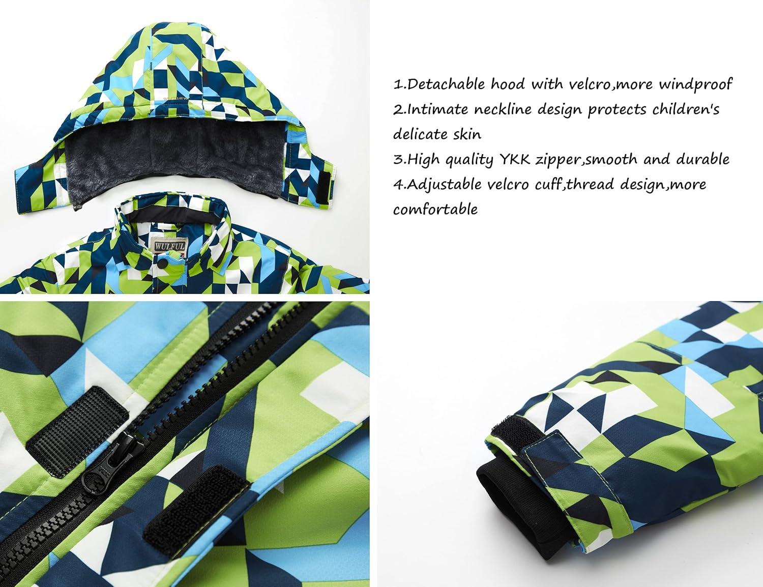 WULFUL Boy’s Waterproof Ski Jacket Warm Fleece Hooded Winter Snow Coat(Pattern 1)