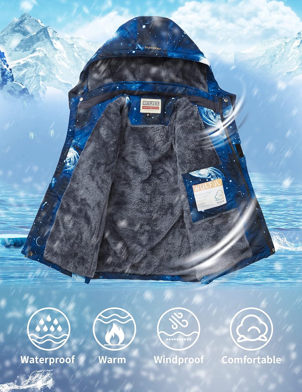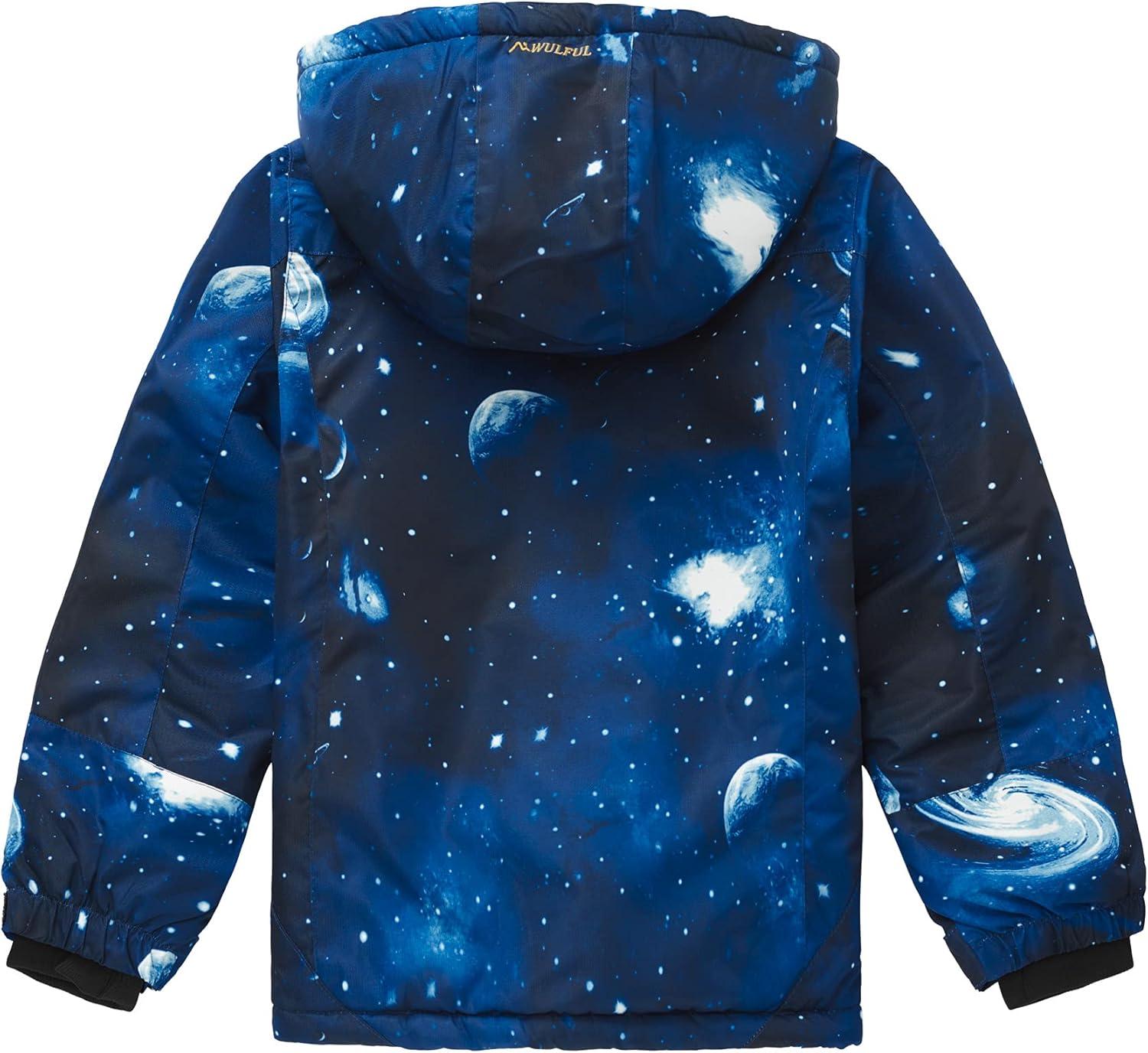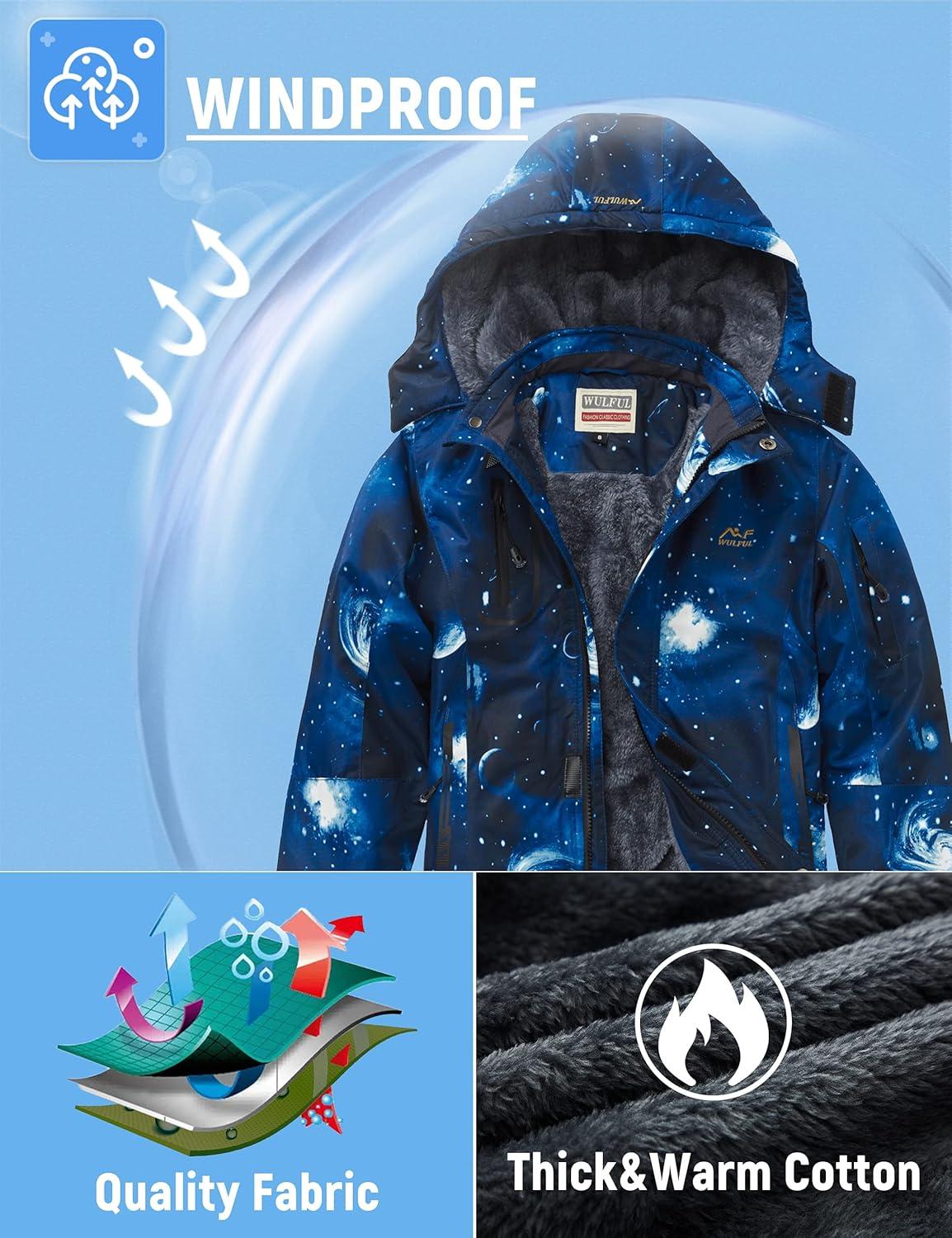 WULFUL Boy’s Waterproof Ski Jacket Warm Fleece Hooded Winter Snow Coat(Pattern 2)