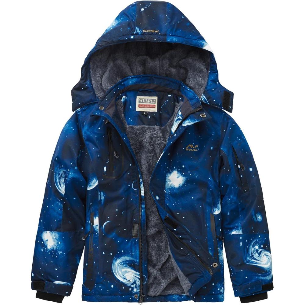 WULFUL Boy’s Waterproof Ski Jacket Warm Fleece Hooded Winter Snow Coat(Pattern 1)