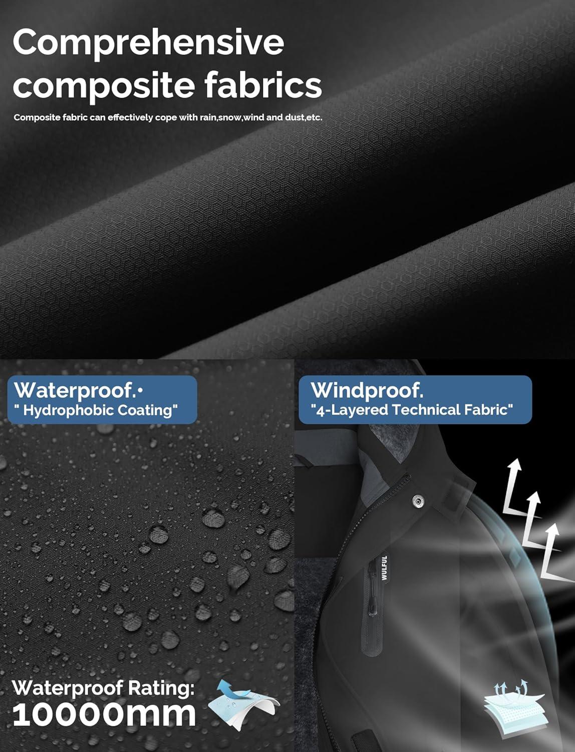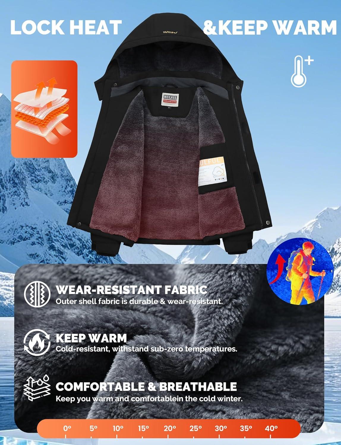WULFUL Boy’s Waterproof Ski Jackets Warm Fleece Lined Hooded Winter Snow Coat(Black)