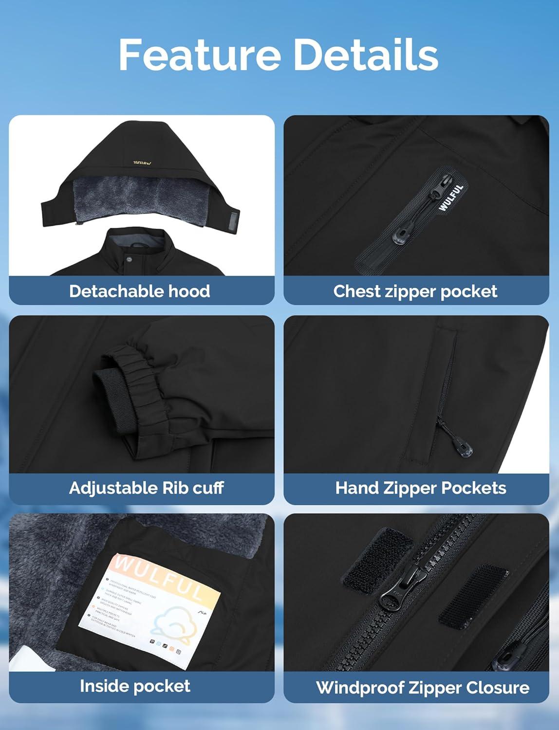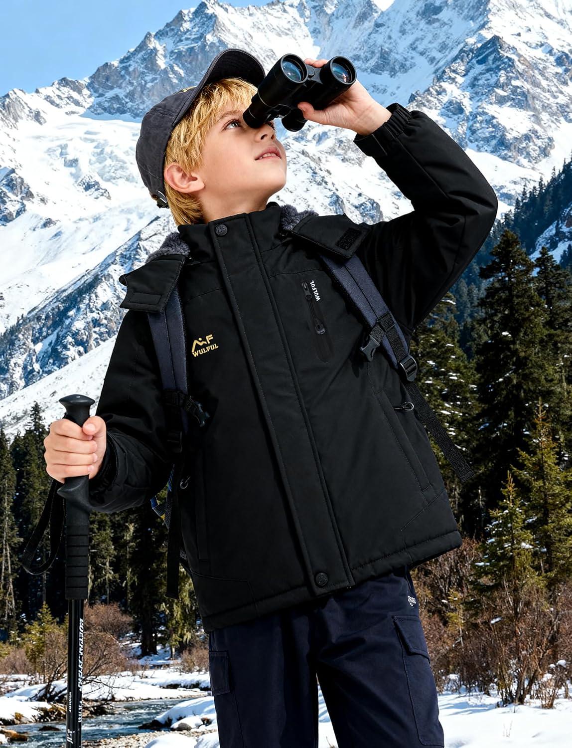WULFUL Boys Snow Ski Jackets,Waterproof and windproof,Warm Fleece Lined ,with Detachable Hood.