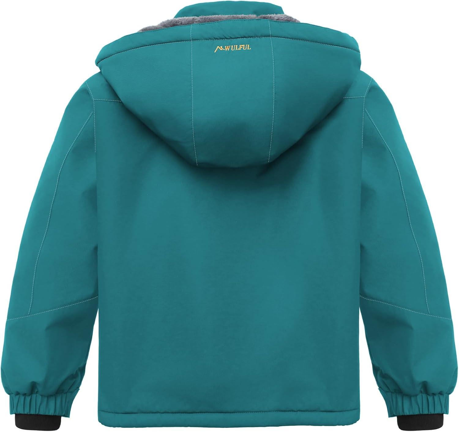 WULFUL Boy’s Waterproof Ski Jackets Warm Fleece Lined Hooded Winter Snow Coat(Blue Green)
