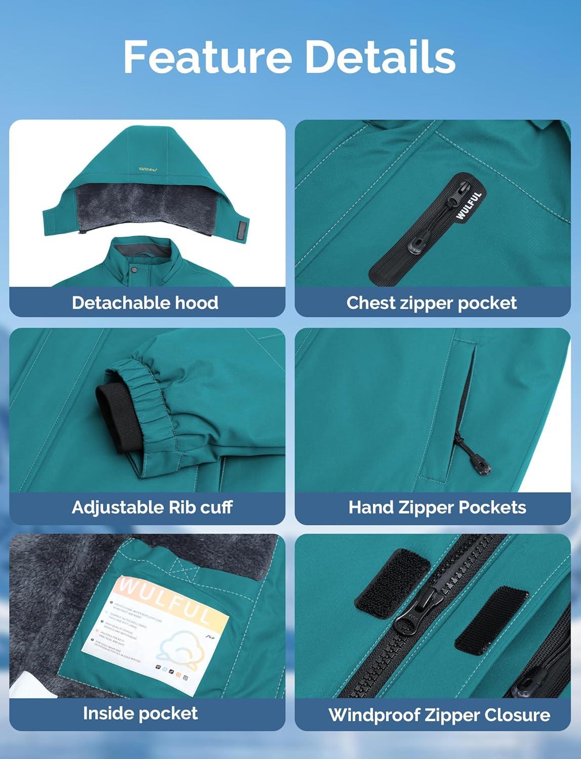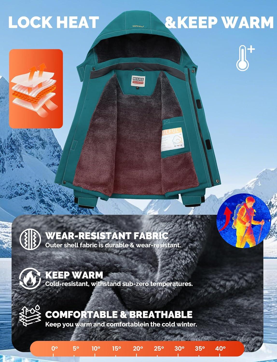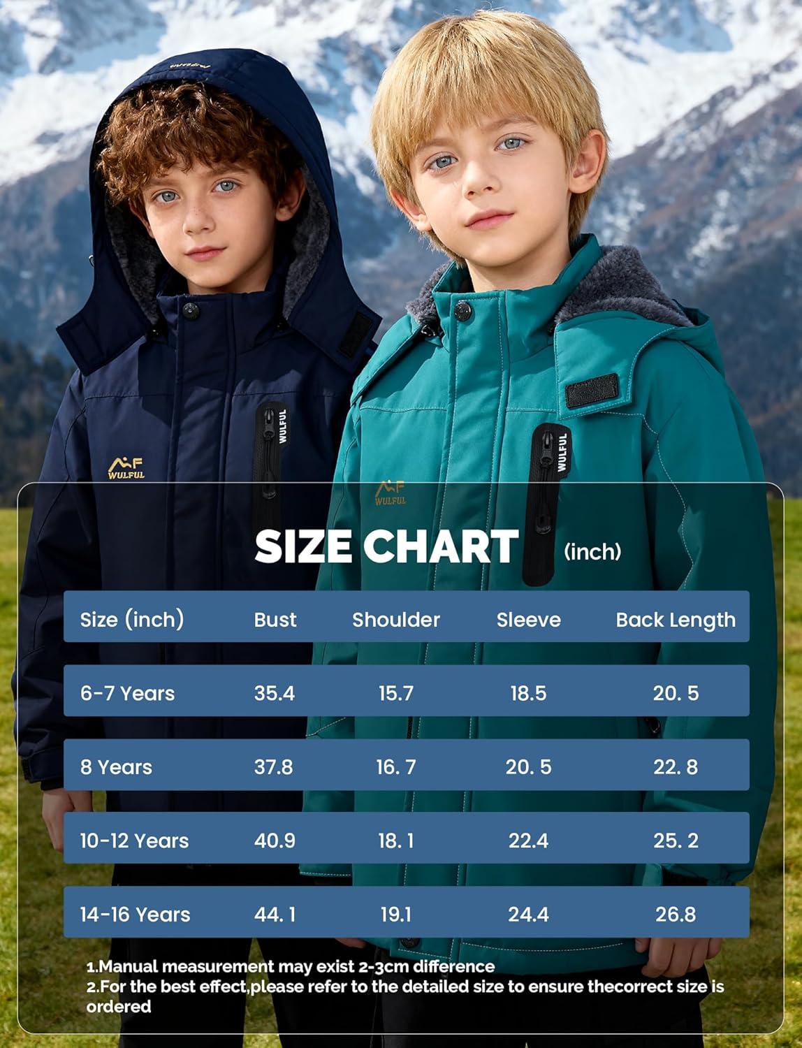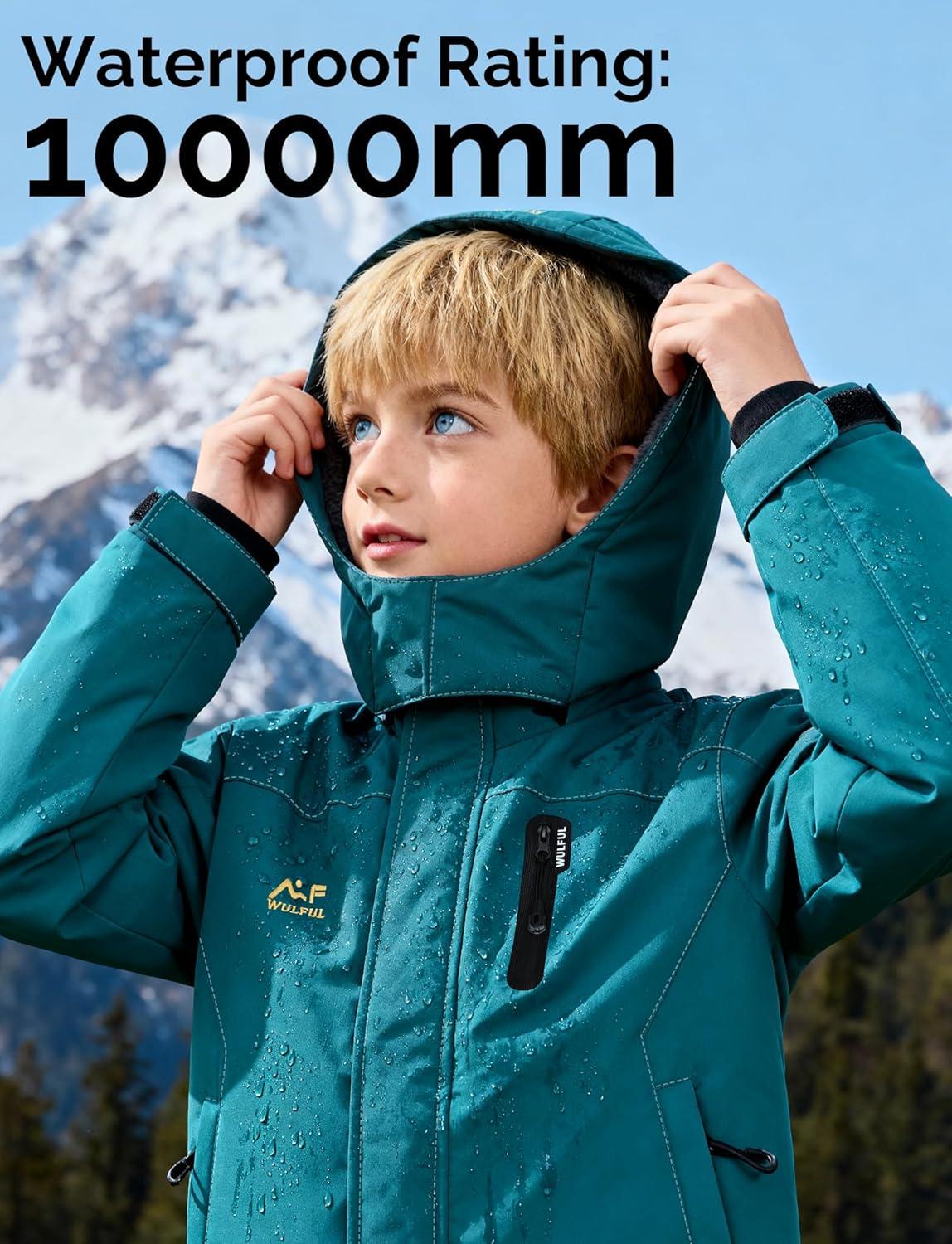 WULFUL Boys Snow Ski Jackets,Waterproof and windproof,Warm Fleece Lined ,with Detachable Hood.