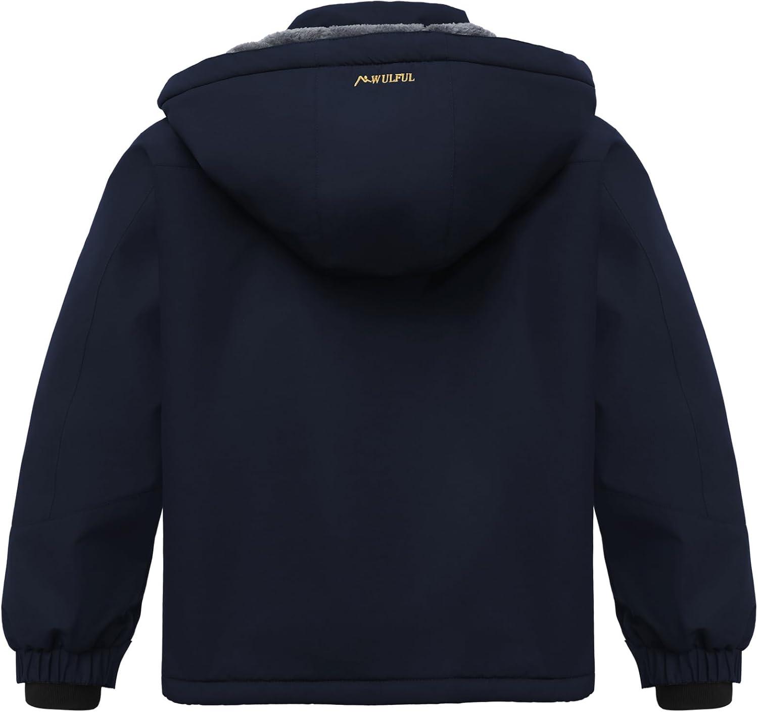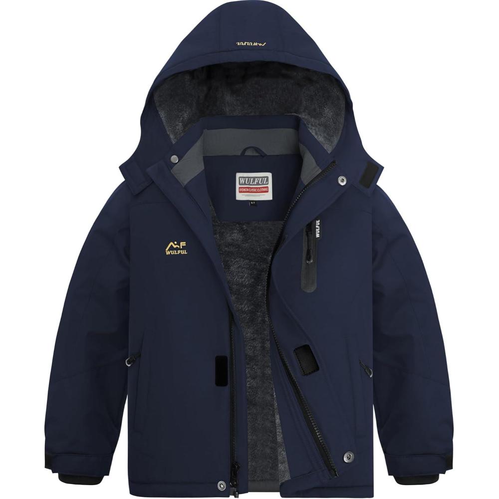 WULFUL Boy’s Waterproof Ski Jackets Warm Fleece Lined Hooded Winter Snow Coat(Navy Blue)