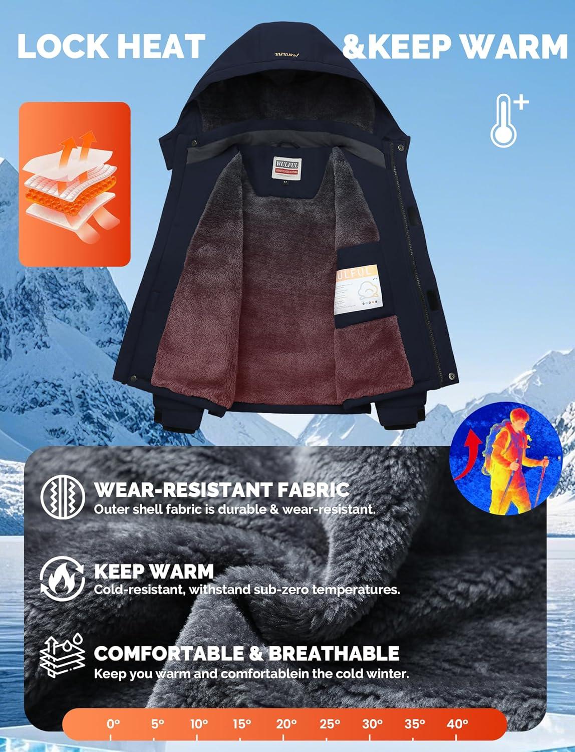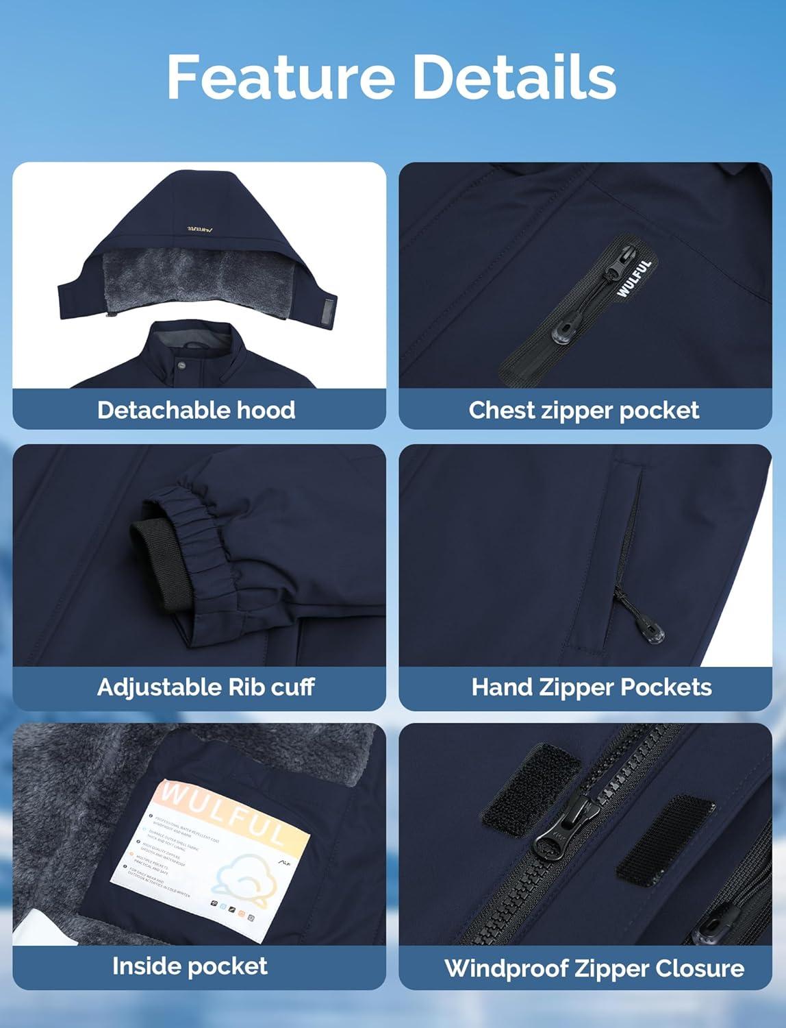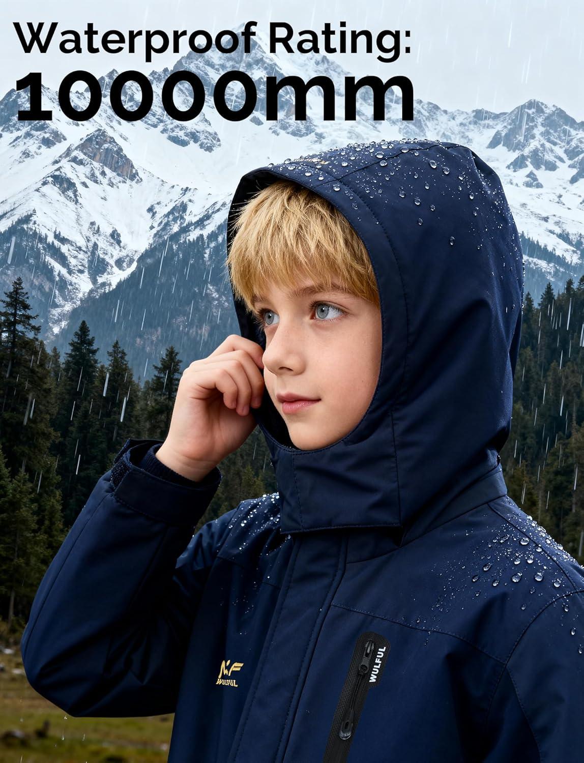 WULFUL Boys Snow Ski Jackets,Waterproof and windproof,Warm Fleece Lined ,with Detachable Hood.