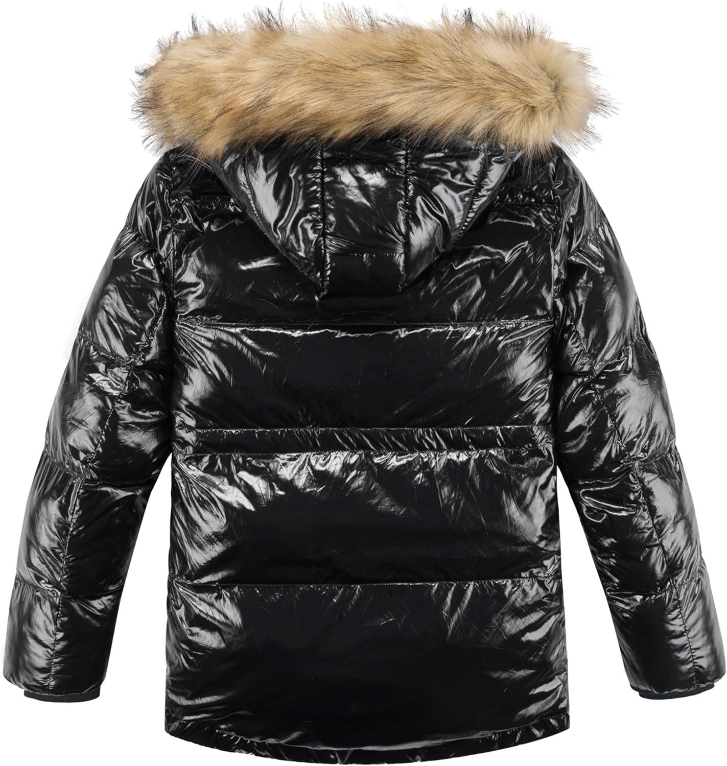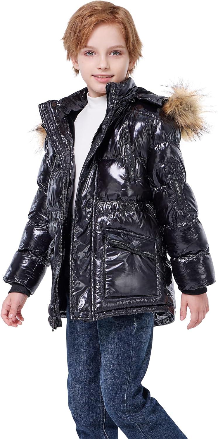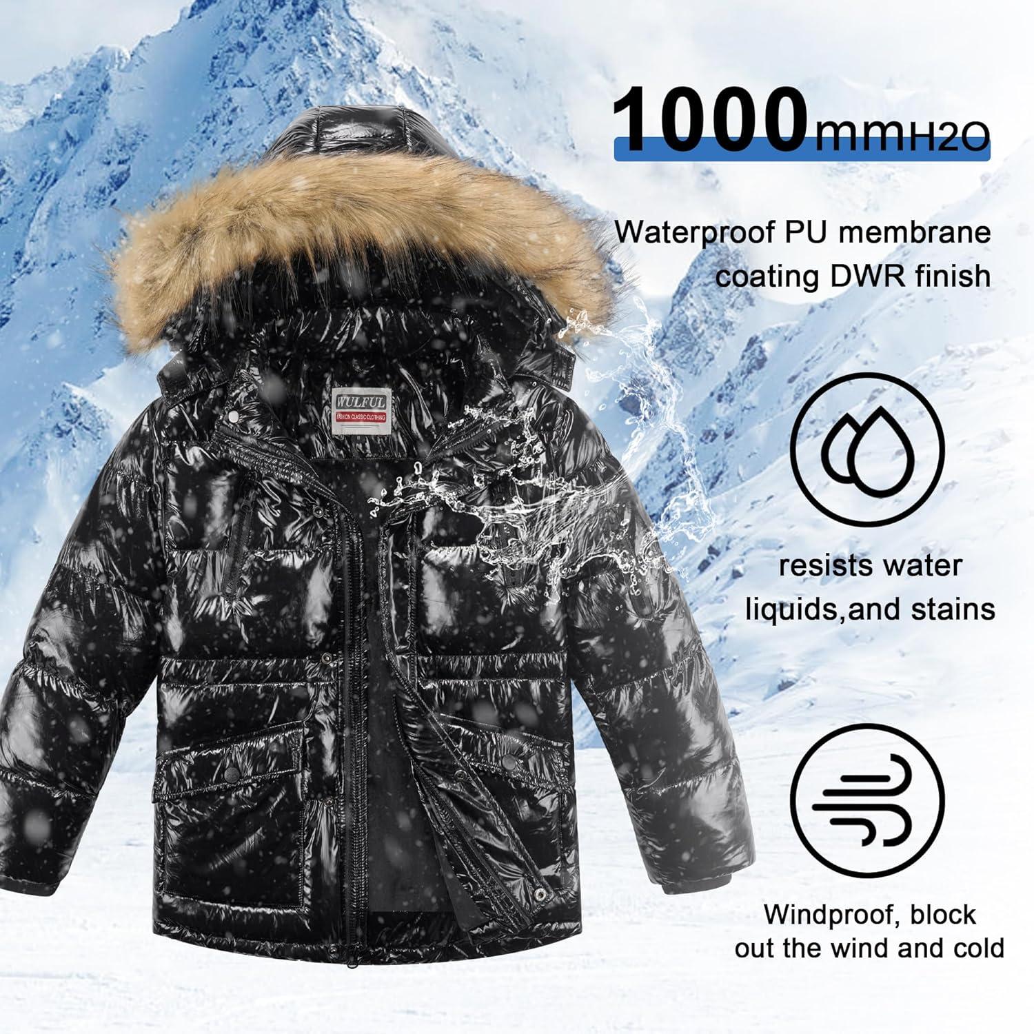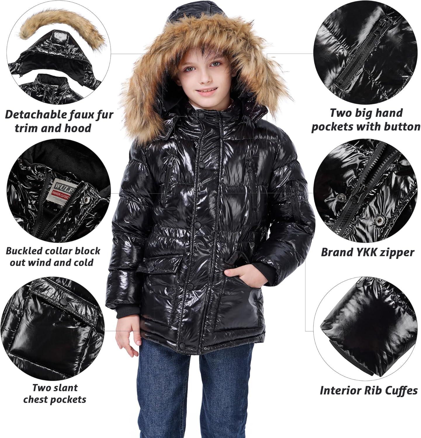 WULFUL Boy’s Winter Coat Waterproof Fleece Lined Parka Jackets Kids Hooded Puffer Outerwear(Bright Black)