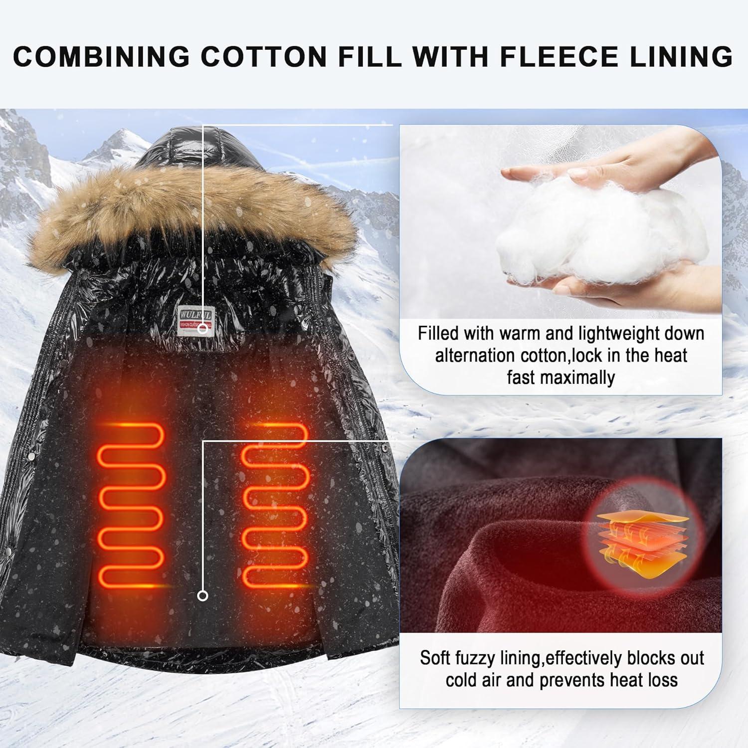 imageWULFUL Boys Winter Coat Waterproof Fleece Lined Parka Jackets Kids Hooded Puffer OuterwearBright Black