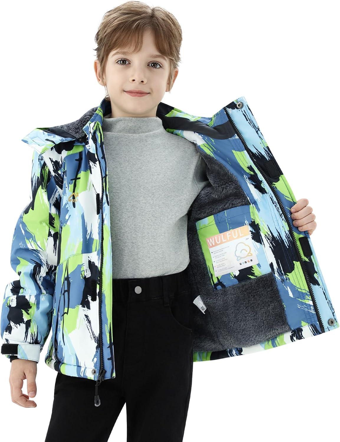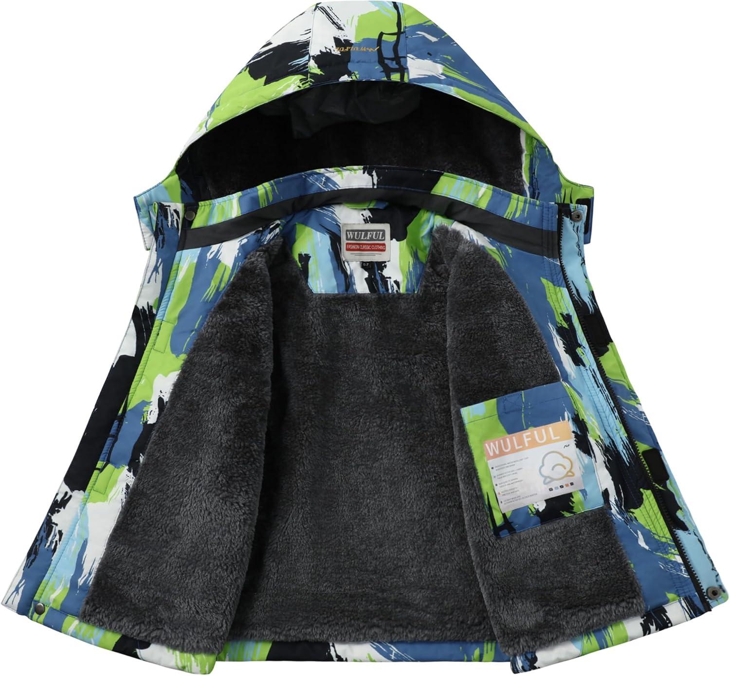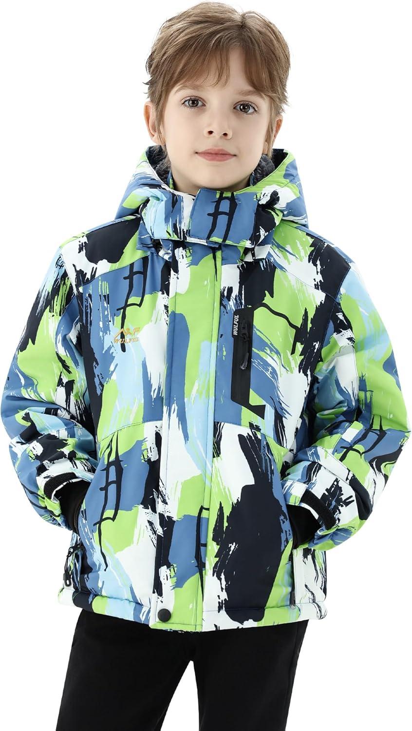 WULFUL Boy’s Winter Waterproof Ski Coat Kids Thick Fleece Snow Jacket Outdoor Windproof Coat(Paintings)