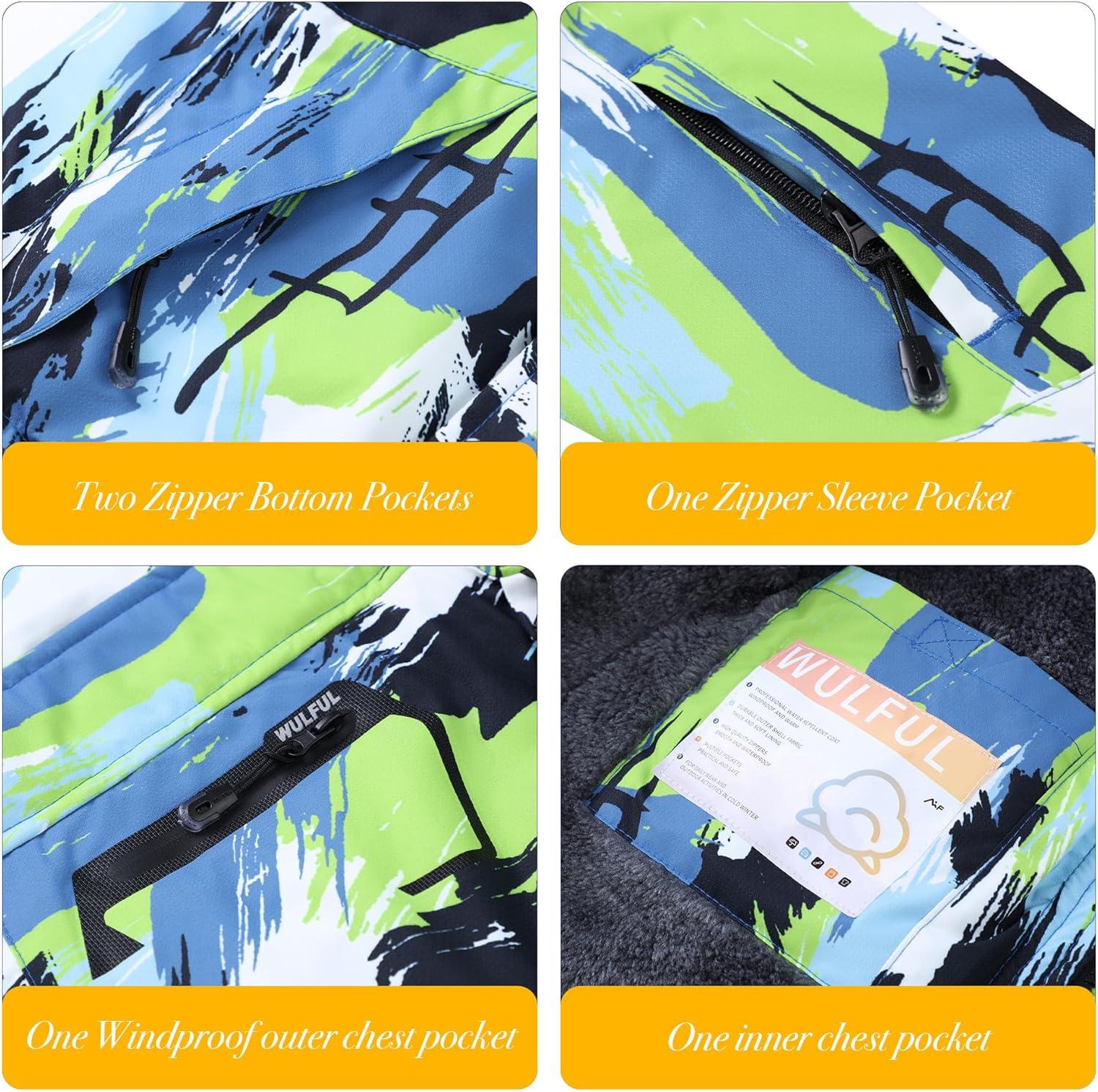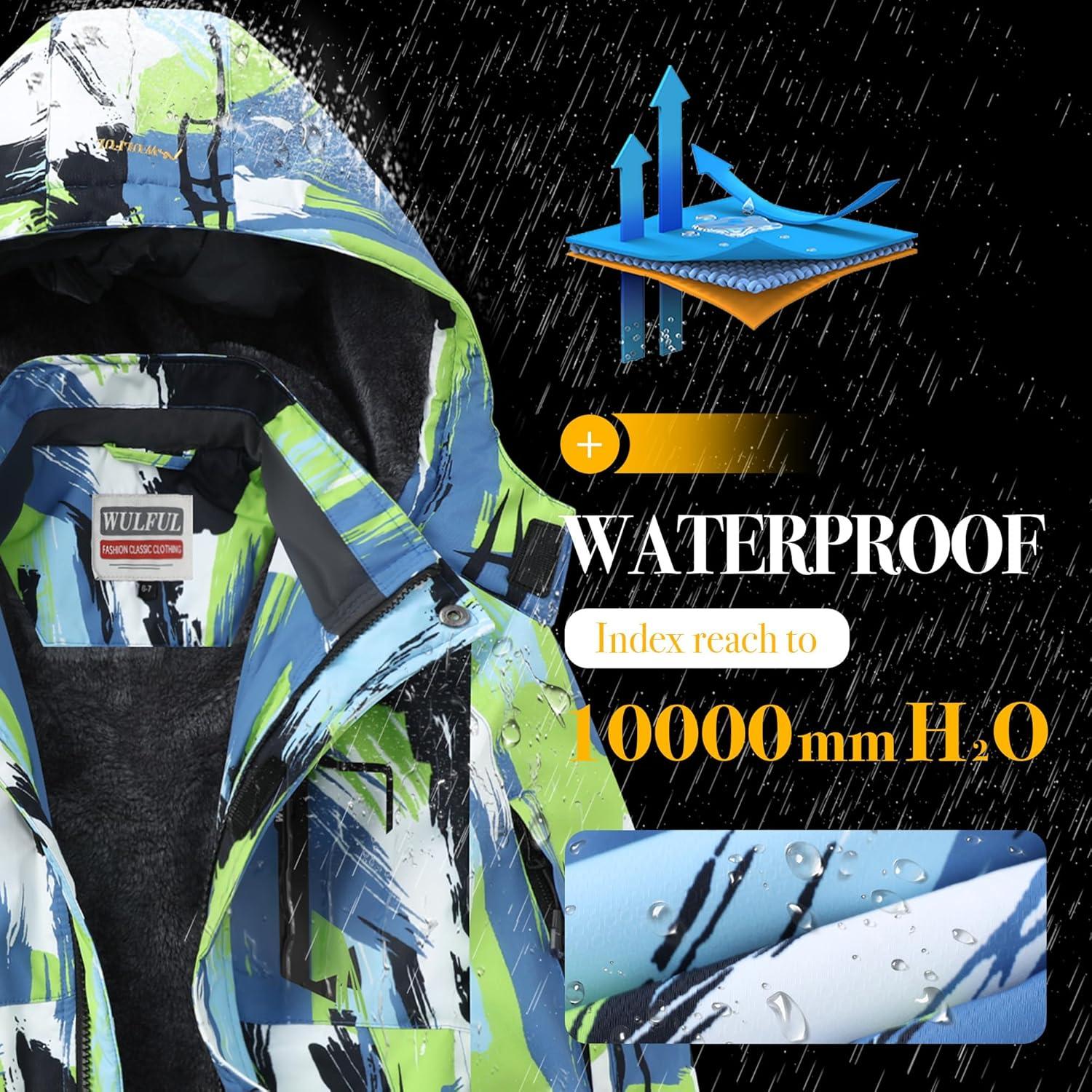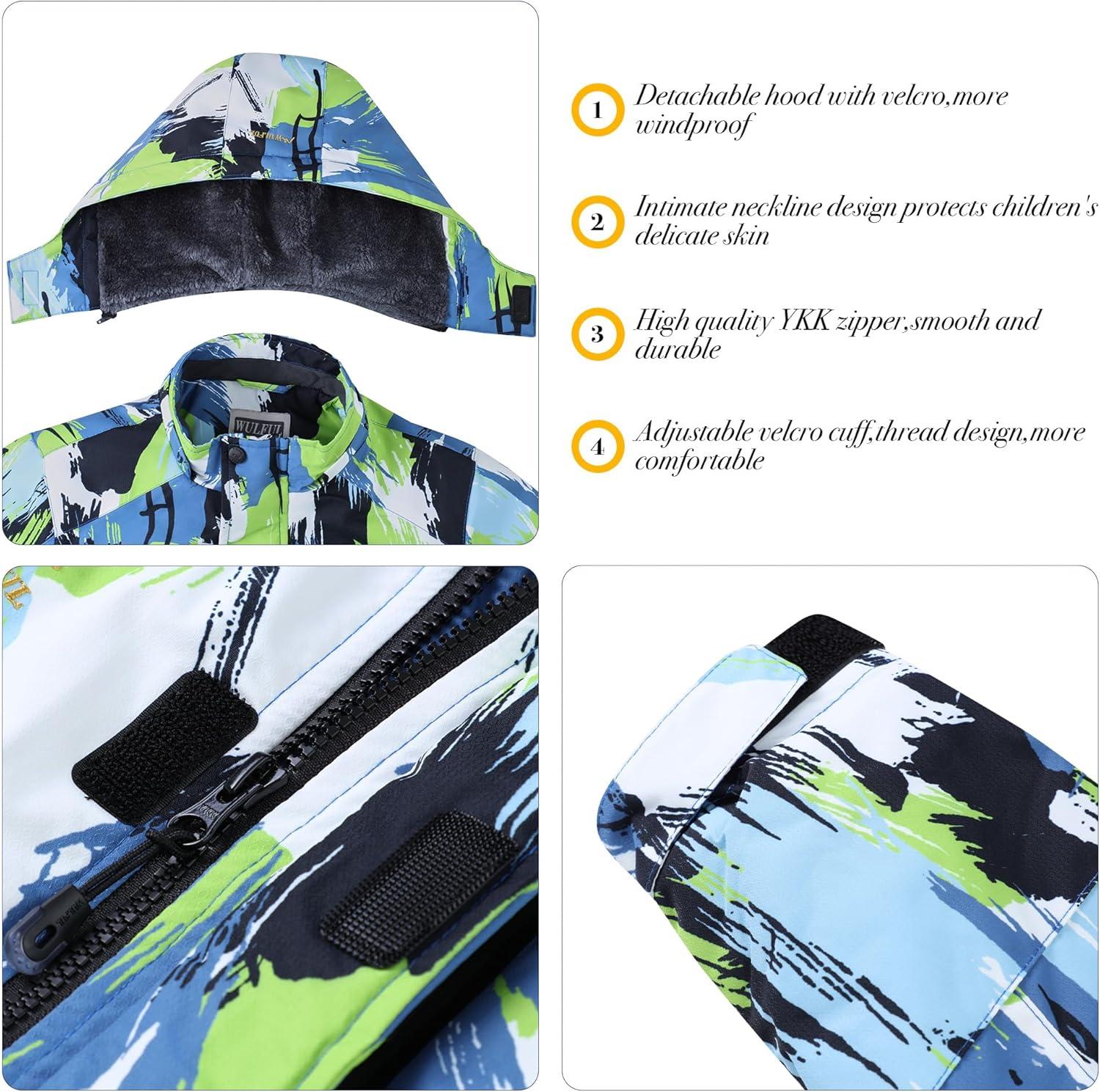 WULFUL Boy’s Winter Waterproof Ski Coat Kids Thick Fleece Snow Jacket Outdoor Windproof Coat(Paintings)