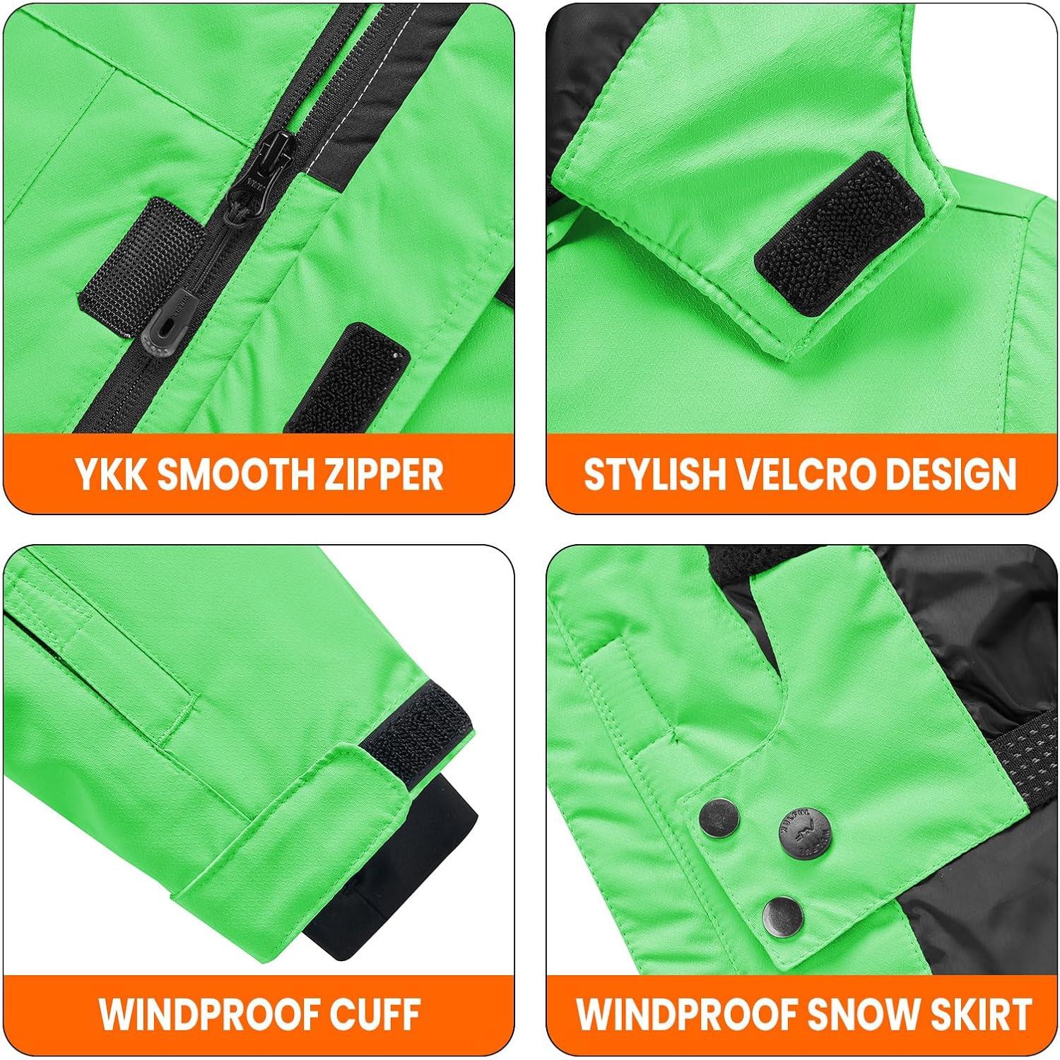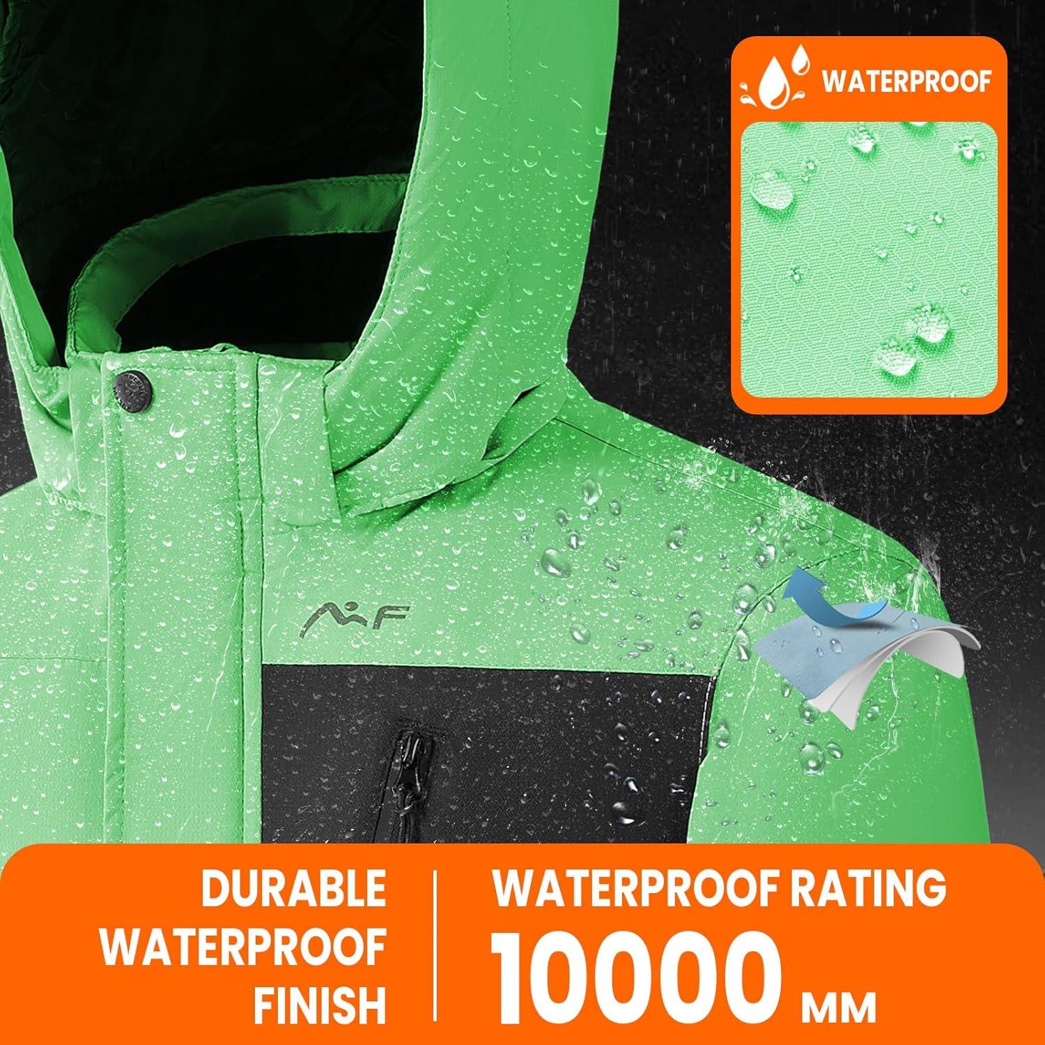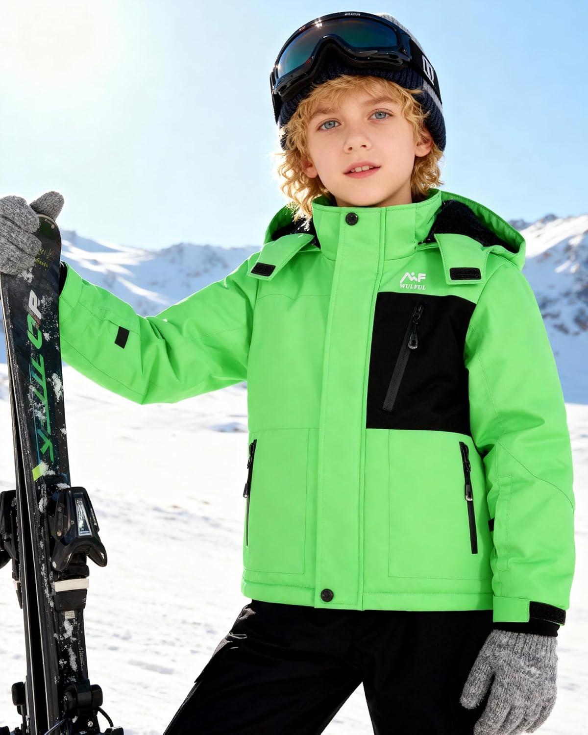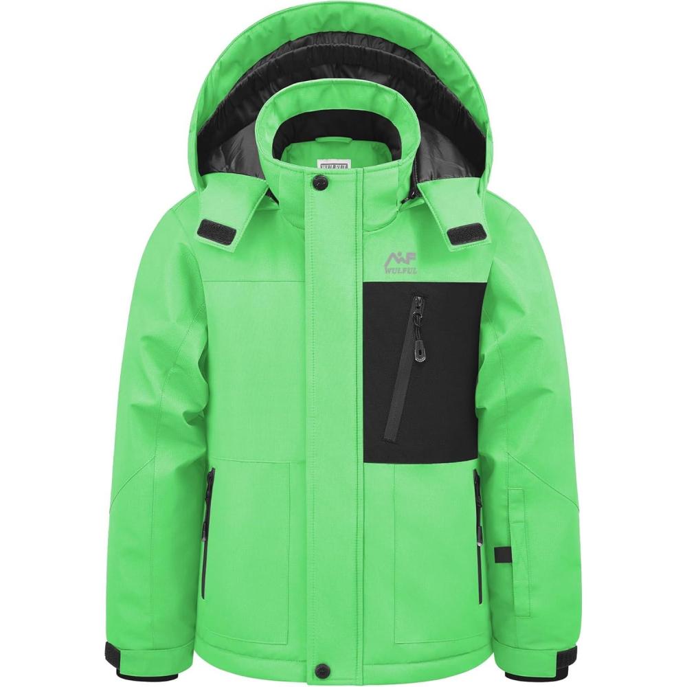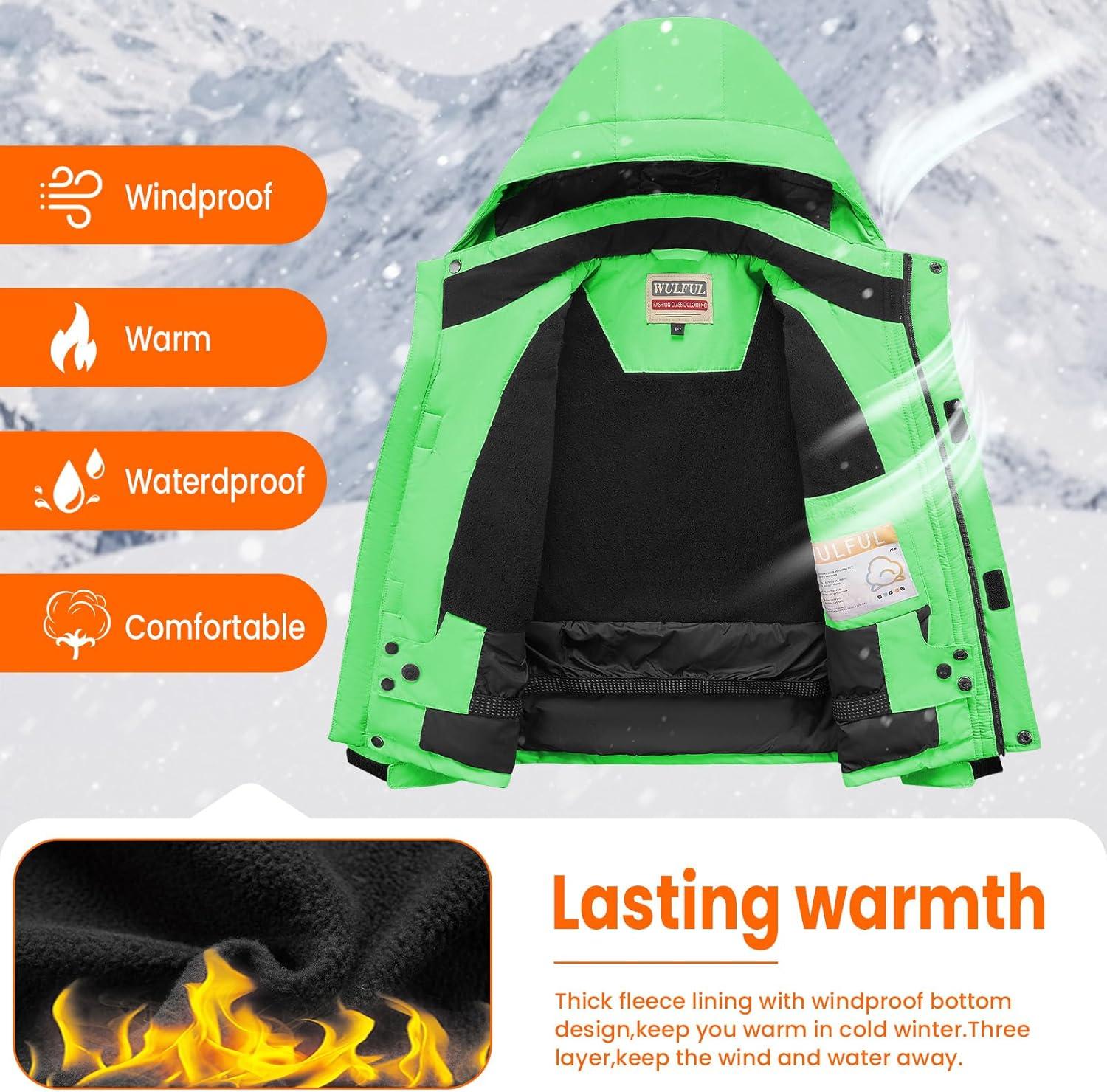 WULFUL Boy’s Winter Waterproof Ski Coat Kids Windproof Snow Jacket with Detachable Hood(Green)