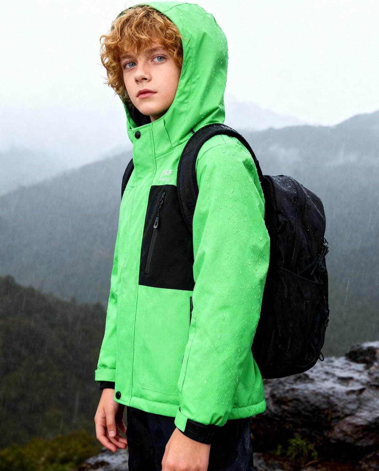 WULFUL Boy's Winter Waterproof Ski Coat Kids Windproof Snow Jacket with Detachable Hood(Green)