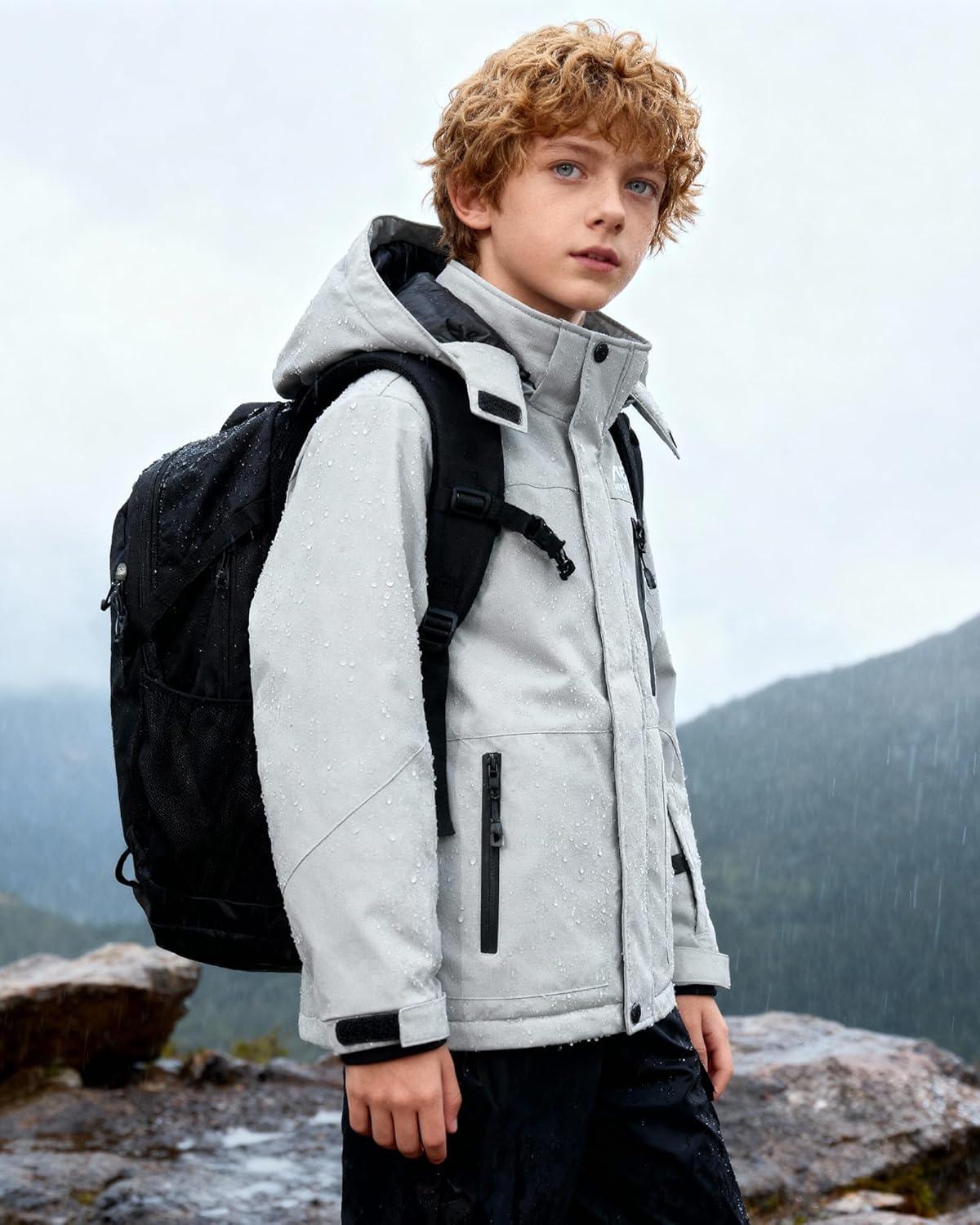 WULFUL Boy's Winter Waterproof Ski Coat Kids Windproof Snow Jacket with Detachable Hood(Grey)