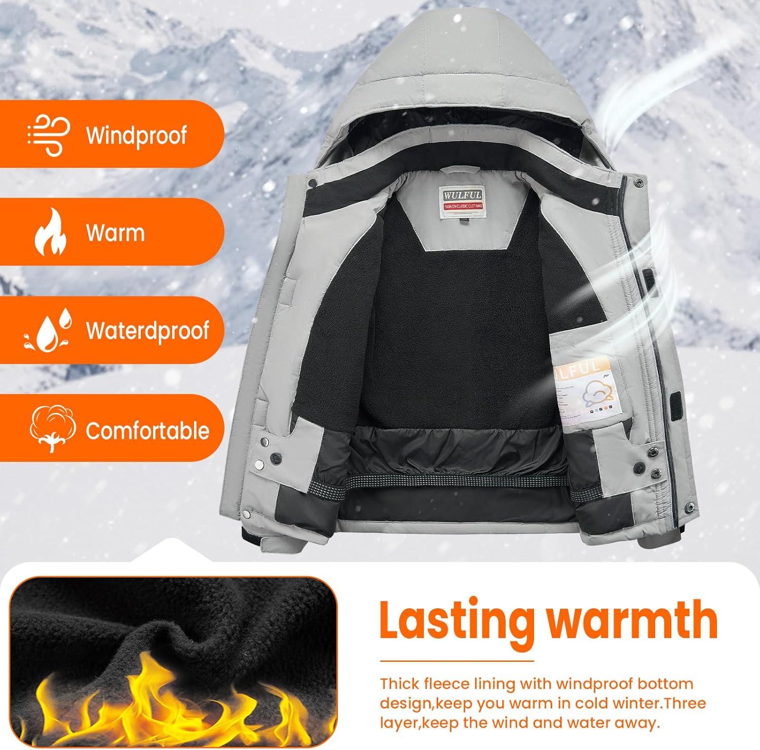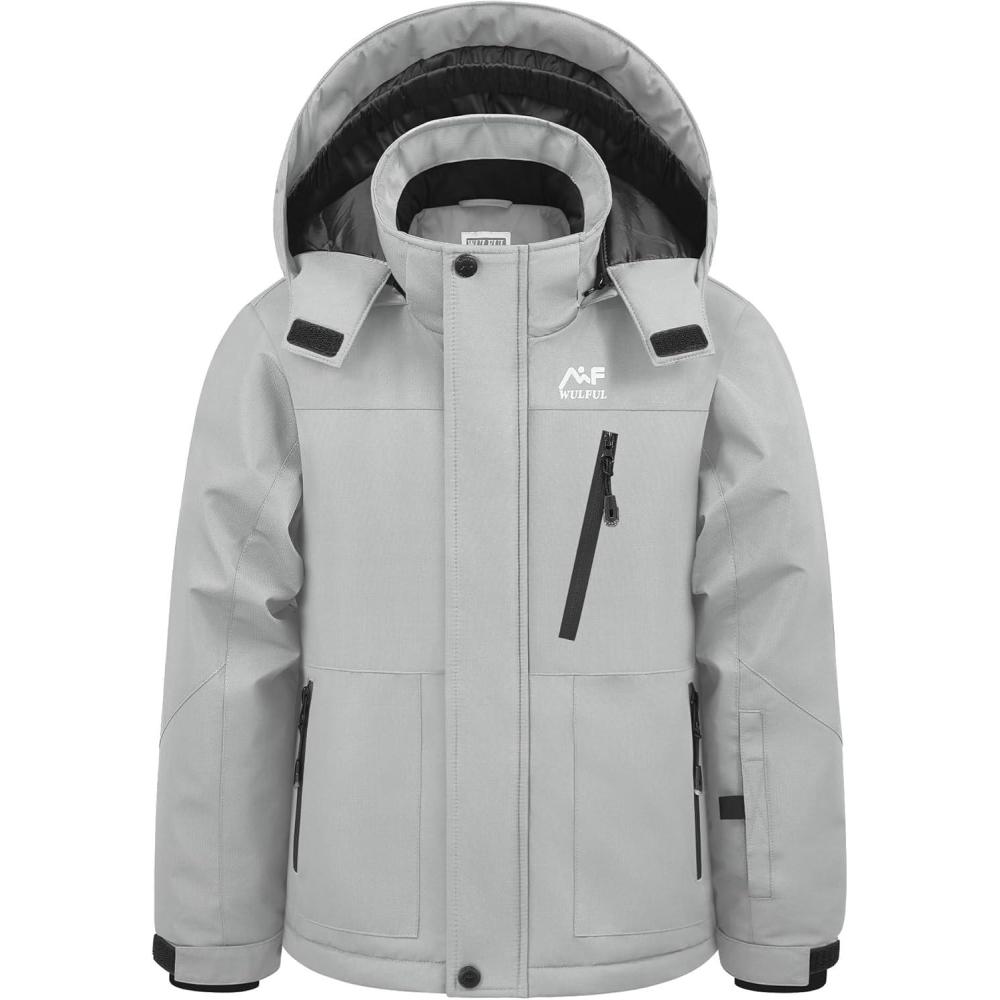 WULFUL Boy’s Winter Waterproof Ski Coat Kids Windproof Snow Jacket with Detachable Hood(Grey)
