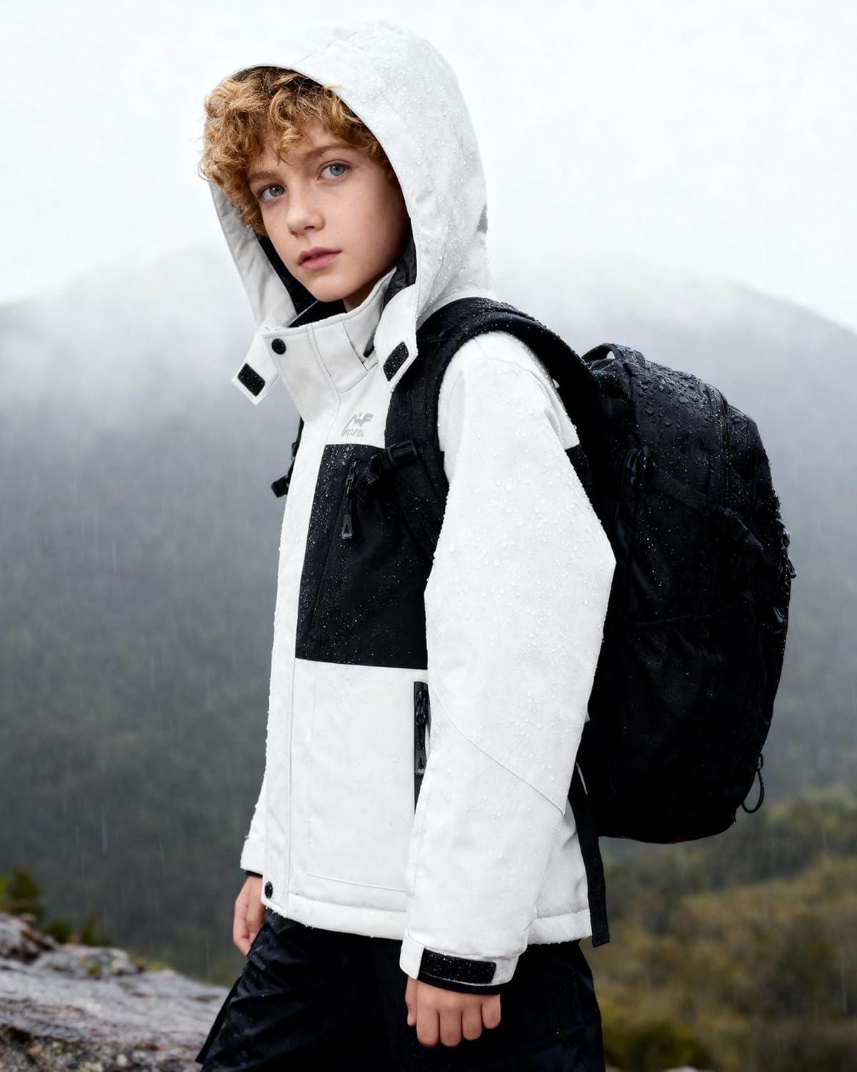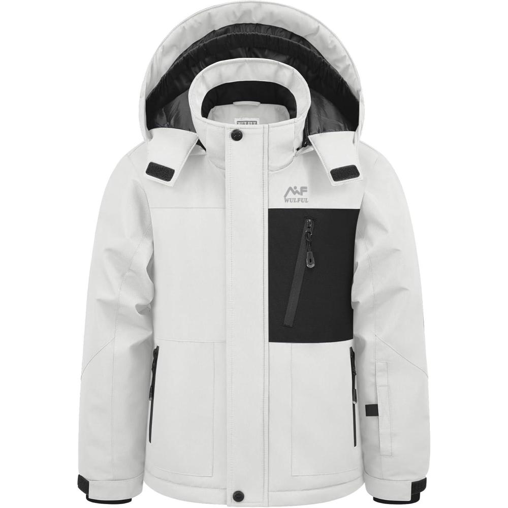 WULFUL Boy’s Winter Waterproof Ski Coat Kids Windproof Snow Jacket with Detachable Hood(White)