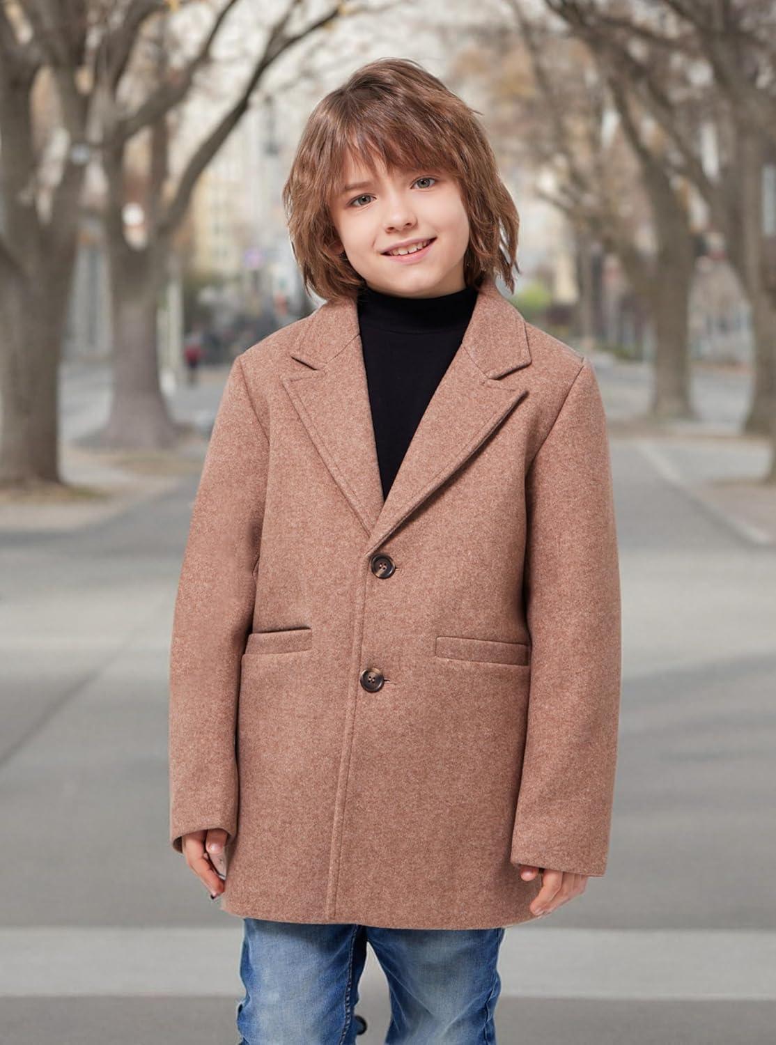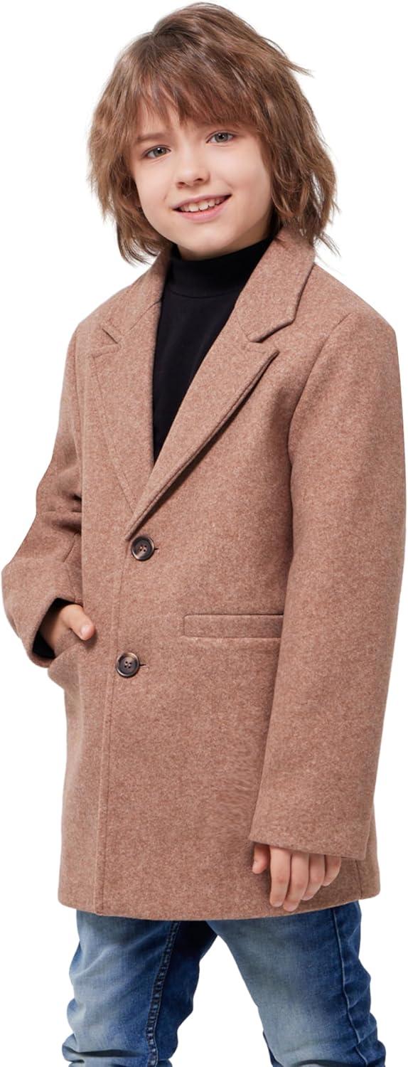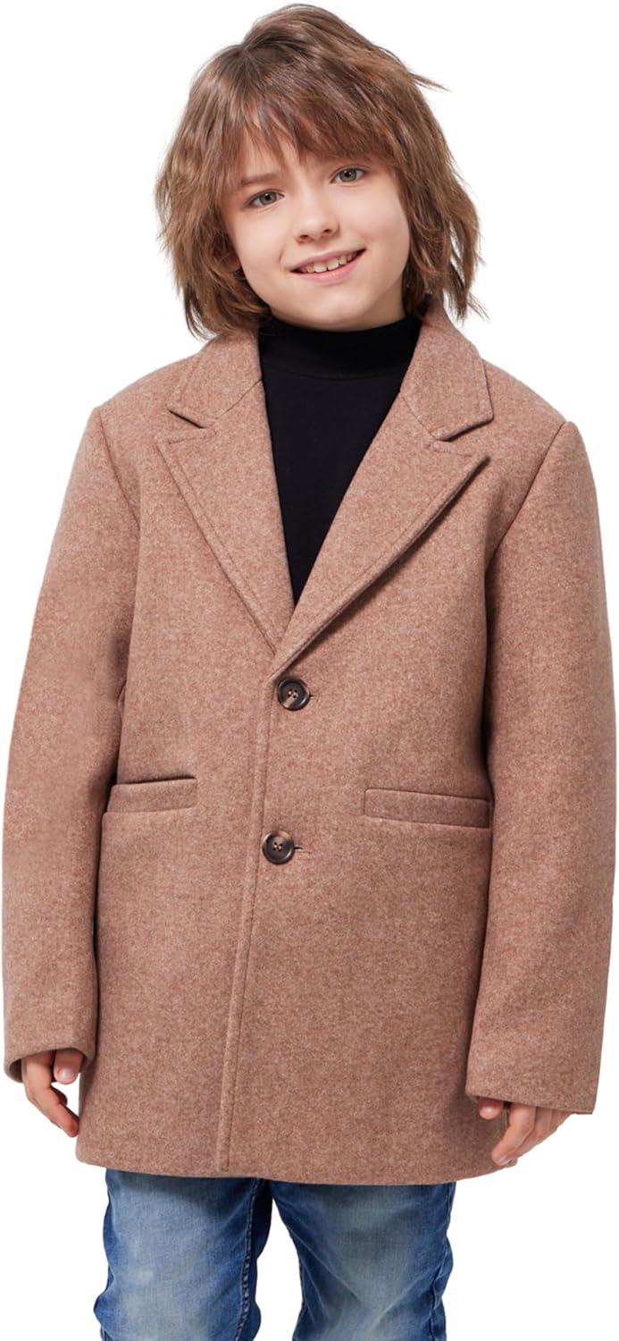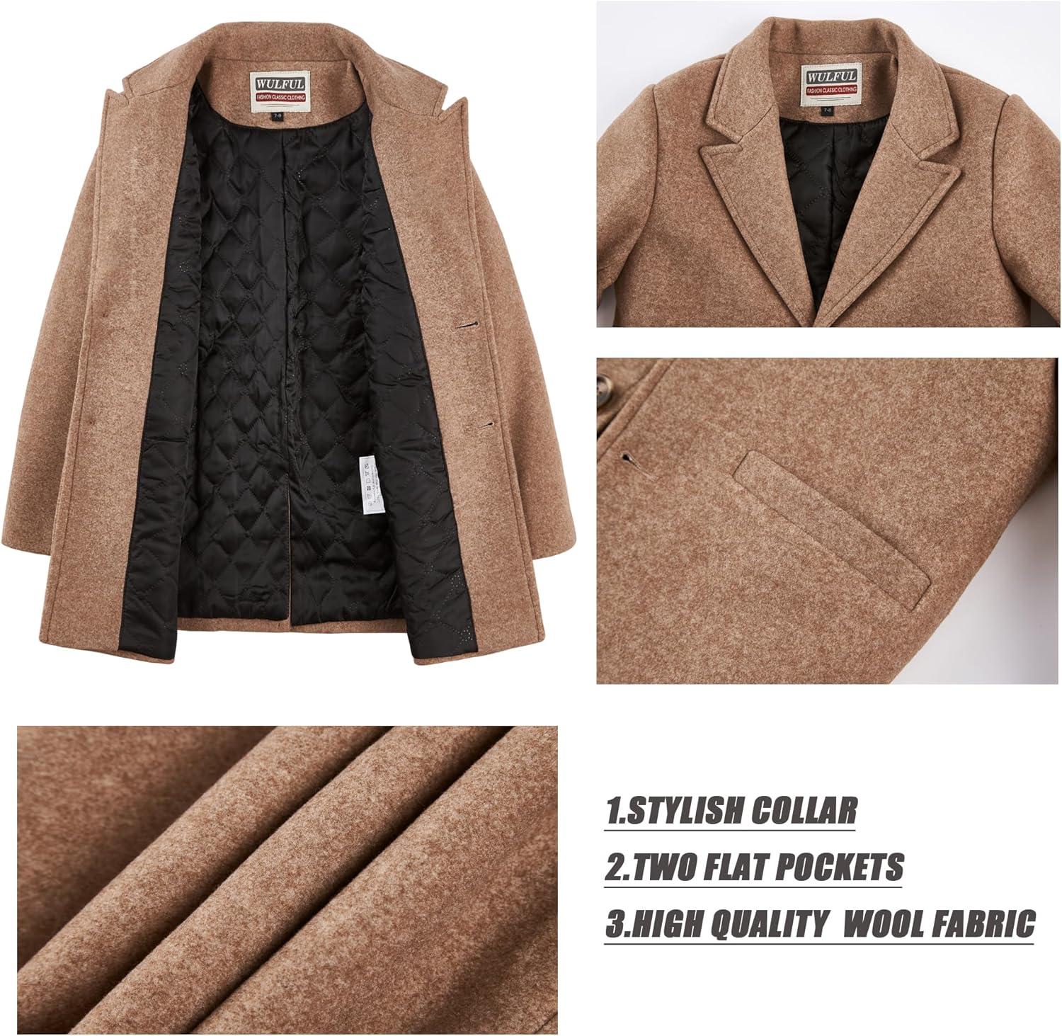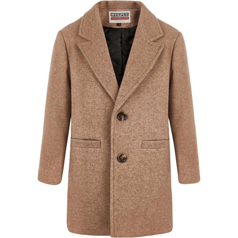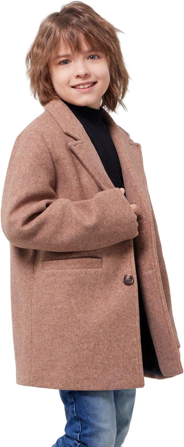 WULFUL Boys Wool Coat Single Breasted Trench Coat Winter Pea Coat(Brown)