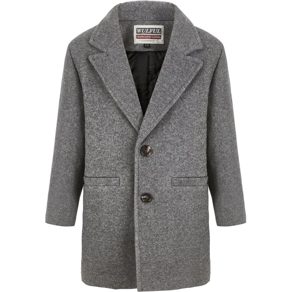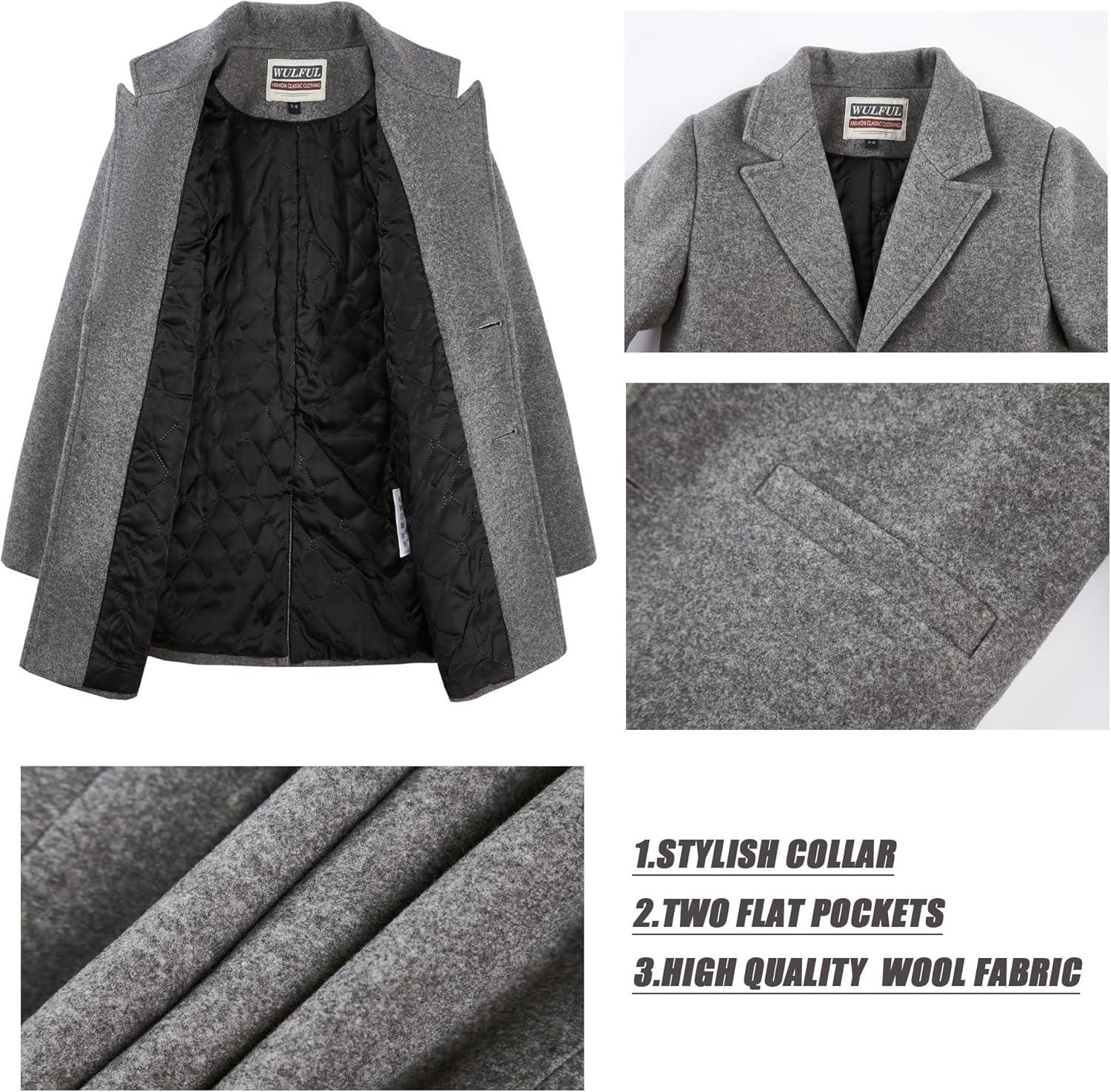 WULFUL Boys Wool Coat Single Breasted Trench Coat Winter Pea Coat(Grey)