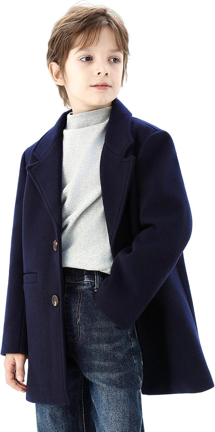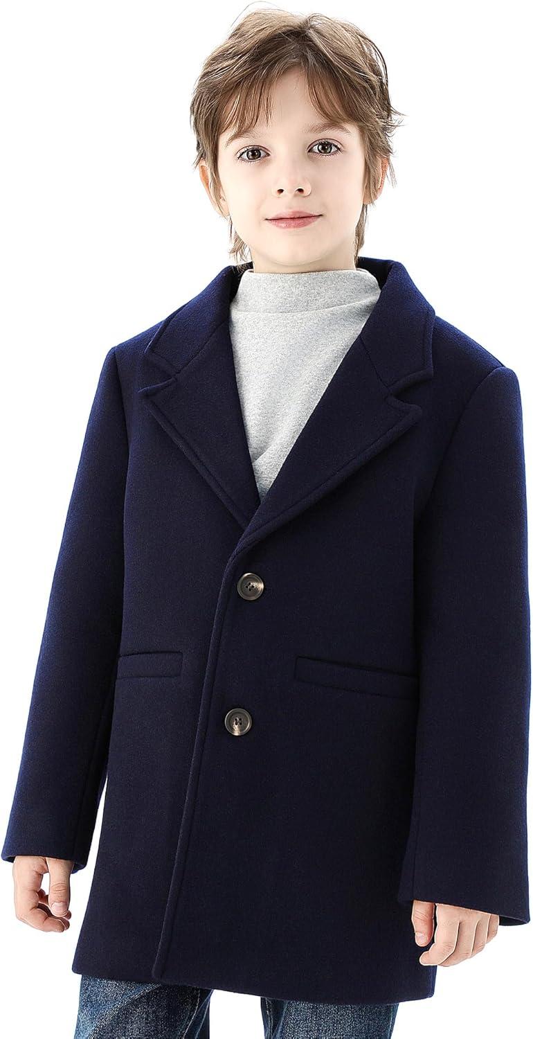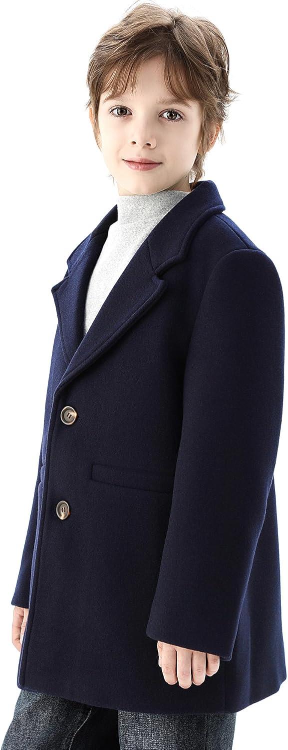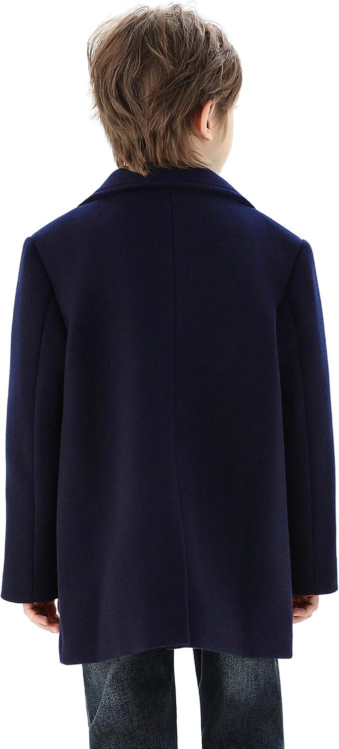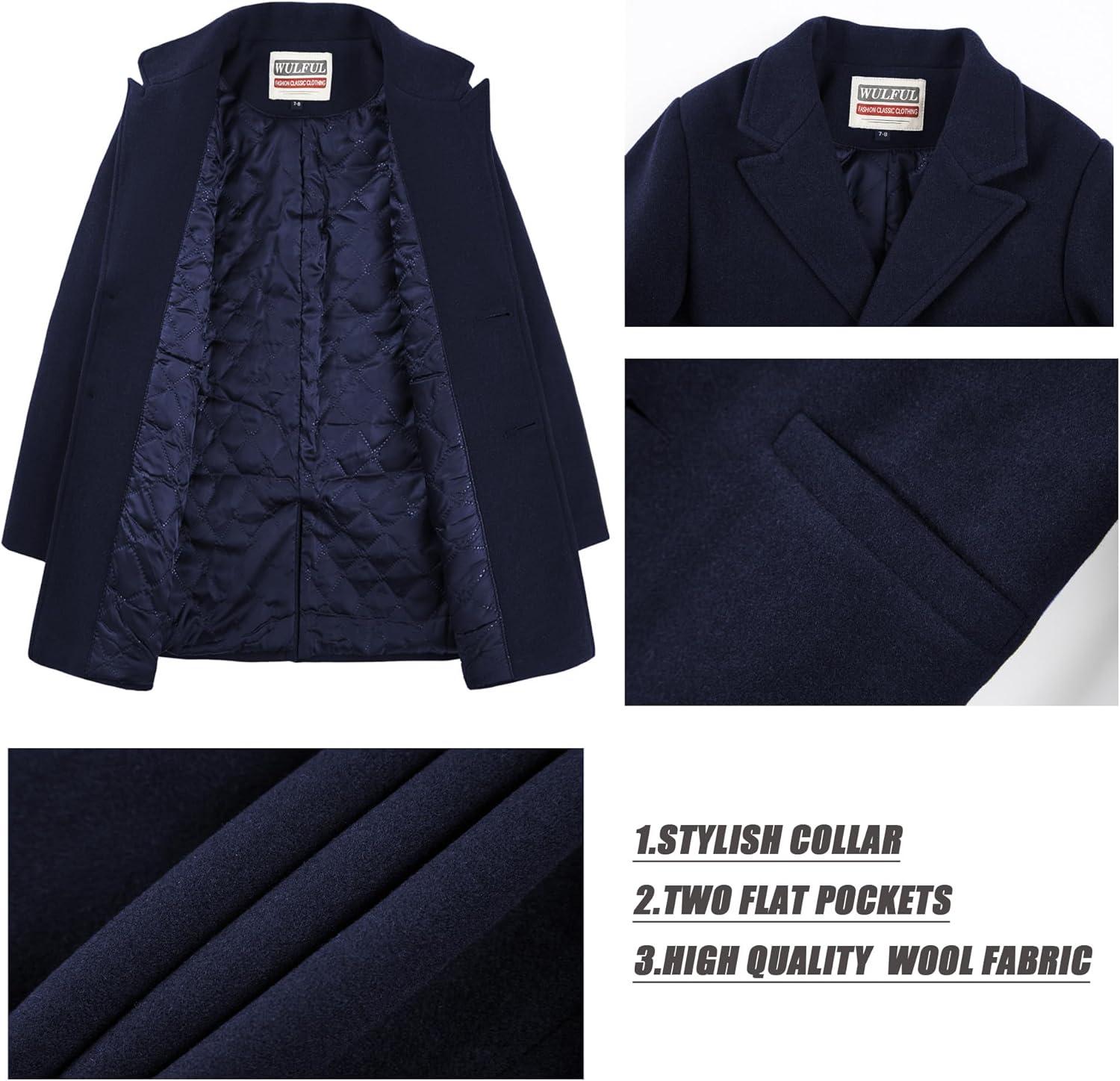 WULFUL Boys Wool Coat Single Breasted Trench Coat Winter Pea Coat(Navy)